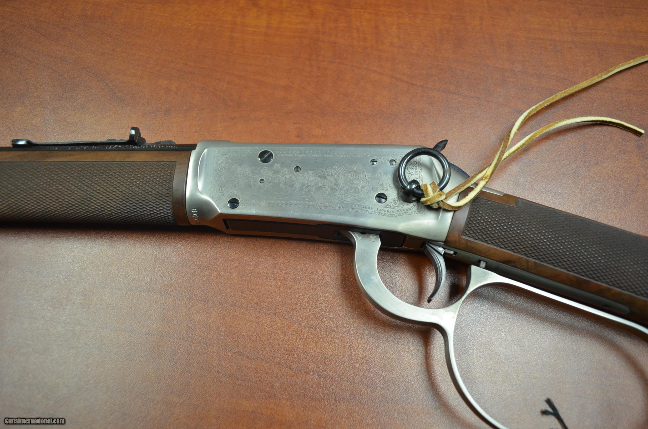 Description: Winchester 94 John Wayne 32-40 18” barrel- this rifle is a Winchester Model 94 John Wayne Commemorative chambered in 32-40. Rifle has a blued barrel, engraved nickel receiver, and checkered wood stock and forend. Receiver is engraved with a stagecoach on left side and with John Wayne and bulls on right side along with his movie titles engraved on both side. The right side of stock has a John Wayne medallion set into stock and tang has John Wayne signature engraved in. Rifle show very little wear and has strong, bright bore.. Please call and ask for Tom in sales at 610.258.5500 Tuesday through Friday 10am-5pm. All guns subject to sale in our retail location. SOLD Manufacturer: Winchester Model: 94 John Wayne Caliber Info: 32-40 Bore: bright |