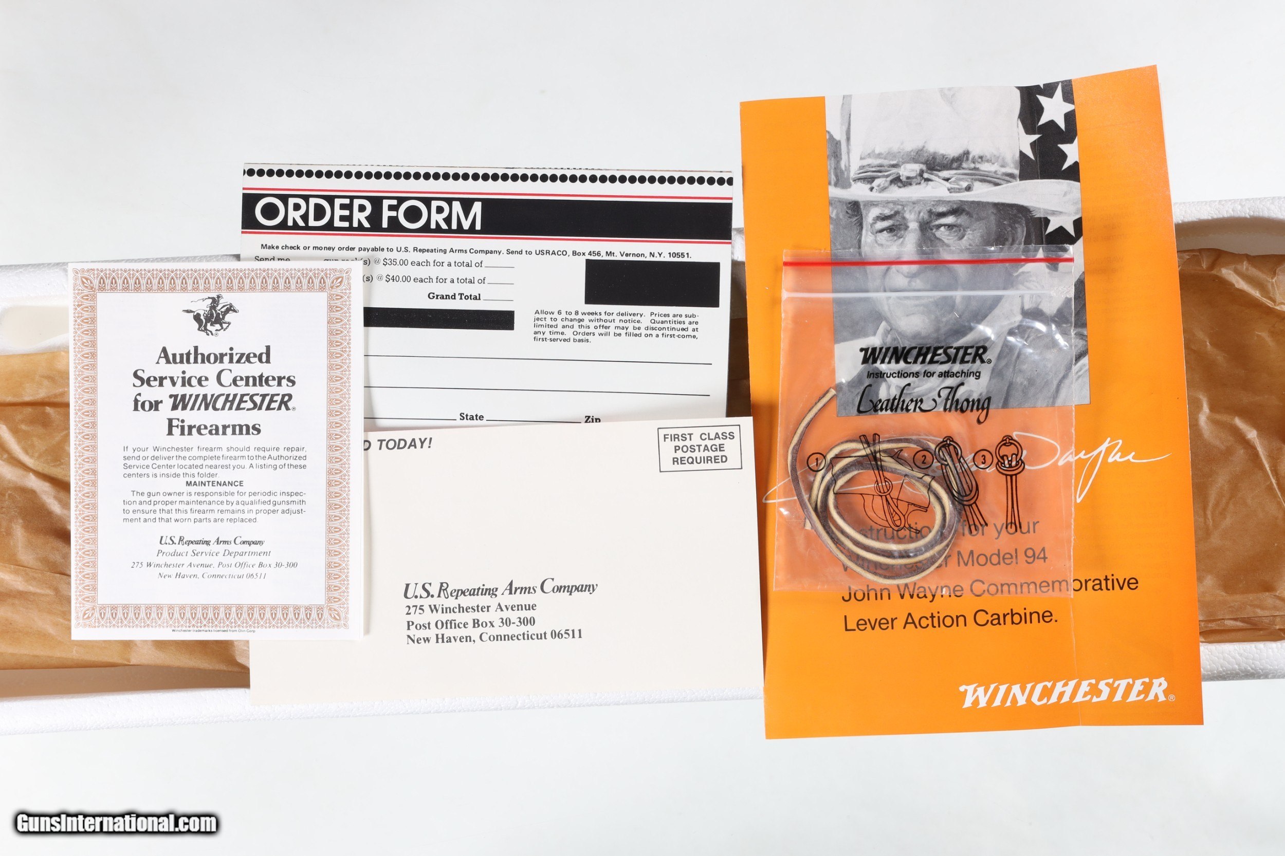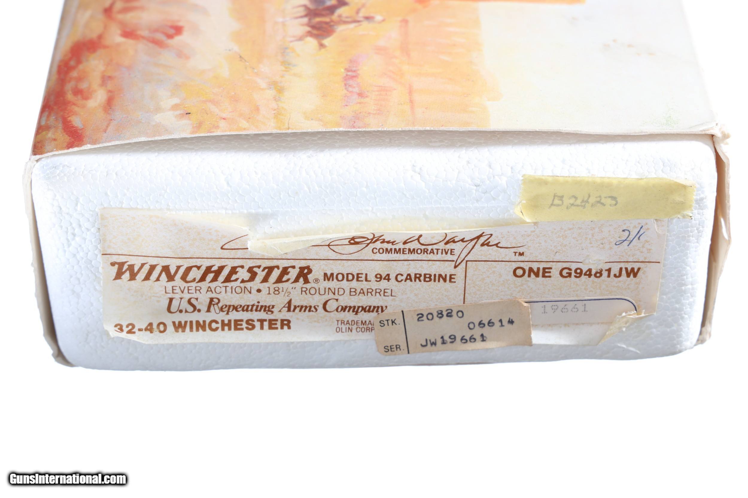 Description: John Wayne Commemorative in excellent plus overall condition, appears unfired, with matching factory box and papers. • Free Shipping, No Credit Card Fees. • Lay-a-way available for this firearm. • 1/3 Down, a 1/3 in 30 Days 1/3 in 60 Days. SOLD Curio/Relic: Yes Manufacturer: Winchester Model: 94 Serial Number: JW19661 Barrel Length: 18 1/2 |
