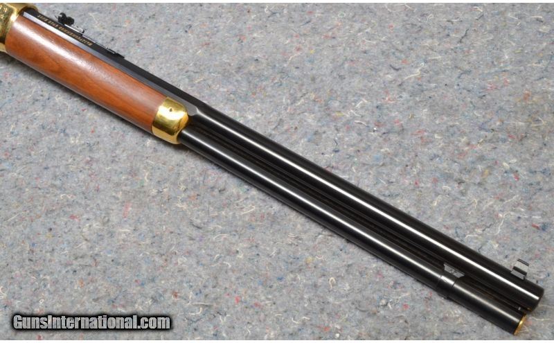 Description: This lever action rifle is a Winchester "Lone Star Commemorative" 1894 chamered in .30-30 Win. It comes with commemorative gold finish, walnut stock with commrmorative inlay, and a 20" blued steel barrel. This 94 is in very good conition with little to no sign of use. SOLD Caliber Info: .30-30 Winchester Metal Condition: Very good with little to no sign of use Wood Condition: Very good with little to no sign of use Bore Condition: Shiny and bright with little to no sign of use Barrels: 20" Blued steel barrel Triggers: Single stage trigger Stock: Walnut wood stock with commemorative inlay Stock Dimensions: 13" LOP Fore End: Walnut wood fore end Butt Pad: Curved metal buttplate Weight: 7lbs 8oz Sights: Iron sights Item Location: Wichita, KS |