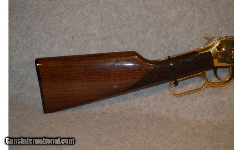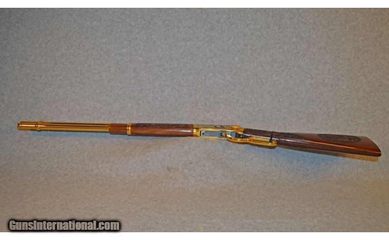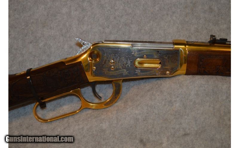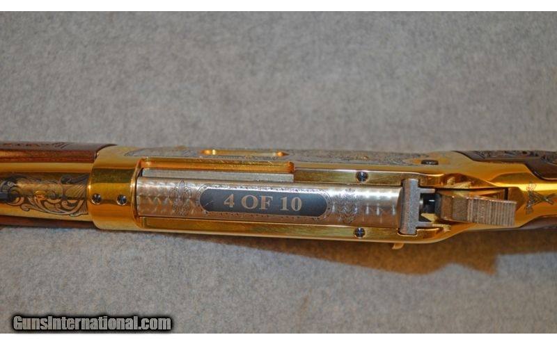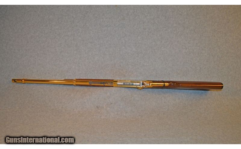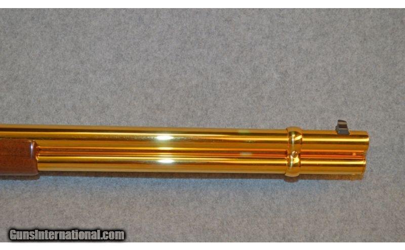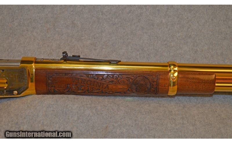 Description: This beautiful 24K gold plated James City County Virginia commemorative is 1of 10 made. The furniture is all walnut. It is tube fed up to eleven rounds. It has a rebounding hammer, hammer block & cross bolt manual hammer, hammer spur extention is included. Twist is 1 in 38". It is a Trails End edtion. The stock and receiver have engravings related to the history of James City County Virginia. This is one beautiful Winchester! SOLD Caliber Info: .45 Colt Metal Condition: Excellent Wood Condition: Excellent Bore Condition: Excellent Barrels: 20 Stock: Walnut Stock Dimensions: LOP 13.5" overall 38 1/8 Butt Pad: Factory Weight: 6 lbs Sights: Factory iron, front fixed, rear adjustble Extras: factory hard case, paperwork Item Location: Short Pump, VA |