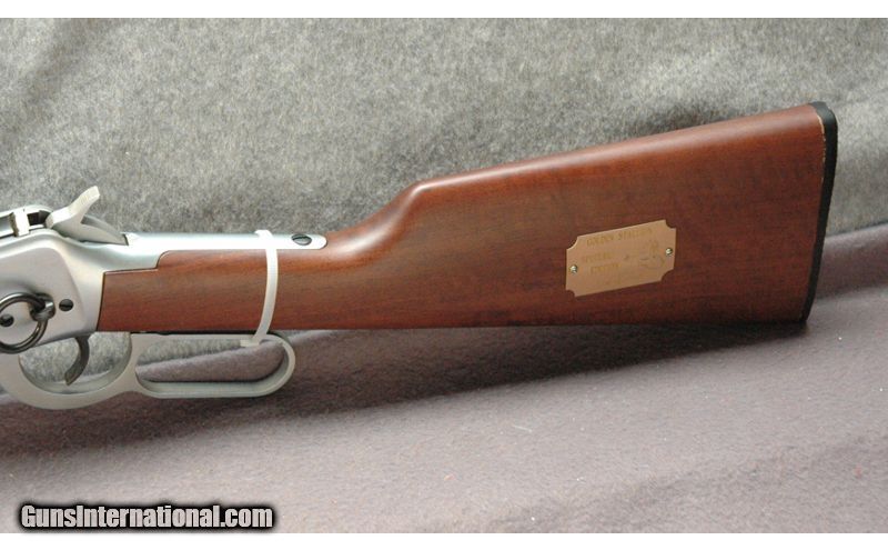 Description: WinchesterModel 94AERoy Rodgers Golden Stallion rifle.30-30 Win. Appears as new with box. Metal plaque attached to left side of stock details this rifle is number 74 of only 3000 manufactured. .30-30 Winchester SOLD Chambers: Lever action Metal Condition: "Excellent, Appears As New Wood Condition: "Stock is Excellent, Appears As New Barrels: 16 Triggers: Factory Trigger Stock Dimensions: 13 1/4" LOP Fore End: Smooth with Metal Band Butt Pad: Factory Butt Plate Sights: Iron Sights Item Location: La Vista, NE |