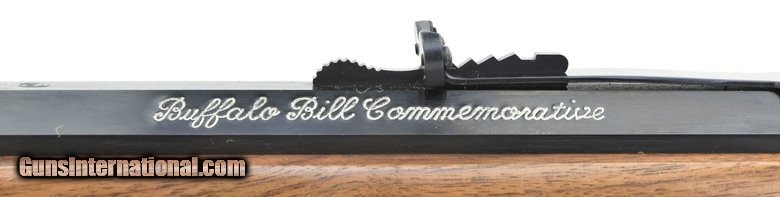 Description: Winchester “Buffalo Bill” Commemorative. Model 1894 “Buffalo Bill” .30-30 Win caliber rifle. Excellent condition with box, sleeve is torn.