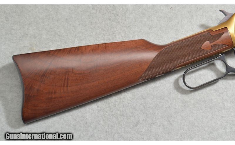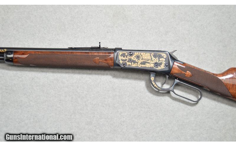 Description: Beautiful Winchester Cased 1894 Rifle & Carbine, Texas Sesquicentennial Pair and Knife in excellent condition. Manufactured in 1986, the Rifle has standard markings and features as well as British proofs on the barrel and receiver. The Carbine was manufactured in 1986. It has standard markings and features as well as British proofs on the barrel and receiver. Includes the correct picture sleeve box, but the Carbine box is numbered to a different gun. Includes Two-gun display case containing a Texas medallion and commemorative Bowie knife with a letter for the Knife. Both rifle have few handling marks and the boxes are in very good condition with storage and handling marks. Case is very good with storage and handling marks, high edge wear on the lining, separating of the lid and lid lining, and some tearing where the hammers meet the lining. Knife is fine with bright blade and replaced grip scales. .38-55 Winchester SOLD Metal Condition: Excellent Wood Condition: Excellent Bore Condition: "Clean, Good Rifling Barrels: 24" & 18 Butt Pad: Plates Weight: 6 Lb 1 Oz Item Location: Fort Worth, TX |