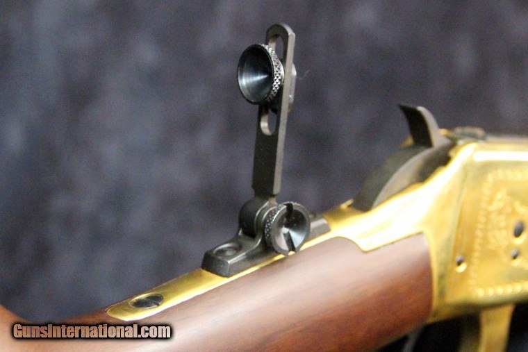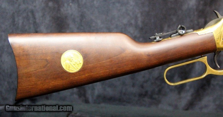 Description: .44wcf, #CH00074, blueand brass plate finish, walnut stock and forearm, original sights, medalion in stock, 1975. Condition: as new, no box SOLD |