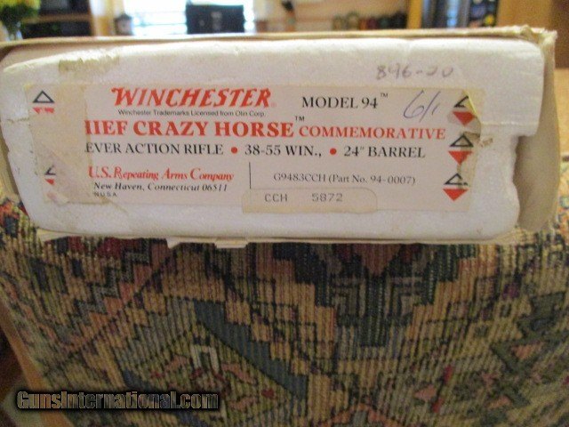 Description: This is a very nice Chief Crazy Horsr Commemorative rifle in 38-55 Win. I bought it new, it is still new in the box. The box is in excellent condition as is the sleeve. All of the original contents of the box are there. Free shipping. SOLD Rifle Caliber: .38-55 Winchester |