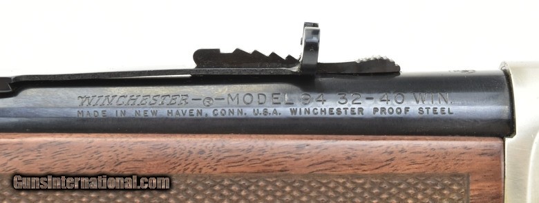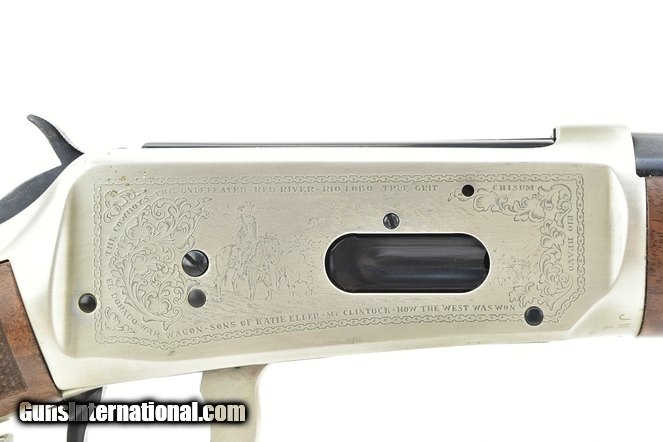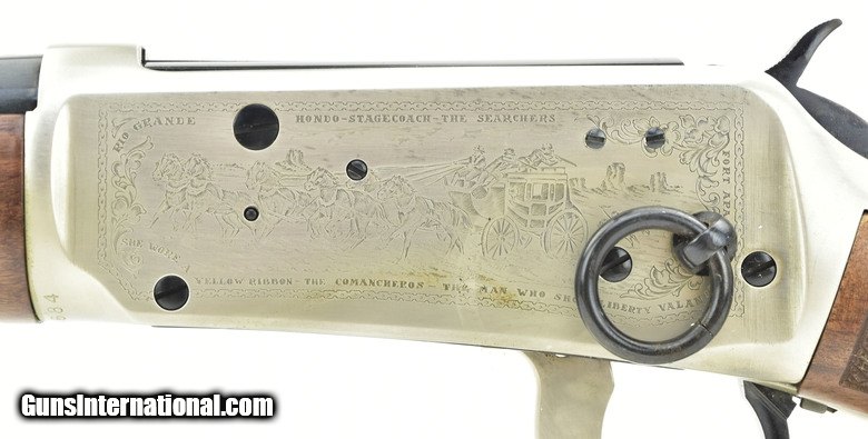 Description: Winchester “John Wayne” Commemorative. Model 1894 “John Wayne” .32-40 Win caliber carbine. 1981 Issue. Excellent condition with box, sleeve is torn.