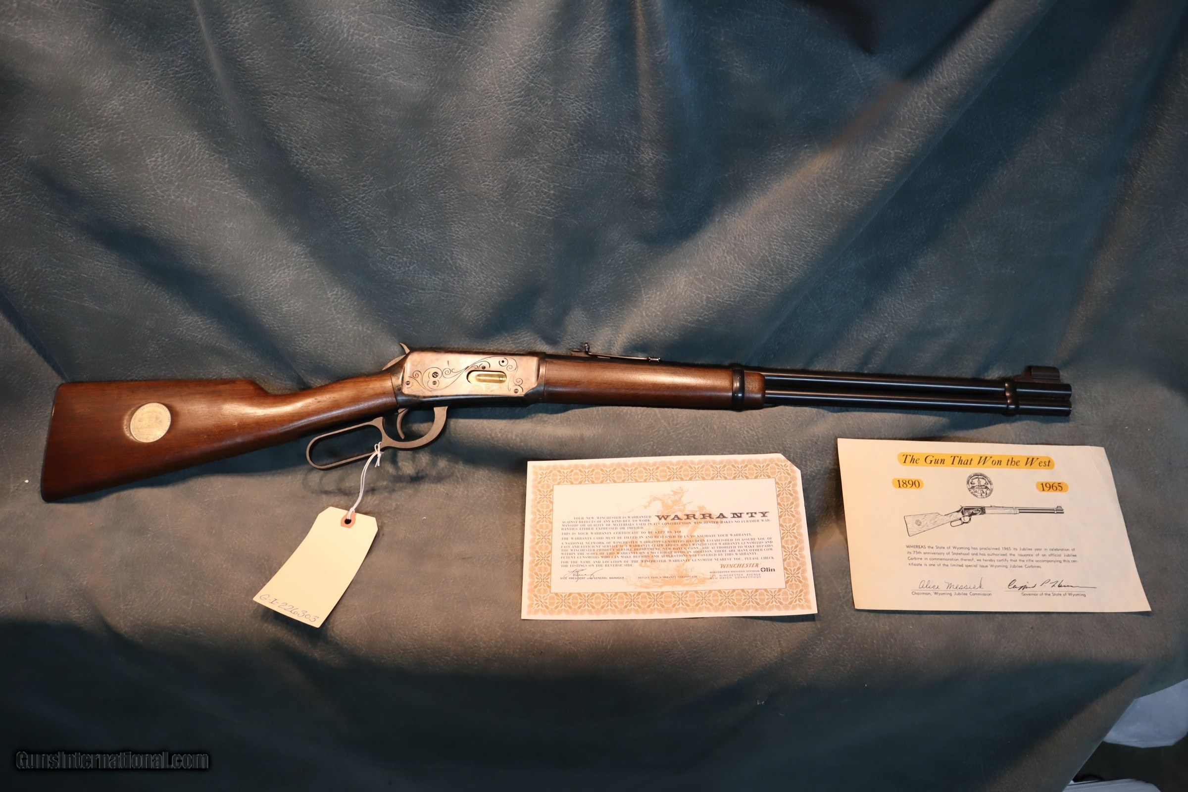 Description: Winchester Model 94 Wyoming Diamond Jubilee 75th Anniversary 30x30,20" barrel,serial #WJ471 with papers. GUN COLLECTIONS WANTED FOR CASH! We buy, sell, consign and trade new and used firearms. This is our 48th year in business. We offer 90 day layaways with 20% down. No return on layaways. Firearms will need to be transferred through a FFL dealer. Prices reflect a cash discount. There will be 3% added to credit card sales. We trade for gold and silver. THANK YOU! SOLD |