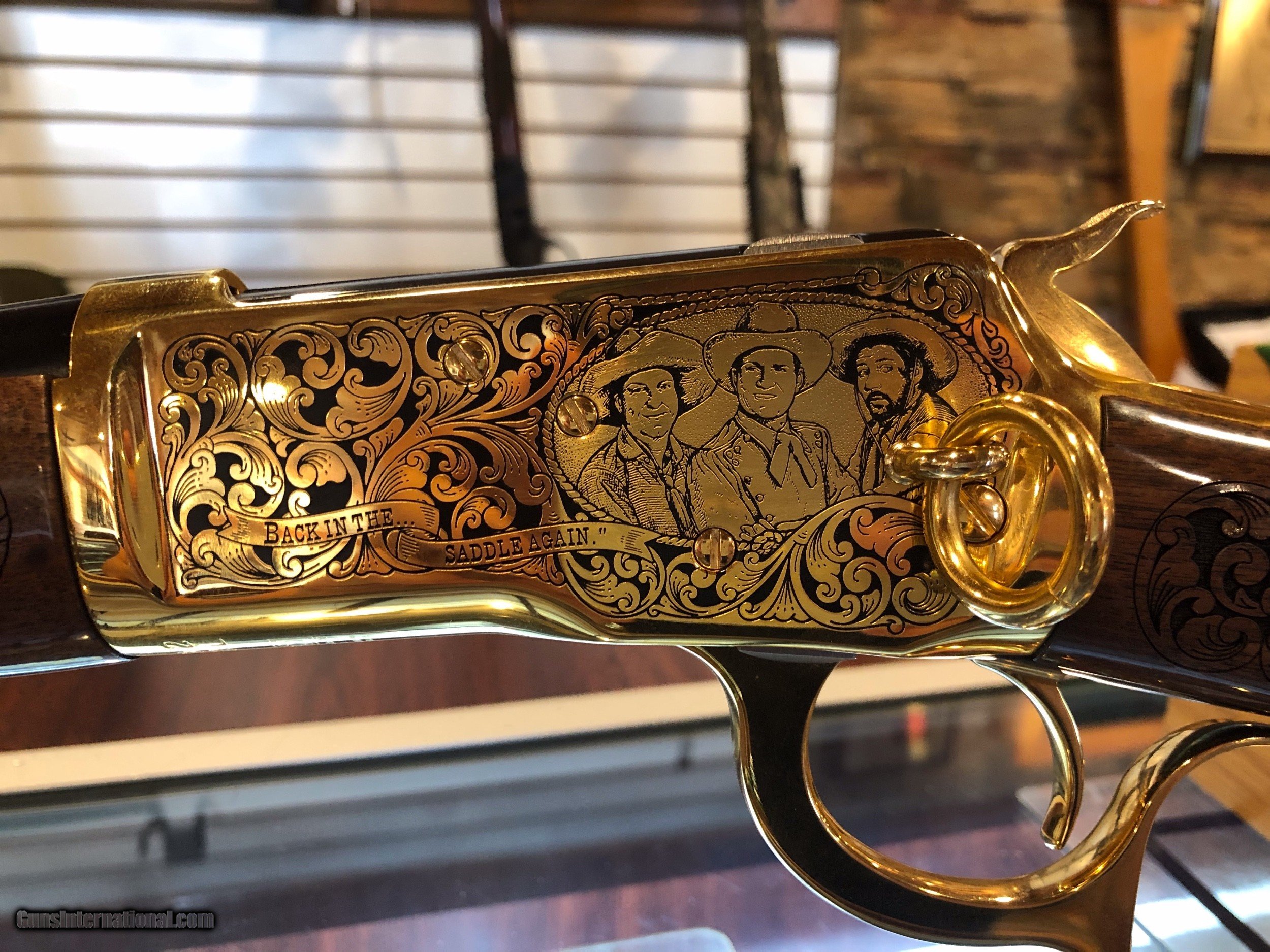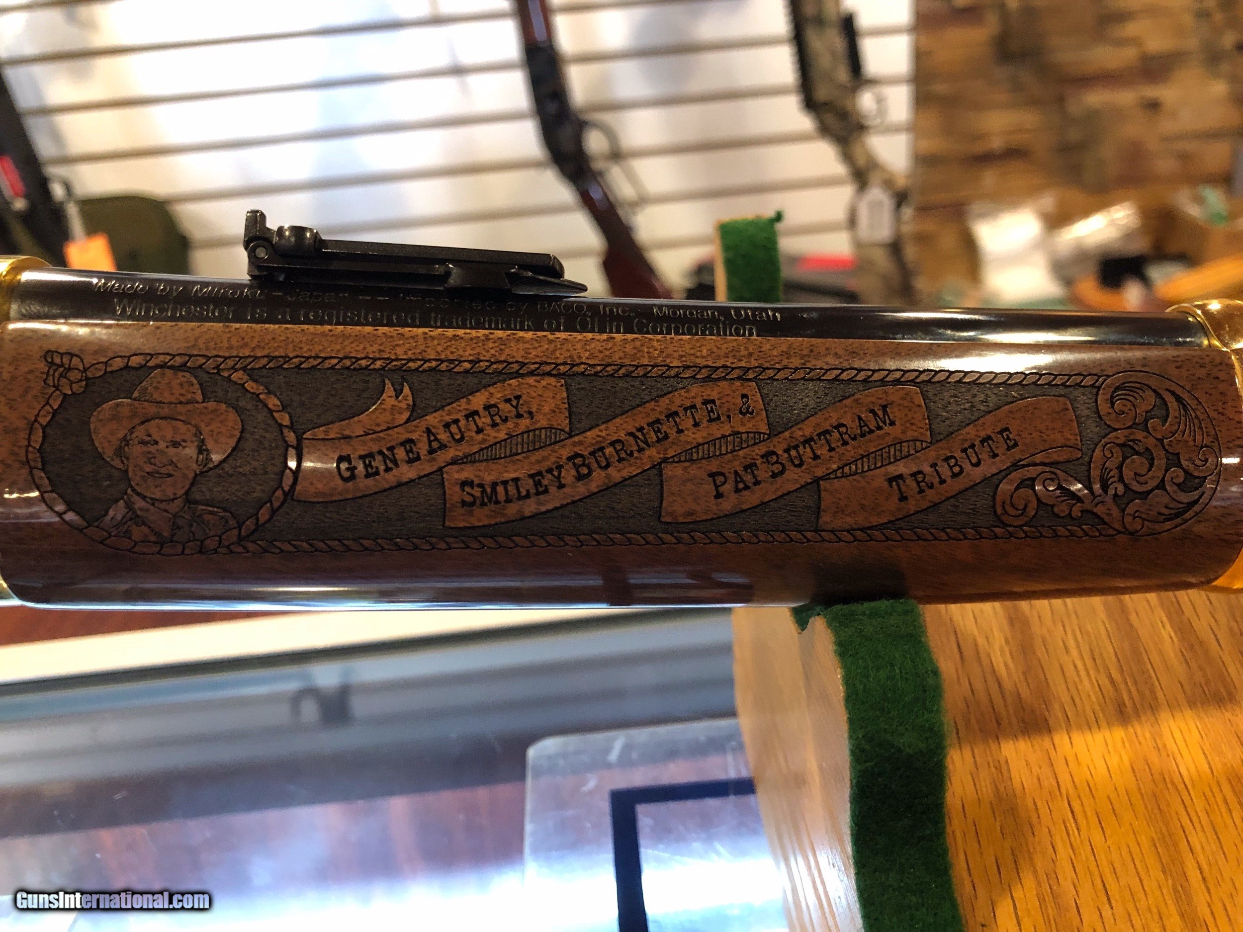 Description: Winchester Model 1892 - Back in the Saddle Again This 140/300 commemorative firearm is paying tribute to Gene Autry, Smiley Burnette, & Pat Buttram.? .45 Long Colt Unfired SOLD Manufacturer: Winchester Model: 1892 Serial Number: 00192ZZ92L Condition: Excellent |