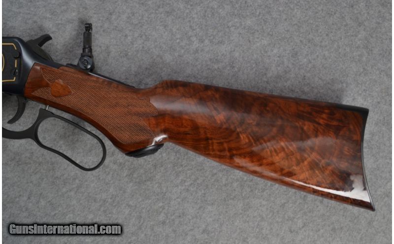 Description: Here is a beautiful, near mint Winchester Limited Edition Centennial1894 in .30 W.C.F. which comes to you from a local collector's inventory. The rifle appears to be unfired and includes the original box and paperwork. The rifle also haas high grade walnut stock and fore end. SOLD Manufacturer: S/N CNL2XXX Caliber Info: .30 W.C.F. Metal Condition: Very good condition. Wood Condition: Very good condition. Bore Condition: Excellent condition - appears to be unfired. Barrels: 26 inch barrel, 1/2 round and 1/2 octagonal. Barrel stamped " 1894 - 1994 " on one flat of the octagonal portion. Stock: Highly figured and checkered walnut. Has upgraded High Grade wood with high gloss finish. Stock Dimensions: LOP - 13 1/4 Inches. Fore End: Highly figured and checkered walnut. Has upgraded High Grade wood with high gloss finish. Butt Pad: Polished blued metal crescent butt plate. Weight: 7 Lbs 14 Oz as shown. Sights: Fixed front / rear adjustable buckorn with white triangle. Also has a folding aperture sight on the rear tang. Extras: Includes original box and paperwork. Item Location: Lone Tree, CO |