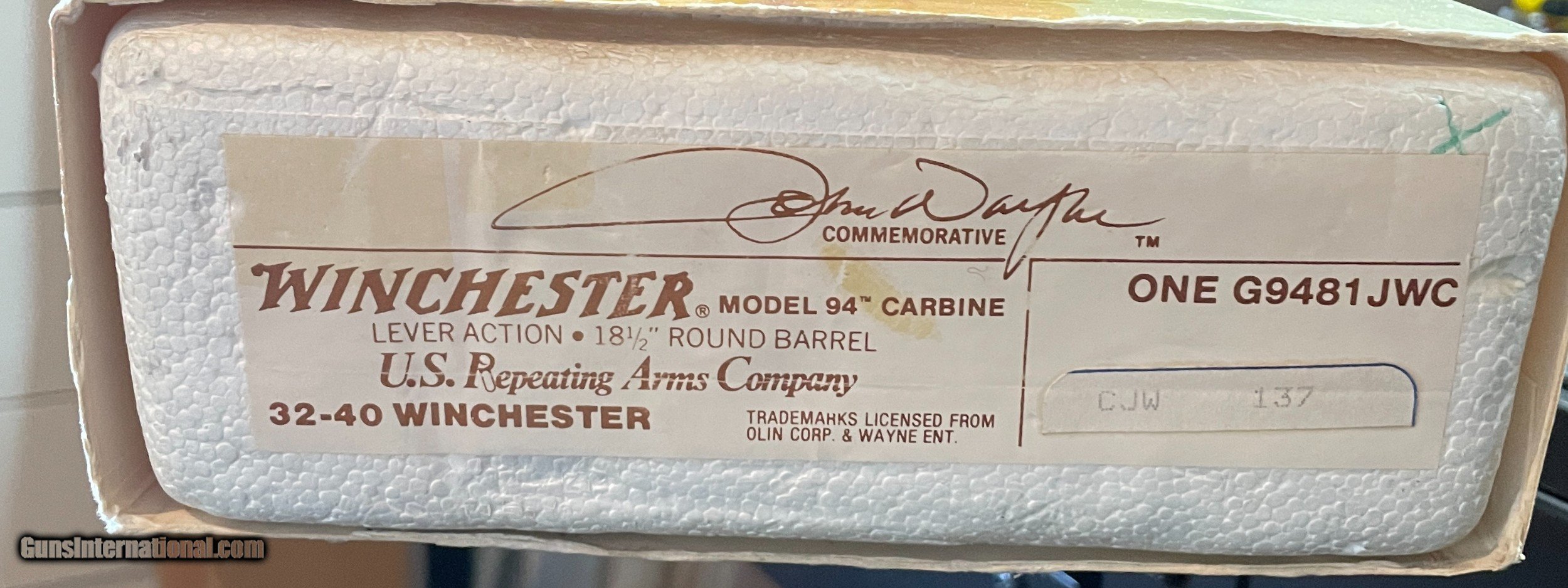 Winchester model 1894 Carbine John Wayne Commemorative rifle chambered in .32-40 Low Low SN: CJW 137