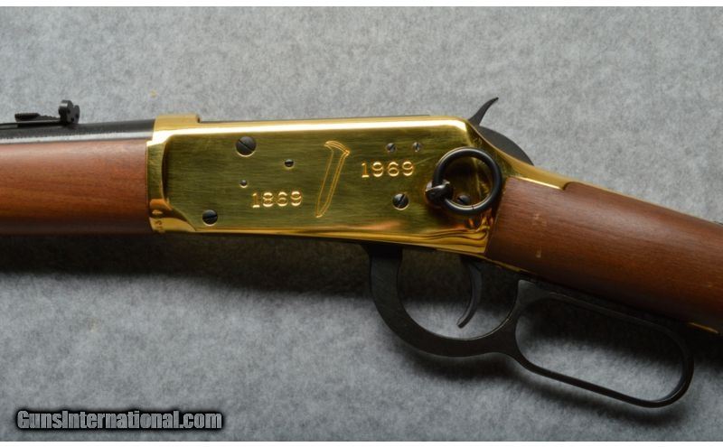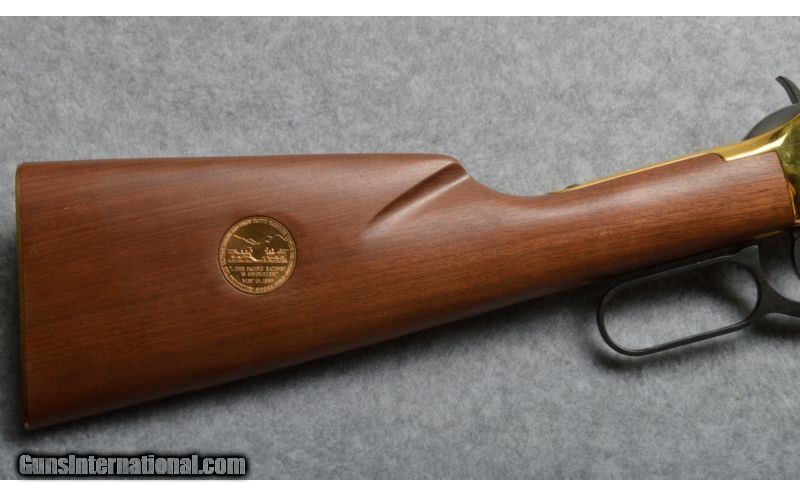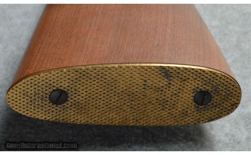 Description: 1969 Golden Spike Commemorative Edition of the Winchester Model 94 lever gun in very nice condition. Brass receiver with commemorative engraving. SOLD Manufacturer: Modern Manufacture 1969. Caliber Info: .30-.30 Winchester Chambers: Lever action 6 round tubular magazine. Metal Condition: Semi gloss bluing on the barrels with no signs of wear, receiver is brass. Wood Condition: Natural finish walnut smooth stock and matching fore end. Bore Condition: Bright and shiny, rifling is good. Barrels: 20 inch round blue barrel. Triggers: Single stage trigger, no safety. Stock Dimensions: 13 3/8 inch LOP. Fore End: Smooth walnut fore end to match the English style straight stock. Butt Pad: Brass butt pad. Weight: 6.15 pounds. Sights: Front hooded post sight, V notch rear. Extras: 1969 Golden Spike Commemorative Edition of the Winchester Model 94 lever gun in very nice condition. Brass receiver with commemorative engraving, Item Location: Berlin, MA |