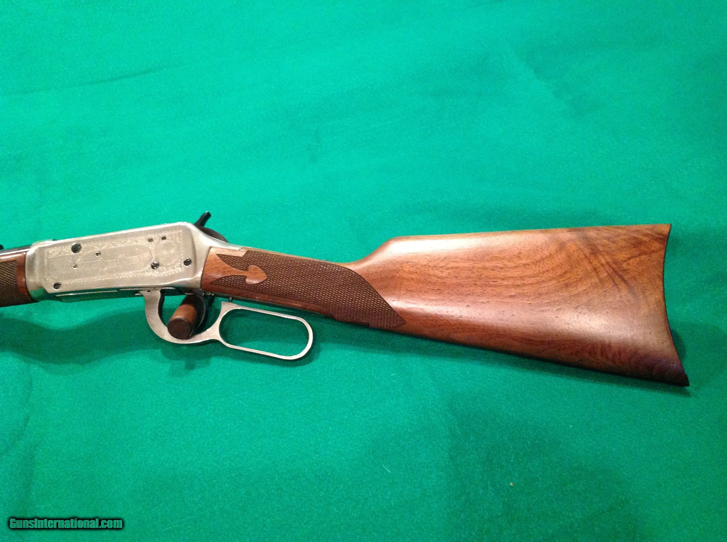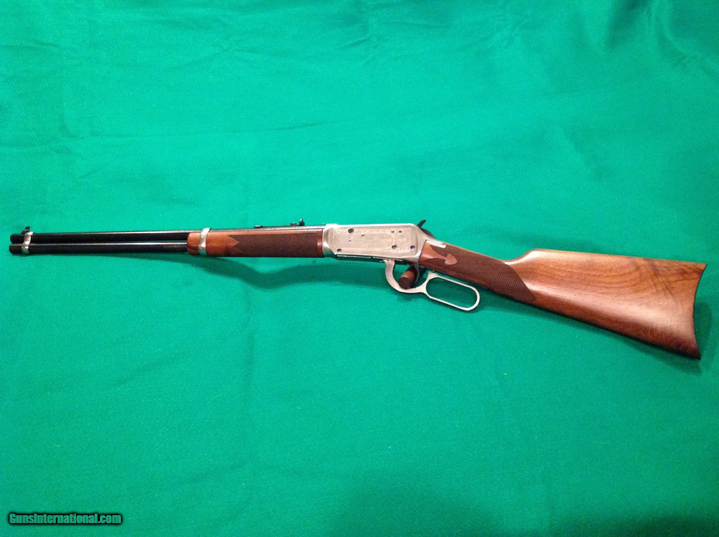 Description: Winchester Model 94 Antler Game Commemorative 30 30 caliber lever action rifle, Nichol plated receiver and barrel bands showing engraved game scenes on both sides with Winchester Medallion inset in the center righ side of stock.SALE PENDING FUNDS. SOLD Rifle Caliber: .30-30 Winchester Manufacturer: Winchester Model: 1894 Serial Number: AG17574 Barrel Length: 20 Condition: Very Good Metal Condition: Very Good Wood Condition: Very Good Bore Condition: Very good Action: Lever Stock: Walnut |