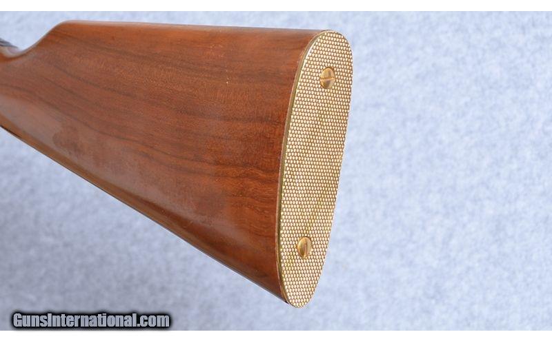 Description: The Illinois Sesquicentennial Winchester Model 94 carbine with saddle ring in .30-30 Win was released in 1968 to celebrate the 150th year of Illinois' statehood. The rifle features a 20" round blued barrel chambered in .30-30 Winchester caliber. The barrel is fit with a hooded front sight and adjustable rear. The left of the barrel near the receiver is marked "Winchester Trade Mark — Model 94 — 30-30 WIN Winchester Proof Steel — Made in the U.S.A." The right side of the barrel has gilt lettering reading "Illinois Sesquicentennial 1818-1968." The saddle ring, hammer and loading port all feature a gold finish. The left of the receiver has an engraved silhouette of President Lincoln and reads "Land of Lincoln." This rifle is more of a "shooter" than a "collector" because a previous owner has etched a Social Security Number on the bottom tang, even though the rifle appears to have never been shot. See photo. The box is in poor condition. .30-30 Winchester SOLD Barrels: 20 Weight: 6.4 lbs Item Location: Boise, ID |