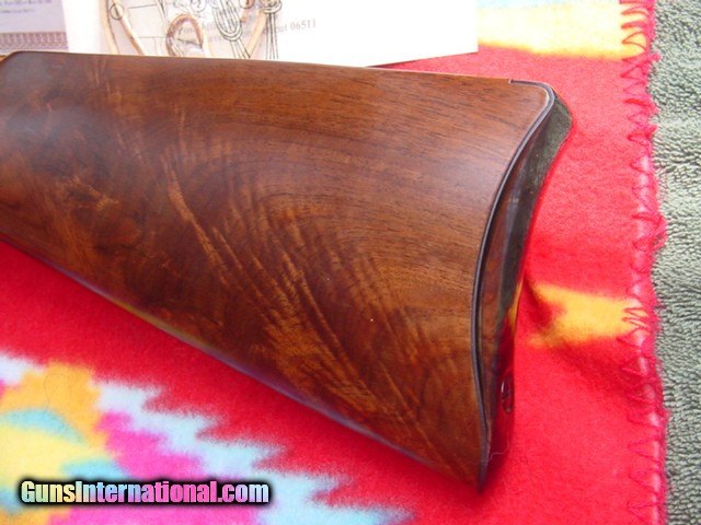 Description: SOLD Winchester 94 John Wayne Commemorative with box and papers. 32-40 16" Barrel Has hangtag-still on lever papers even leather strap for saddle ring-still in factory pouch. Has real nice wood,unfired since leaving factory. Couple very small marks on the wood and one very small mark on the cartridge tube.Box is very good-has some ttaers on outer sleeve. Offered at Reduced $2150 plus shipping-should be 55-65 to most states with some insurance to your FFL. Happy to send along more pic’s, answer questions over phone or email. Please email your phone number so I can call back if I miss the call-do not have text sorry, thanks. Be sure to look at my other offerings for more guns,Merkel'sMannlicher Schoenauer's, Drillings, Combo's, Colt Saa's, Colt’s, Ruger’s, Browning’s,Kimber’s, Les Baer, Uberti'sby both Taylor and Cimarron, and Ferlib, Merkel G&H-Arrieta,Beretta,Parker Repro shotguns and other fine guns. Inventory always changing be sure to check with us for any needs. Local New Hampshire Buyer can view/purchase gun in person-after 4473/ NICS check, at Investment Arms business premise in New Hampshire Country Store, Rt 16 Chocorua NH. Please email/call 603.848.6184 Business or (603.323.8200 ) first to be sure its not sold. We also Buy and Consign Guns Payment by bank check, UPS money order-personal check held until clear 10 days. Buyer must provide dealers signed 01 FFL-email or hard copy, I will include a copy of my FFL with shipment. 3 day non firing inspection period(gun must be in same condition if returned)-starts when gun arrives at your dealer, on used guns only-not new guns sorry-they are under factory warranty, buyer pays shipping and insurance both ways if returned. SAFETY NOTICE: Buyer is solely responsible for determining that a used gun is safe to shoot. The firearms offered has been given a visual inspection for collection purpose only. It is a requirement that any used firearm be inspected by a qualified gunsmith before firing. By purchasing the firearm, the buyer agrees to hold seller harmless against damages, injury, or death caused by defective merchandise SOLD |