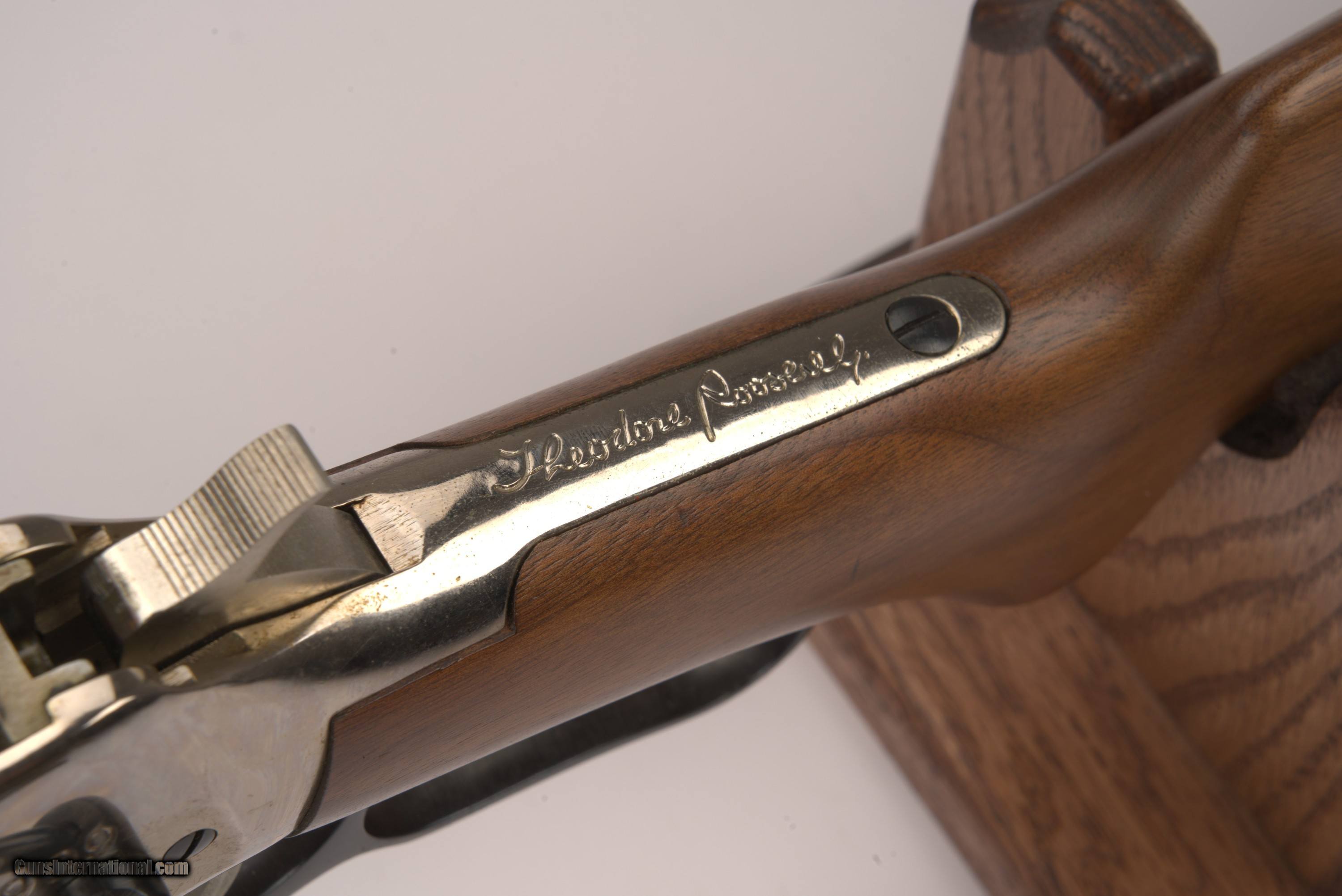 Description: -Manufacturer: Winchester -Model: Model 94 Theodore Roosevelt Commemorative -Serial Number: TR12663 -USED -Gauge/Caliber: .30-30WIN -Year Manufactured: 1969 -Barrel Length: 29" -Barrel Markings: Rifle: Winchester R Model 94 30-30 WIN made in New Haven Conn USA Winchester Proof Steel -Hand: Right Hand -Length of Pull: 13 1/2" -Trigger Type: Single -Stock Type: Pistol Grip -Receiver Finish: Coin -Weight: 7lbs 2oz -Country of Origin: USA -Action: Lever Action -Stock/Forend Finish Originality: Original -Receiver Finish Originality: Original -Barrel Finish Originality: Original -Bore Condition: Excellent -Items the Firearm comes with: Gun Only -Current Damages Explained: Moderate handling marks on the LH & RH side of the stock/forend followed by some deeper scratches on the underside of the stock. -Barrel Damages: Light series of scratches towards the front sight of the barrel. -Dents or Deep Gouges: See stock damages -Rust or Corrosion: Small amount of rust build up located on the front sight -Firearm Condition: Good: In safe working condition, minor wear on working surfaces, no broken parts, may have minor fading on some metal surfaces, may have minor corrosion, or may have minor pitting, may have minor scratches or wear on stock/forend. All cosmetic and nothing that will interfere with proper functioning. This is a USED GUN and the actual photos of the gun you will receive. Please feel free to contact us if you would like to make an offer on this gun. Not the model you are looking for? Give us a call or email today and we will be happy to help find the right gun for you! If you contact us directly, we offer a 3% Cash or Check Discount, do not charge shipping on orders over $3,000, and also do not charge out of state taxes. There will be a $40 shipping charge for any firearms under $3,000. Rifle Caliber: .30-30 Winchester Manufacturer: Winchester Model: Model 94 Theodore Roosevelt Commemorative Serial Number: TR12663 Barrel Length: 20 Condition: USED Price: $1,400.00 Buy Now Contact Seller |