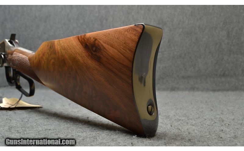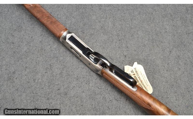 Description: This lever action rifle is a Winchester Model 94 Wells Fargo commemorative chambered in .30-30 Winchester. This rifle features checkered walnut fore end and stock, an engraved nickel platted receiver, and a saddle ring. This firearm comes with a factory Wells Fargo commemorative box. .30-30 Winchester SOLD Metal Condition: Overall good condition with minor handling/display wear Wood Condition: Overall excellent condition with minor display wear Bore Condition: "Bright and shiny, crisp rifling Barrels: 20 Inch Stock Dimensions: 13 inch LOP Fore End: Checkered walnut fore end and stock Butt Pad: Plastic butt plate Weight: 7 lbs Sights: Buckhorn rear sight and solid black front sight Item Location: Wichita, KS |