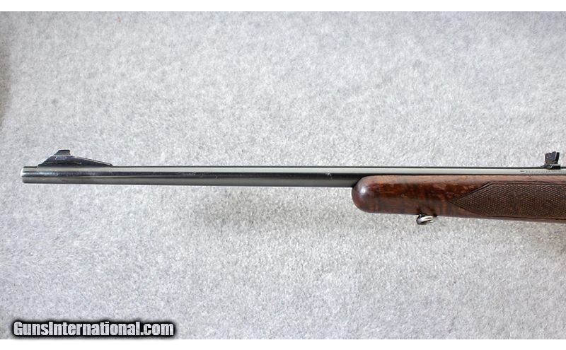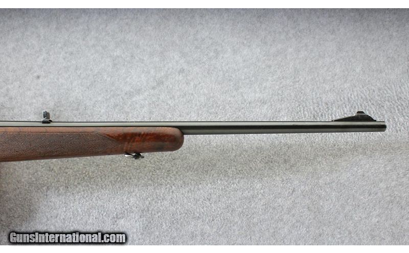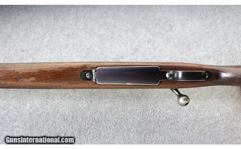 Description: This pre 1964 Featherweight Winchester Model 70 features a control round feed action, large Mauser style claw extractor of positive feeding and extraction, walnut Monte Carlo stock, hinged floor plate magazine for safe unloading and a three position safety. Manufactured 1954. .308 Winchester SOLD Metal Condition: "Good with finish wear, nicks and scratches Wood Condition: "Fair, finish wear, finish flaking, dents and scratches Bore Condition: "Good, sharp and bright Barrels: 22 inch barrel Stock Dimensions: 13 1/4 inch LOP Fore End: Checkered walnut Butt Pad: Pachmayr recoil pad Weight: 7 Lbs. 3 Oz. Sights: Folding leaf rear sight and bead front Item Location: Lehi, UT |