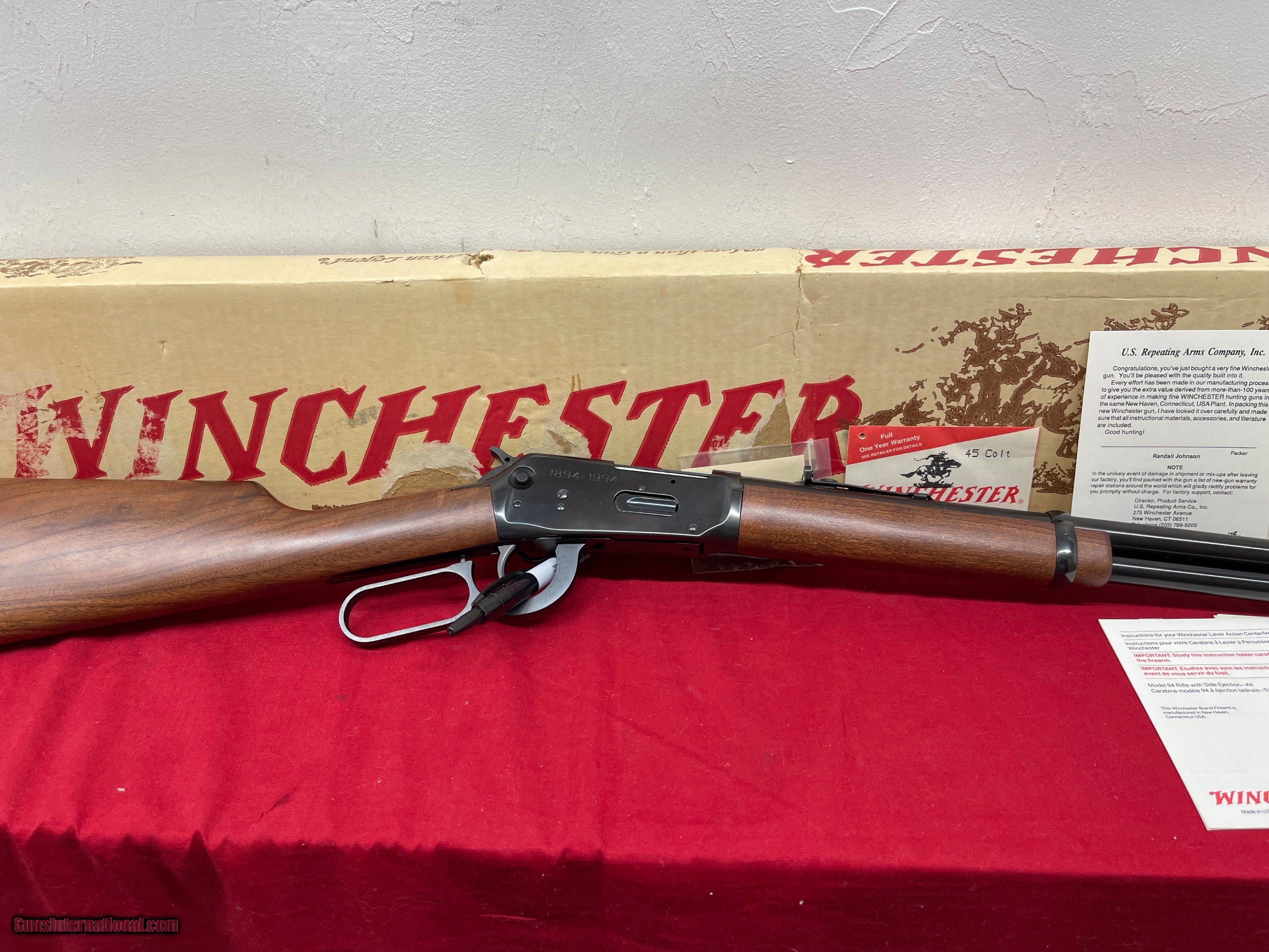 Description: Another great item from Gainesville Pawn! Up for sale is Wincehster Model 94. This saddle ring carbine has the 100 year logo on it and in 45 Colt caliber. The gun is new in the box with paperwork. The box is a little weathered. Please see photos for more detail. *Please be aware that all items are sold “AS IS”. Ask questions BEFORE buying. Feel free to call us at our store (352) 240-6452 or email us at Gainesvillepawngmail with ANY questions. We do not accept trades or offers through through Guns International We only entertain trades and offers through our store. $65 shipping and handling. Insurance extra. We only accept USPS money orders and major credit cards for payment. 3% convenience fee for credit cards. WE collect Florida state sales tax for in state sales. Please be aware that this item is for sale in our store as well as the occasional gun show so it may be sold there at any time. YOUR DEALER MUST EMAIL US A SIGNED COPY OF THEIR FFL TO gainesvillepawn(at)gmail(dot)com BEFORE WE SHIP ANY FIREARM. SOLD Rifle Caliber: .45 Colt Manufacturer: Winchester Model: 94 saddle ring carbine Condition: New Metal Condition: New Wood Condition: New Bore Condition: New |
