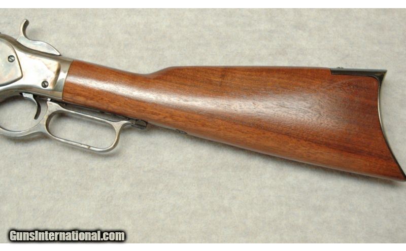 Description: Chaparral Model 1873 Rifle .38-40. Excellent condition, shows very little wear. Heavy octagon barrel and case colors on receiver and lever. SOLD Caliber Info: .38-40 Winchester. Chambers: Lever action. Metal Condition: Excellent, few light wear and handling marks. Wood Condition: Stock is in excellent condition. Bore Condition: Bright. Barrels: 26" Octagon barrel, case colored receiver. Triggers: Factory trigger. Stock: Semi gloss finish. Stock Dimensions: 12 1/2" LOP. Fore End: Smooth with metal cap. Butt Pad: Curved metal butt plate. Weight: 8 Lbs 8 ozs. Sights: Iron sights. Item Location: La Vista, NE |