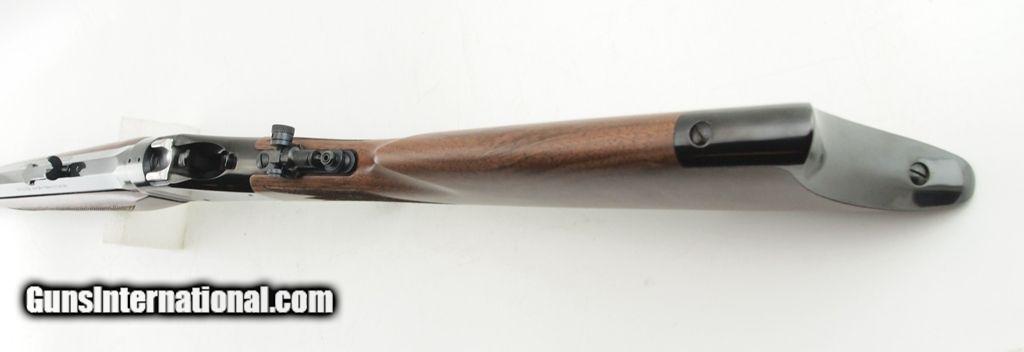 Description: Winchester 1885 High Wall Traditional Hunter .45-70 WBox, 28" octagonal barrel, bright shiny bore, good rifling, buck horn and Marble's Tang Peep Sight rear sights, Marble's gold bead front sight, drilled and tapped for your optics, gloss blued finish, single shot falling block lever-action, satin finished checkered walnut straight stock and crescent butt plate. This rifle is in excellent condition and does not appear to have been fired. Great rifle for your collection. Add 3% for Credit Card Shipping $35.00 SOLD |