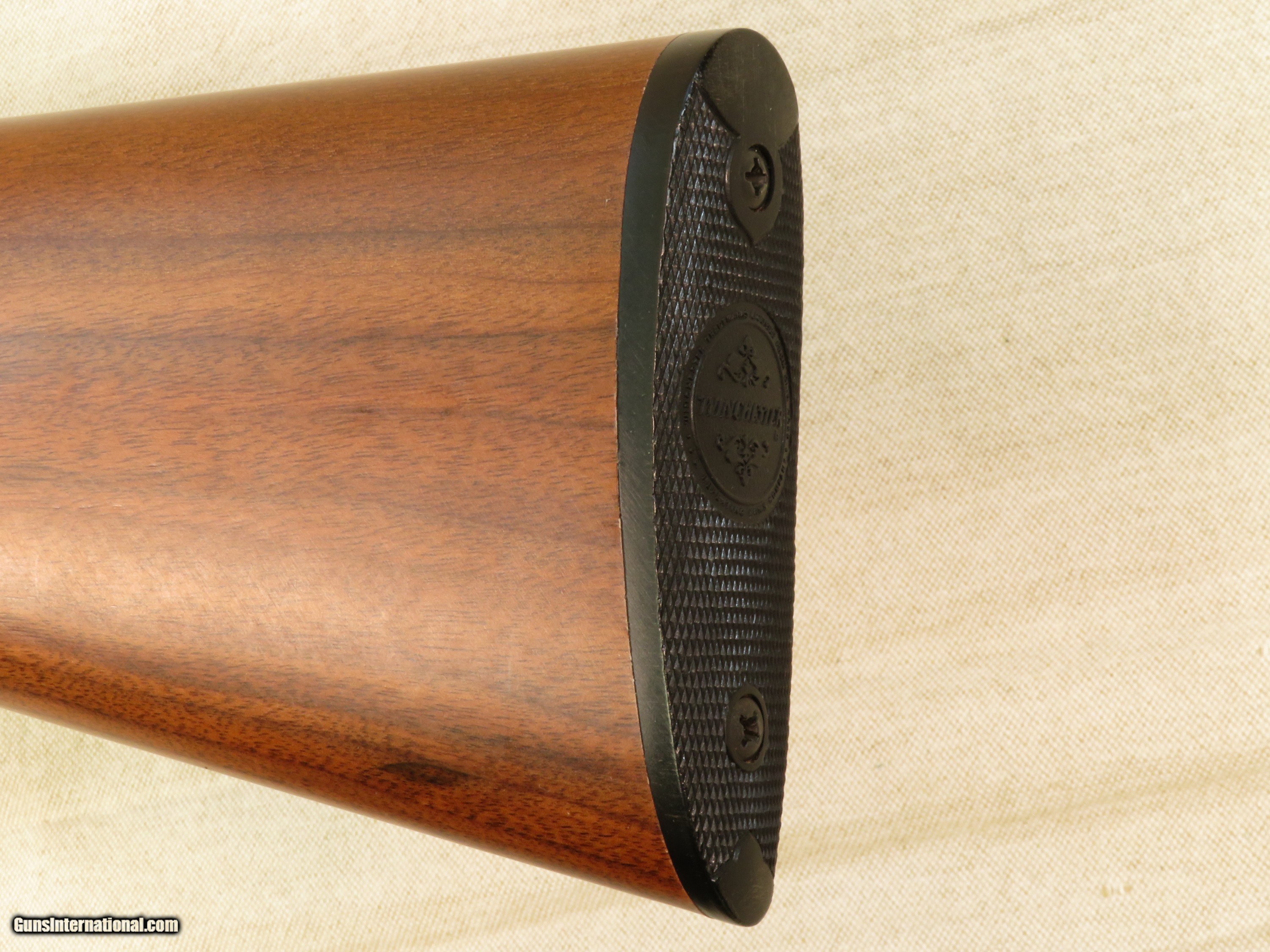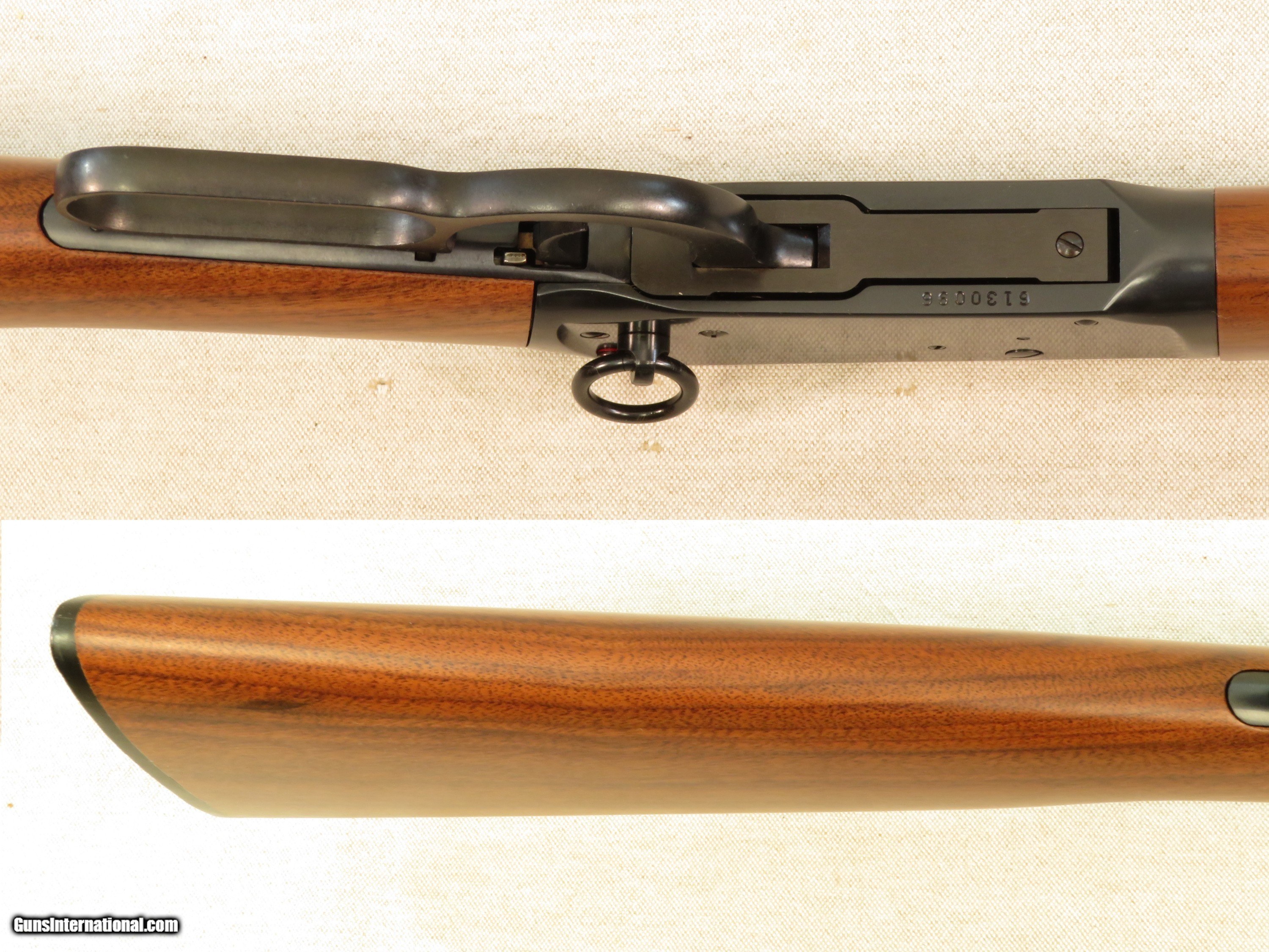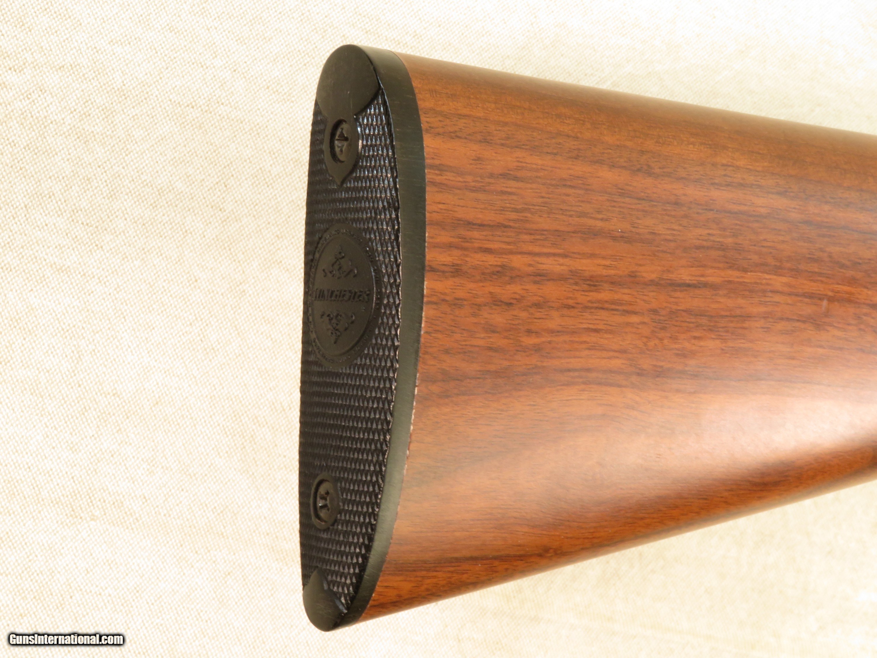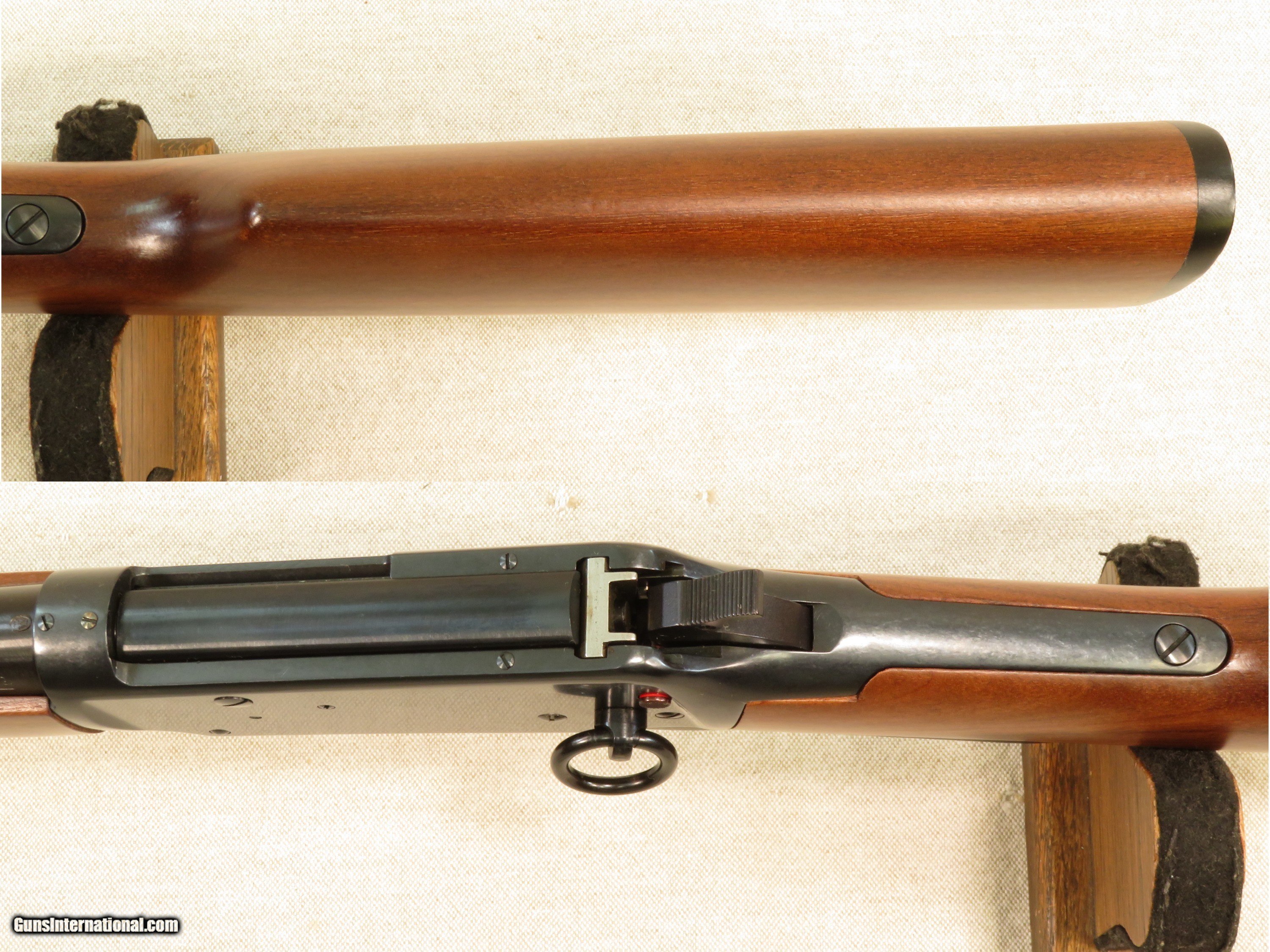 Description: In 1994 Winchester stamped all of their 94 Winchesters "1894-1994" to celebrate 100 years of production of that model. This 94 Winchester Trapper is fitted with a 16 inch barrel with full length tube magazine, receiver mounted saddle ring, walnut forearm, walnut stock fitted with a checkered balck plastic butt-plate, push button safety, angle eject action, drilled and tapped for scope mounts, is blue finished, and chambered in .44 Magnum. The gun is unfired and is as new condition, with only a couple of minor dings on the right side of the stock. Comes with its original numbered to the gun box and all paper-work. PRICE: **SOLD** We are Antique & Modern Firearms in Lexington, KY, a dealer of fine firearms since 1974. PH. 859-276-1419 We Buy, Sell, and Trade Firearms & Knives. Do you have an Individual Firearm, Firearms Collection, or Firearms Estate to sell? Give us a call or send an email, and we can talk about buying the item(s) outright or selling them on consignment for you. NOTE: No additional fee for a Credit Card payment. YES, We have a Layaway Program: 1/3 down---60 days to pay off. SOLD Manufacturer: Winchester Model: 94 Trapper |
