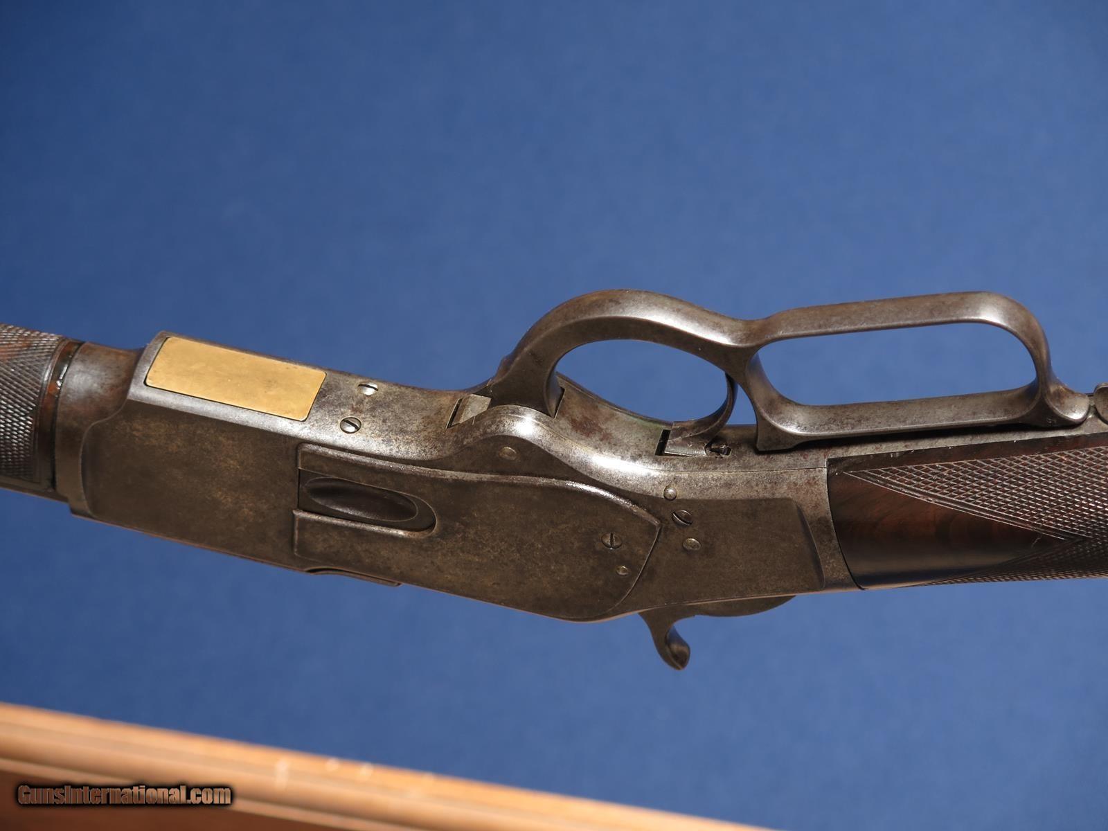 Description: Winchester 1873 Deluxe 44-40. 26 inch octagon barrel. Set trigger. 1879 mfg. Crack in stock in pistol grip. Checkered wood. Case hardened receiver but no case left. With Cody letter. Very good bore. SOLD Antique: Yes |