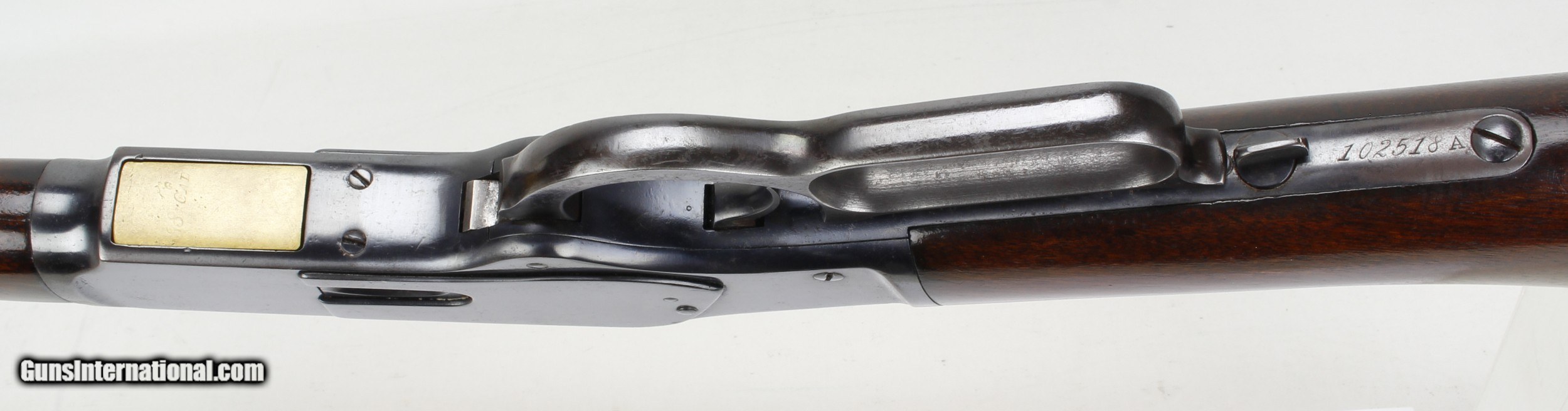 Description: Winchester Model 1873 Rifle in .38-40. SN #102518A. Mfg. in 1882. LOP 13 1/4". 24" round barrel with a Fair bore. Frosted with light rifling and some pitting. The blued metal has been re-finished at some point over the years. The straight Walnut stock and forend have also been re-finished. Full tube magazine. Steel buttplate. Smooth action. Mechanically fine. This is an antique and requires no FFL to purchase. SOLD Antique: Yes Manufacturer: Winchester Model: 1873 Serial Number: 102518A Barrel Length: 24" Round Caliber Info: .38-40 Metal Condition: Re-finished Wood Condition: Re-finished Bore Condition: Fair LOP: 13 1/4 Finish: Blue  |