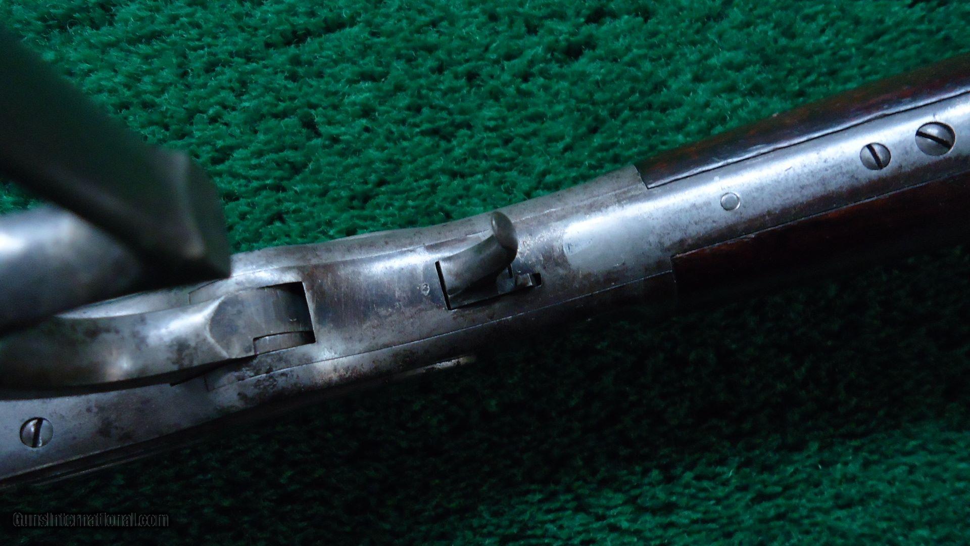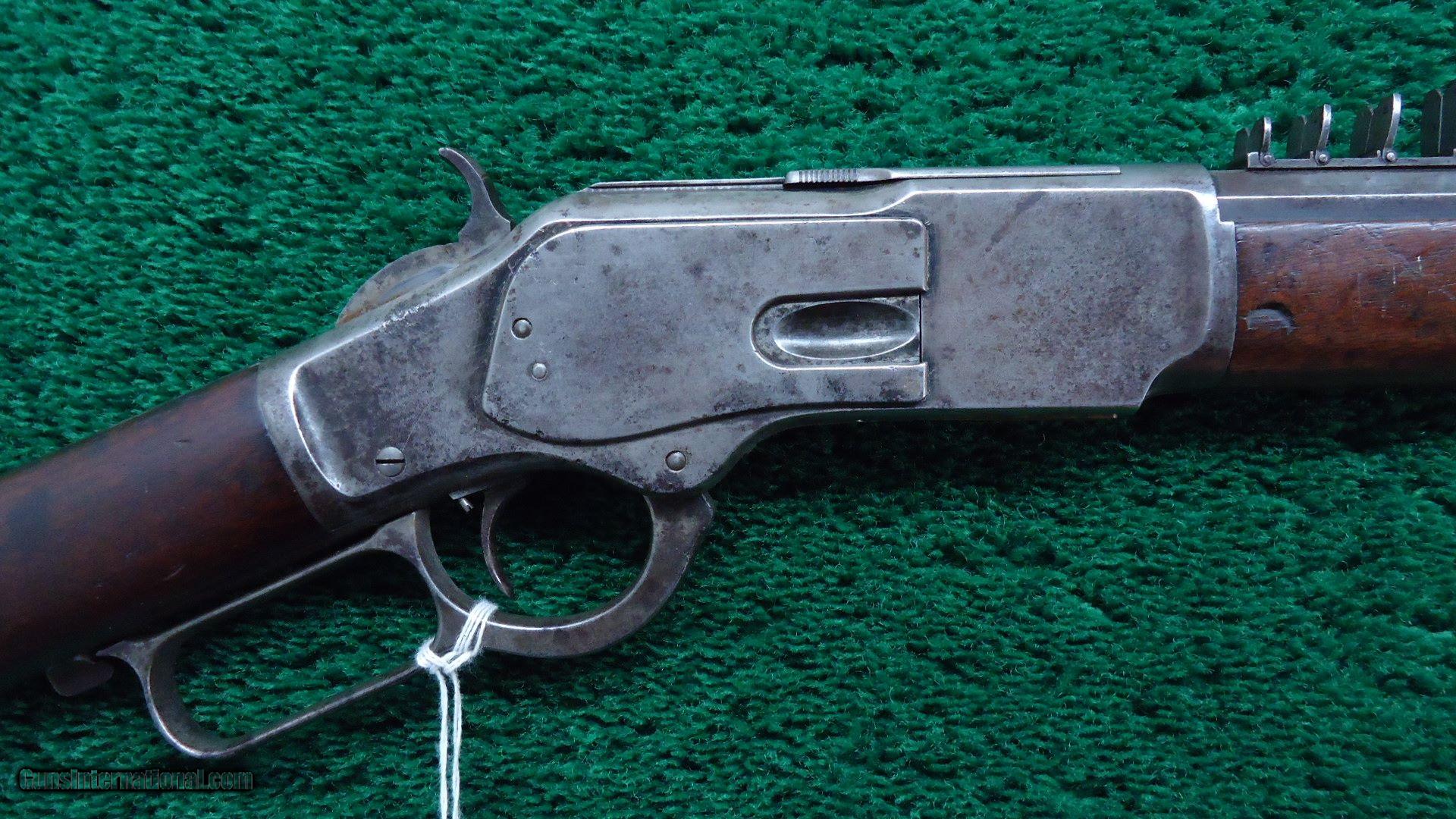 Description: Caliber 44-40. Features a 24 inch octagon barrel and full length mag tube. Beeches combination folding front sight and very scarce 7-leaf platinum lined rear sight. A VG shootable bore with well defined rifling. Wood is in good cond with some minor dings and initials on the buttstock. A chunk out of the forearm about 2" long. Rifle style butt plate. Special order sling swivels as well as set trigger. Overall metal in generally good cond is light grey color having possibly been cleaned at one time. Sharp corners. Good markings. Nice functioning action. Complete with original set trigger and Factory Letter. Leroy Merz Antique Firearms specializes in antique and vintage Winchesters and other fine American firearms. Since 1965 Mr. Merz has taken part in the world of firearms and has been a contributor to many well known reference books. We have hundreds of additional guns in every price range at our home online. Search for Merz Antiques in google. SOLD Antique: Yes |