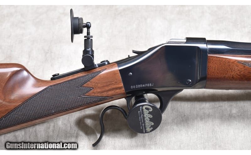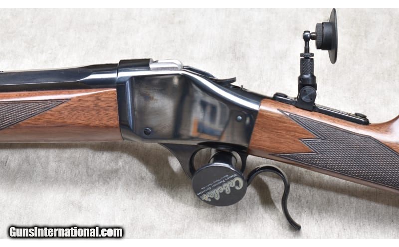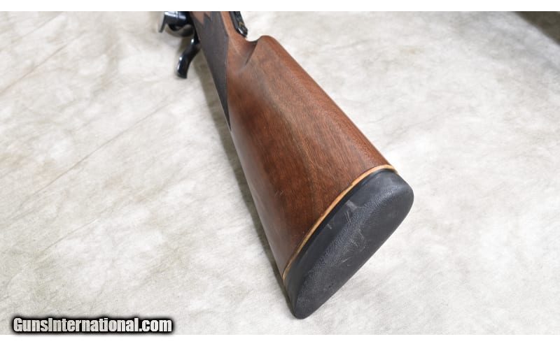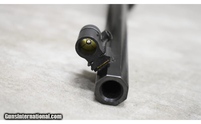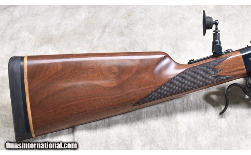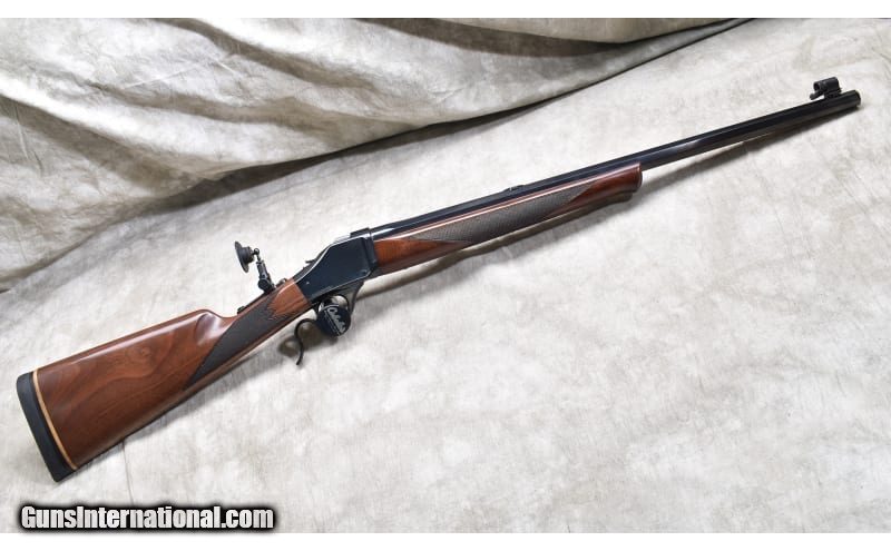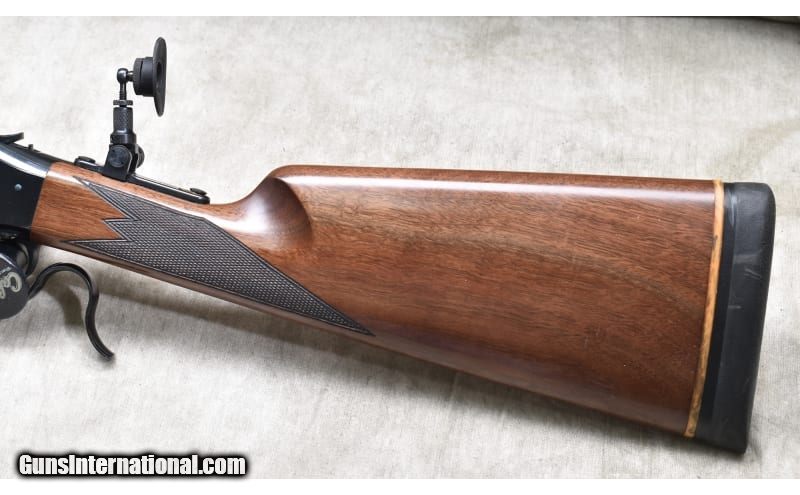 Description: Manufactured in 2009, this 1885 Sporter features target sights, octagonal barrel, and near carbine overall length. It has a straight grip stock made from nice walnut. .45-70 Government SOLD Chambers: Single Shot Metal Condition: Excellent. Wood Condition: Excellent. Bore Condition: Shiny and bright with crisp rifling. Barrels: 23-1/4 inch octagonal. Triggers: Factory trigger Stock Dimensions: 13-5/8 inch LOP Fore End: "Slim, well-matched walnut with Schnabel. Butt Pad: Soft and thick rubber pad. Weight: 8 lb - 6 oz Sights: "Globe type front sight with spirit level, Target peep tang sight, drilled and tapped for barrel mounted rear sight. Item Location: Rogers  |