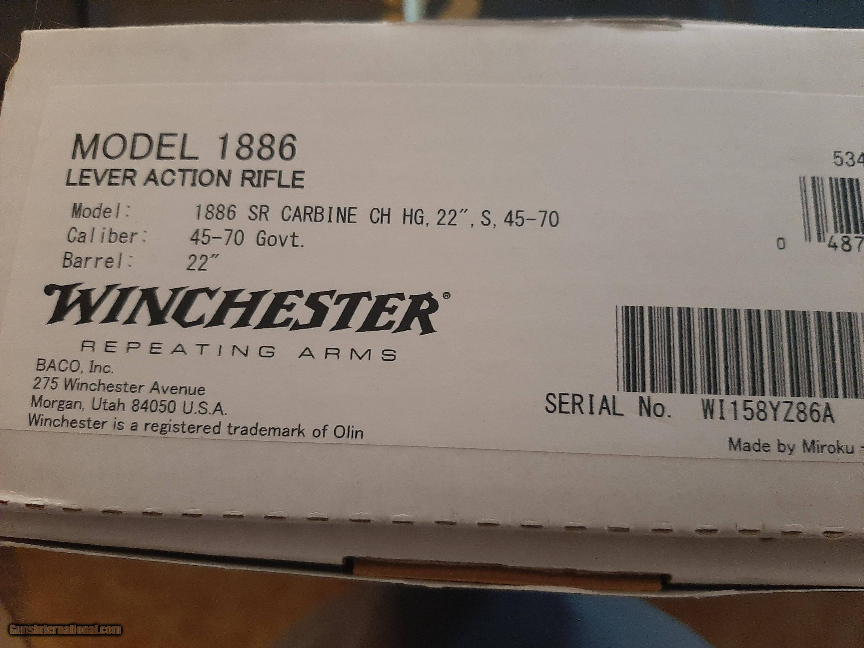 Description: Winchester Model 1886 Hi Grade 45-70 Carbine that is a Davidsons Exclusive, only 201 produced. Has a 22" Barrel. Case Colored Receiver with Saddle Ring. Credit Cards add 3%. Shipping and Insurance is 75.00. SOLD Rifle Caliber: .45-70 Government |