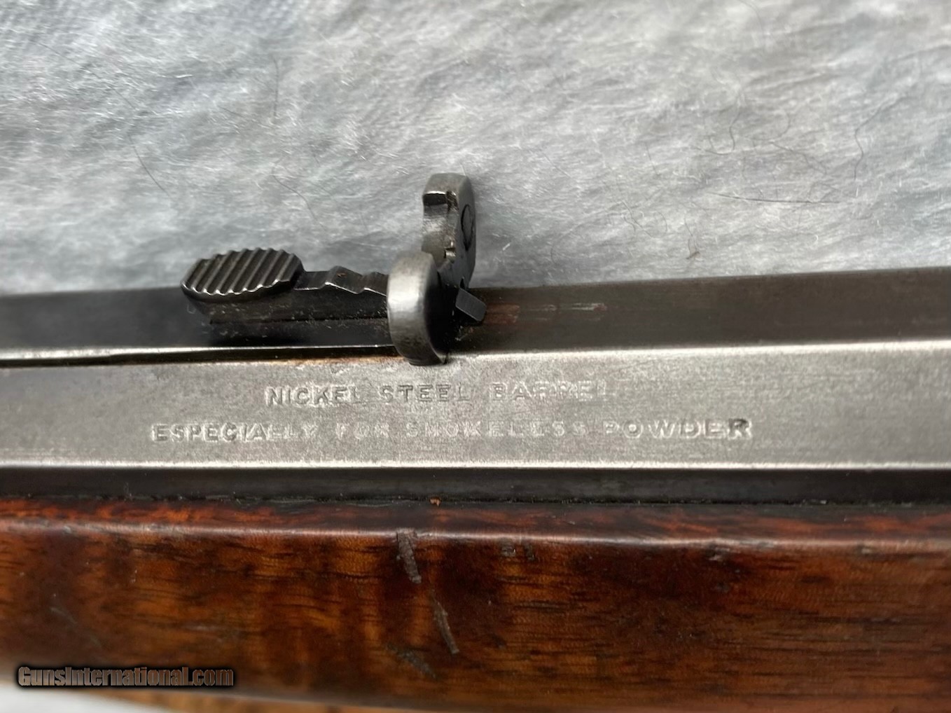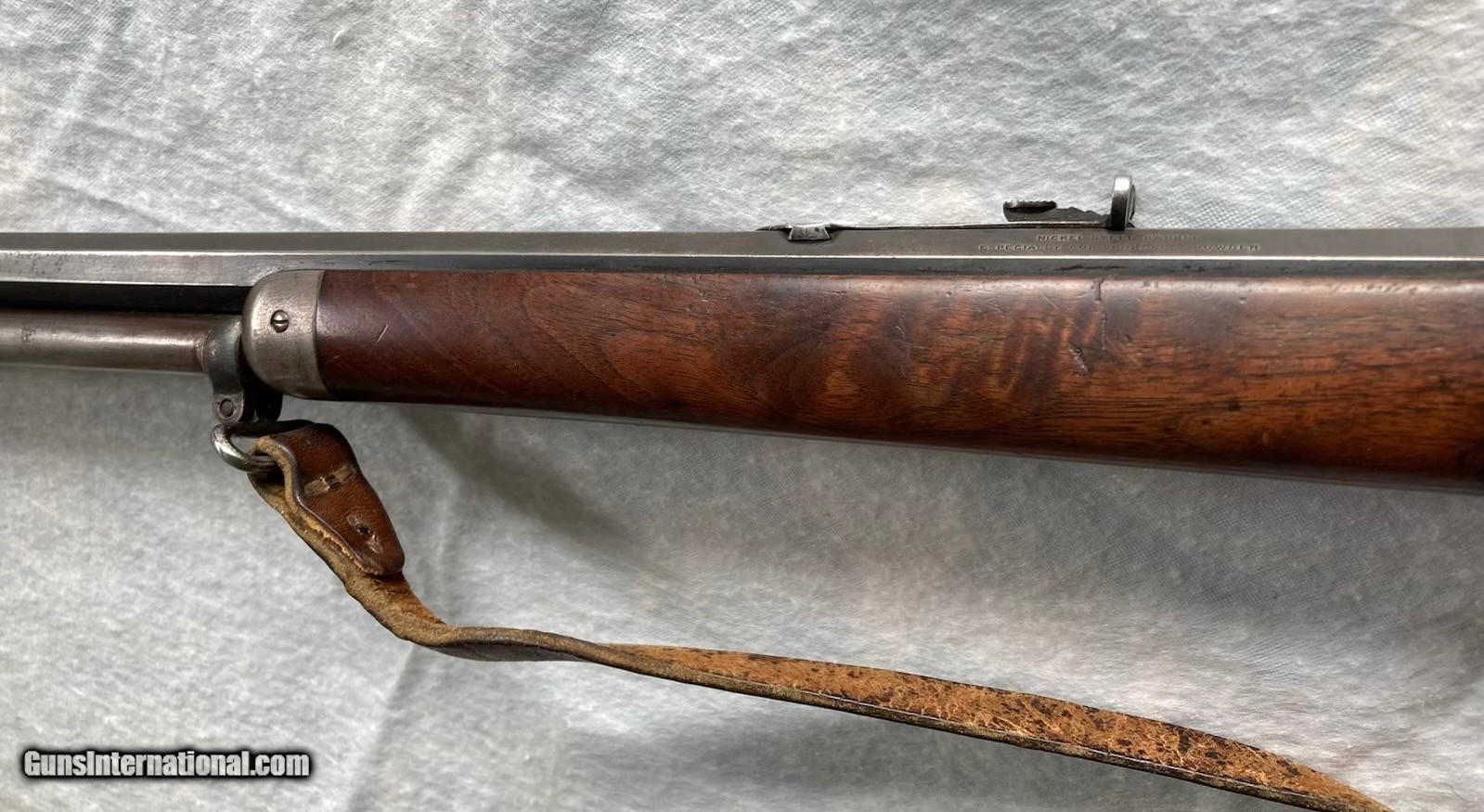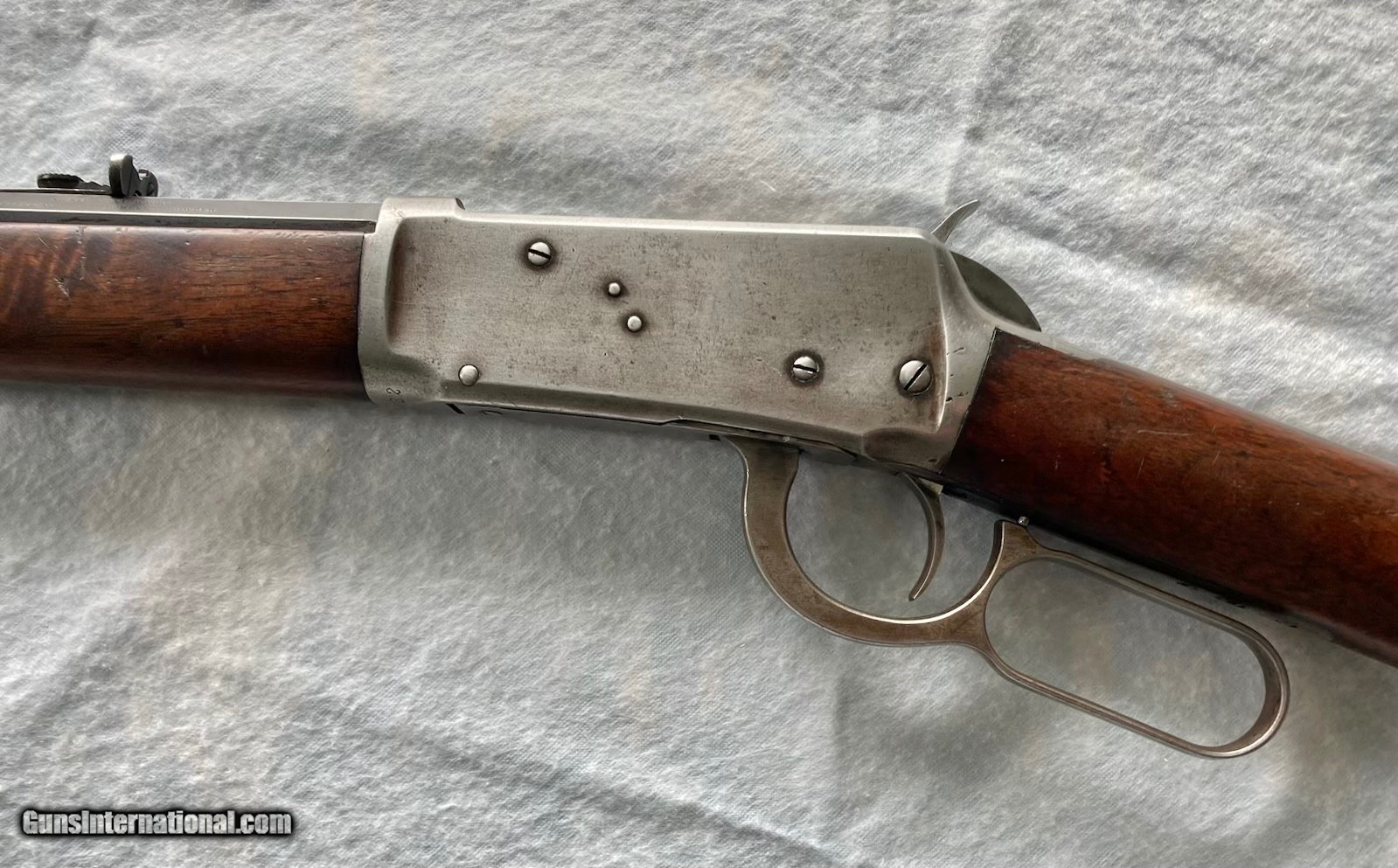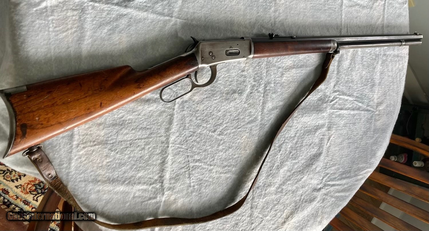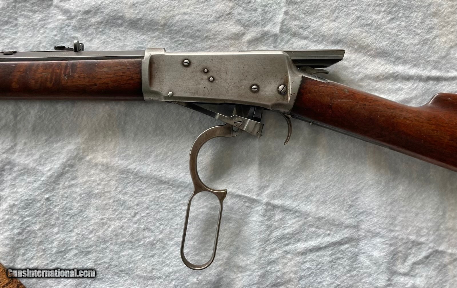 Description: Winchester model 1894 30-30, manufactured in 1896. This rifle is in very good condition. The trigger and lever action are tight with no slop . It has the original sights with semi-buckhorn rear sight. There is some marring on the wood, but the finish is the factory finish. It has the factory 26-inch barrel, in excellent condition. This rifle is all original, except for the added leather sling strap. It comes with the leather scabbard. SOLD Antique: Yes Rifle Caliber: .30-30 Winchester Manufacturer: Winchester Model: 1894 Serial Number: 56432 Barrel Length: 26 Bore: 30/100 Condition: very good Metal Condition: excellent Wood Condition: good Bore Condition: excellent Barrel Type: octagon Action: lever Stock: wood Stock Heel: metal Weight: 11lb. 6oz. Sights: semi buckhorn Manufacture Date: 1896 Item Location: Washington |