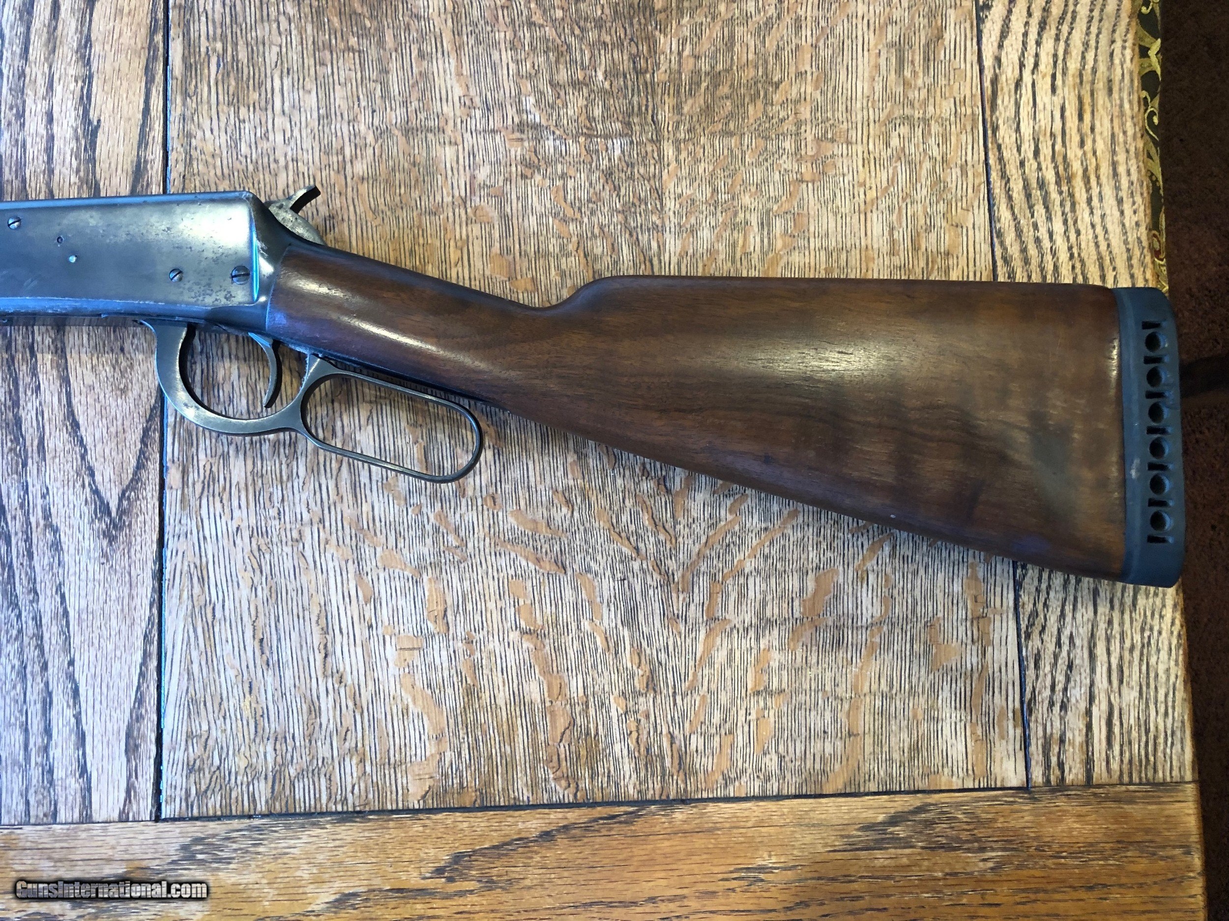 Description: Winchester pre 64 in popular 30-30 caliber. Gun has nice action and overall I would consider it above average condition 80/90%. A few pits and scratches but it's 75 years old. I wouldn't consider it a truck gun. Someone has put a recoil pad on the stock ( see pic) nice install w 14" lop. 20" brl full length magazine. Original hooded ft site and rear notched. Will make someone a nice rifle with years of hunting. SOLD Curio/Relic: Yes Rifle Caliber: .30-06 Springfield Manufacturer: Winchester Model: Model 94 pre 64 Serial Number: 1439257 Barrel Length: 20” Condition: 85-90% Metal Condition: Good Wood Condition: Very good Bore Condition: Very good Action: Lever |