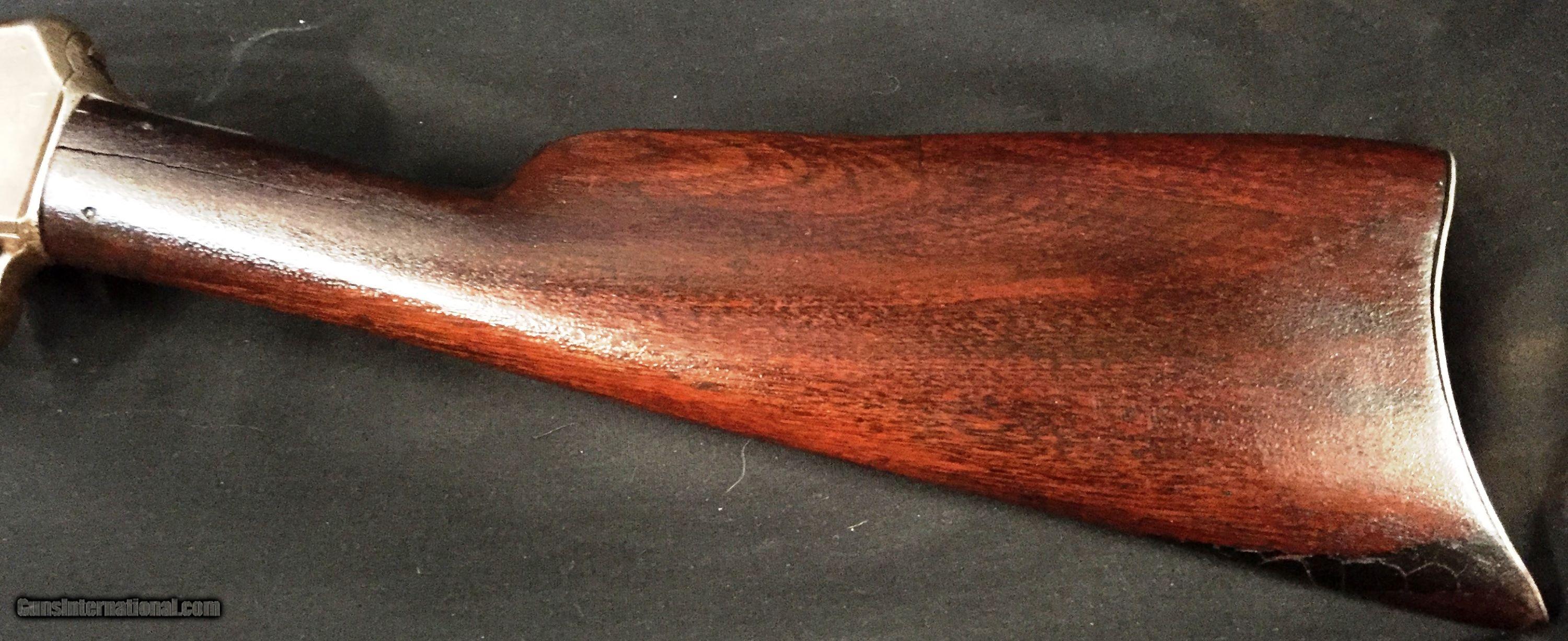 Description: The Winchester Model 1903 was designed by T.C. Johnson. It was first chambered for the .22 Winchester Automatic cartridge. In 1919, the Model 1903 moniker was shortened to Model 03, and following a partial redesign in the 1930s, was renamed the Model 63. Fed by tube magazine that was removed from the butt stock. Firearm has crack on both sides of stock at neck that have been repaired. SOLD Manufacturer: Winchester Model: 1903 Serial Number: 20138 Caliber Info: .22 Win. Auto Condition: Pre-Owned Barrels: 20 Action: Semi-Auto Triggers: Single Stock: Walnut Stock Comb: 1 3/4 Stock Heel: 2 3/8 Butt Pad: Factory Butt Plate LOP: 13 Weight: 5lb 5oz Sights: Iron Manufacture Date: 1905 Case: No Item Location: Springfield, MO |