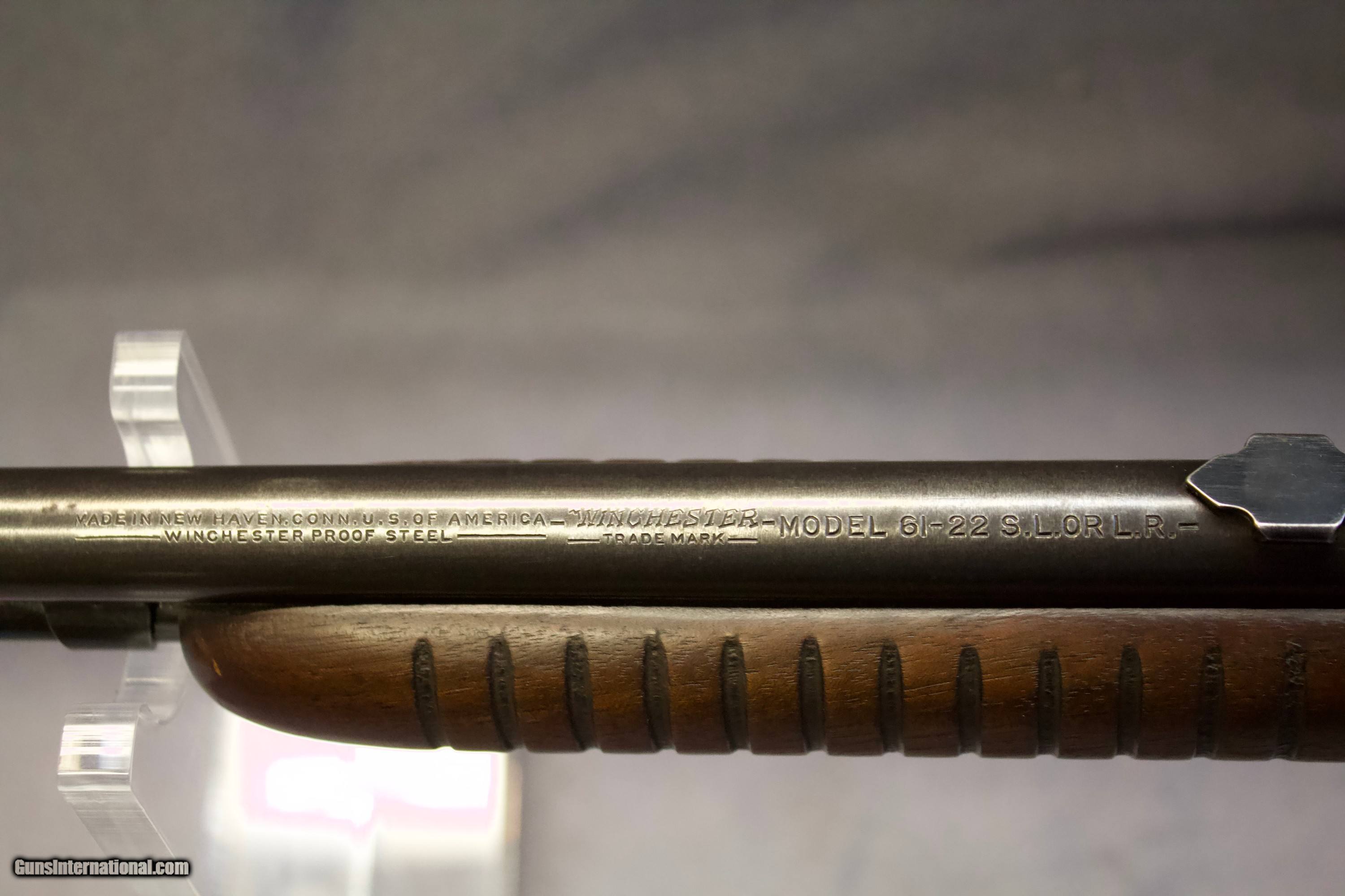 Description: Listed is a Winchester Model 61 in .22 LR Rifle is in very good condition The barrell has some light usage marks and very little bluing fading Stock has some handling and storage marks, and also the letters JJG engraved into the stock Barrel shows some slight wear. Price is $975.00 + Shipping SOLD Rifle Caliber: .22 Long Rifle Manufacturer: Winchester Model: 61 Barrel Length: 24 Condition: Very Good Metal Condition: Slight wear due to age Wood Condition: Good slight wear and engraving Bore Condition: Very good/slight wear Action: Pump |