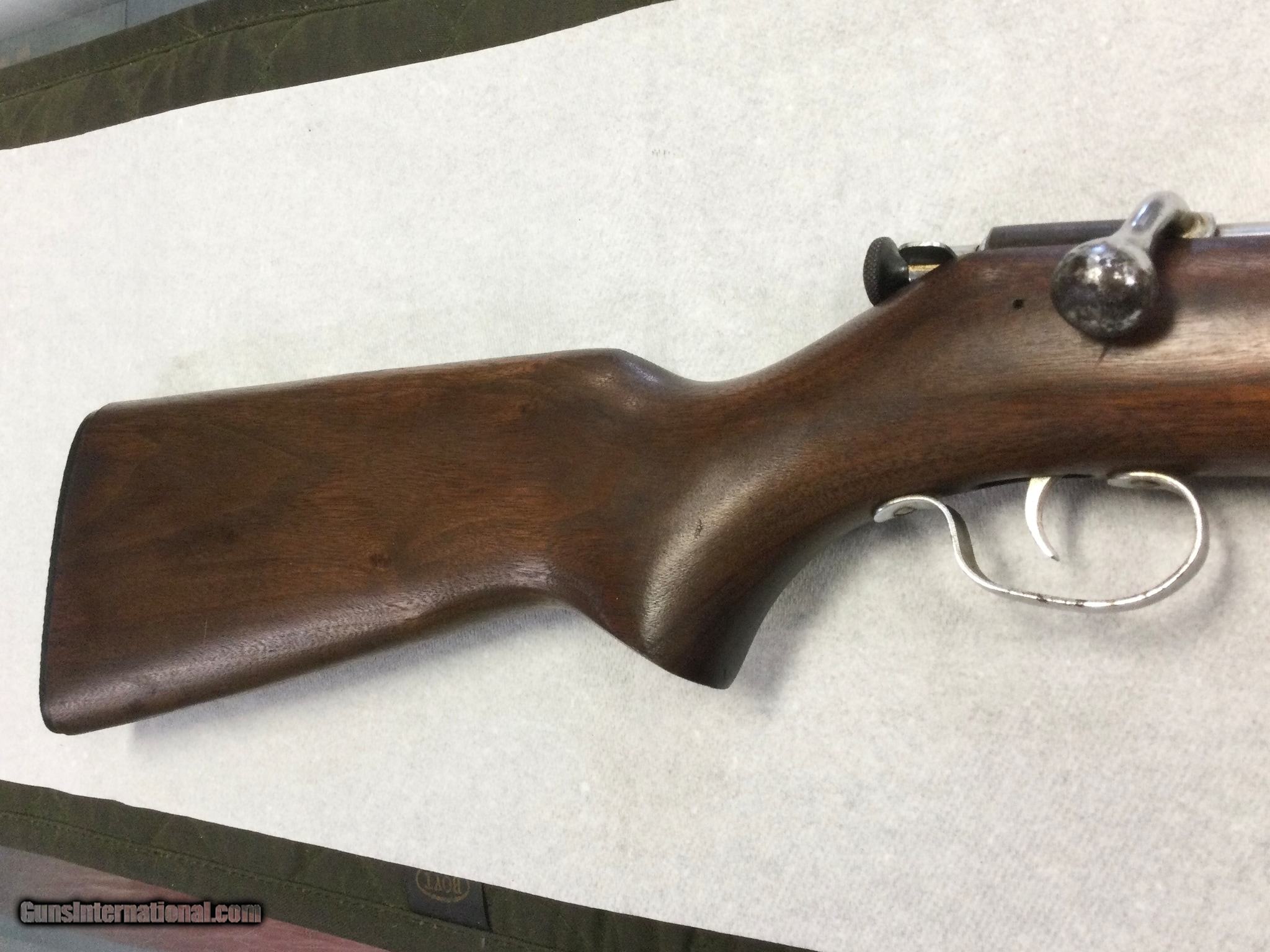 Description: Guns Listing ID: 857473 Winchester 67 A youth in good condition. 12.5\" LOP. Would list as very good but there is some pitting on the bolt handle. Action is in great shape and racks smoothly. Wood is overall in very good shape and the steel has a nice patina. SOLD Manufacturer: WINCHESTER Model: 67 A Caliber Info: .22 LR Condition: Used - Non-Certified Barrels: 20 BARREL Finish: BLUED |