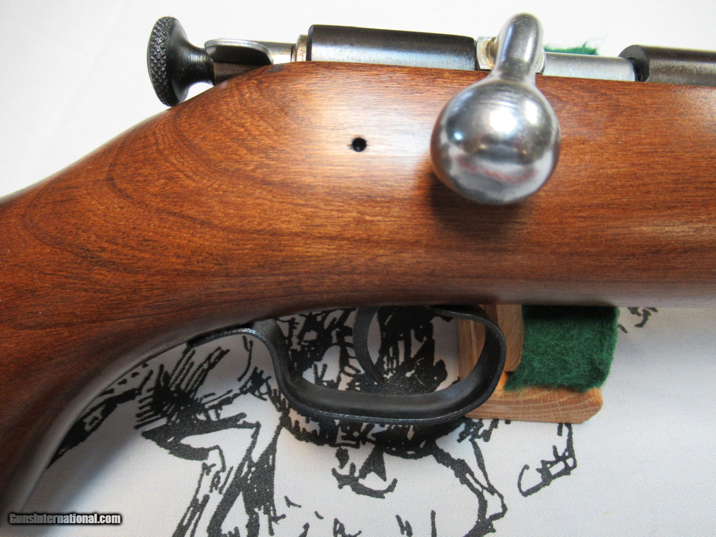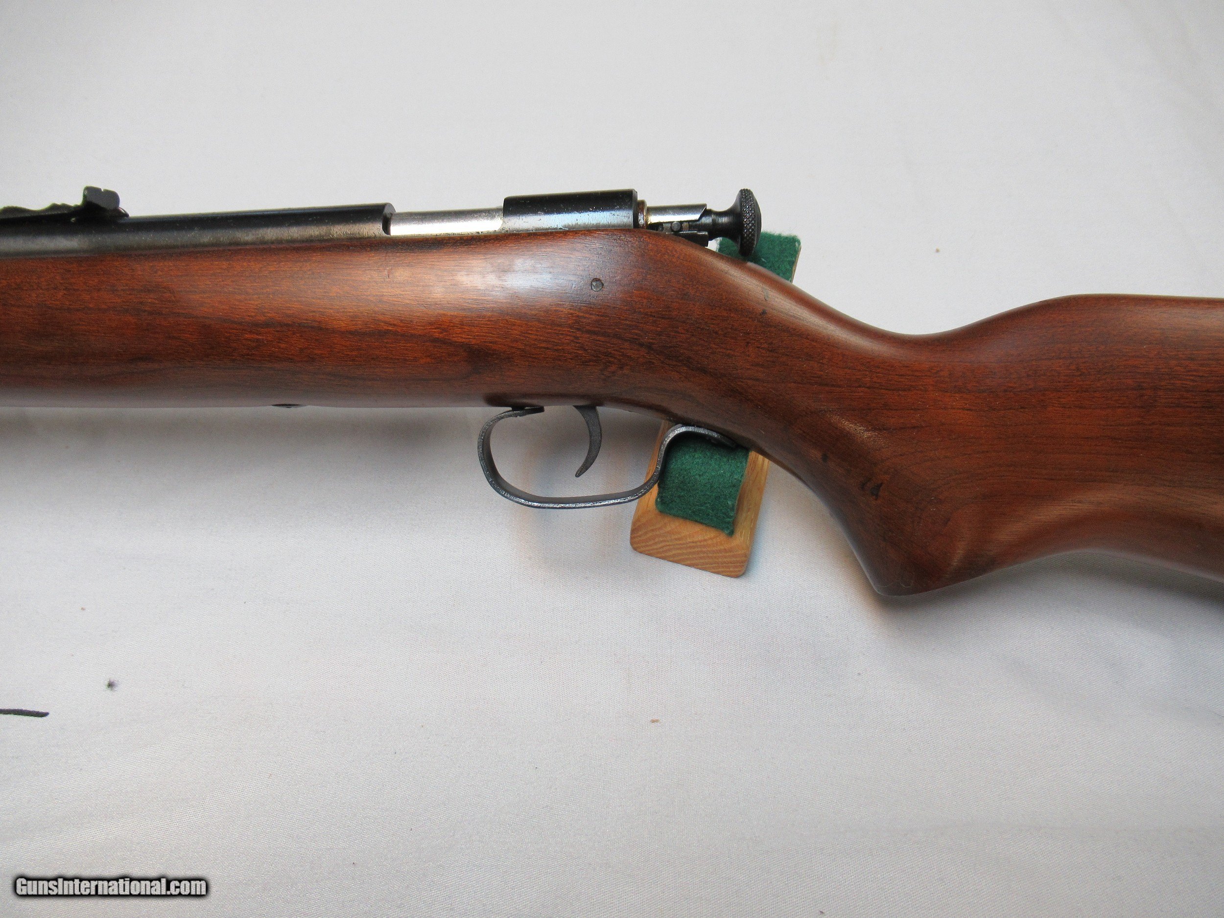 Description: Winchester Model 67 22 long or Long rifle Smooth bore ,27" barrel with correct front and rear sights. Barrel retains 98% plus original blue, wood is excellent, bore is crisp. This boys rifle seems to be unfired, there is still dried grease on the bolt. Hard to find with any condition at all.Will fit in anyones collection. Any questions or comments call Greg 607-865-4370. Thank you And Remember "Quality Matters SOLD SOLD |