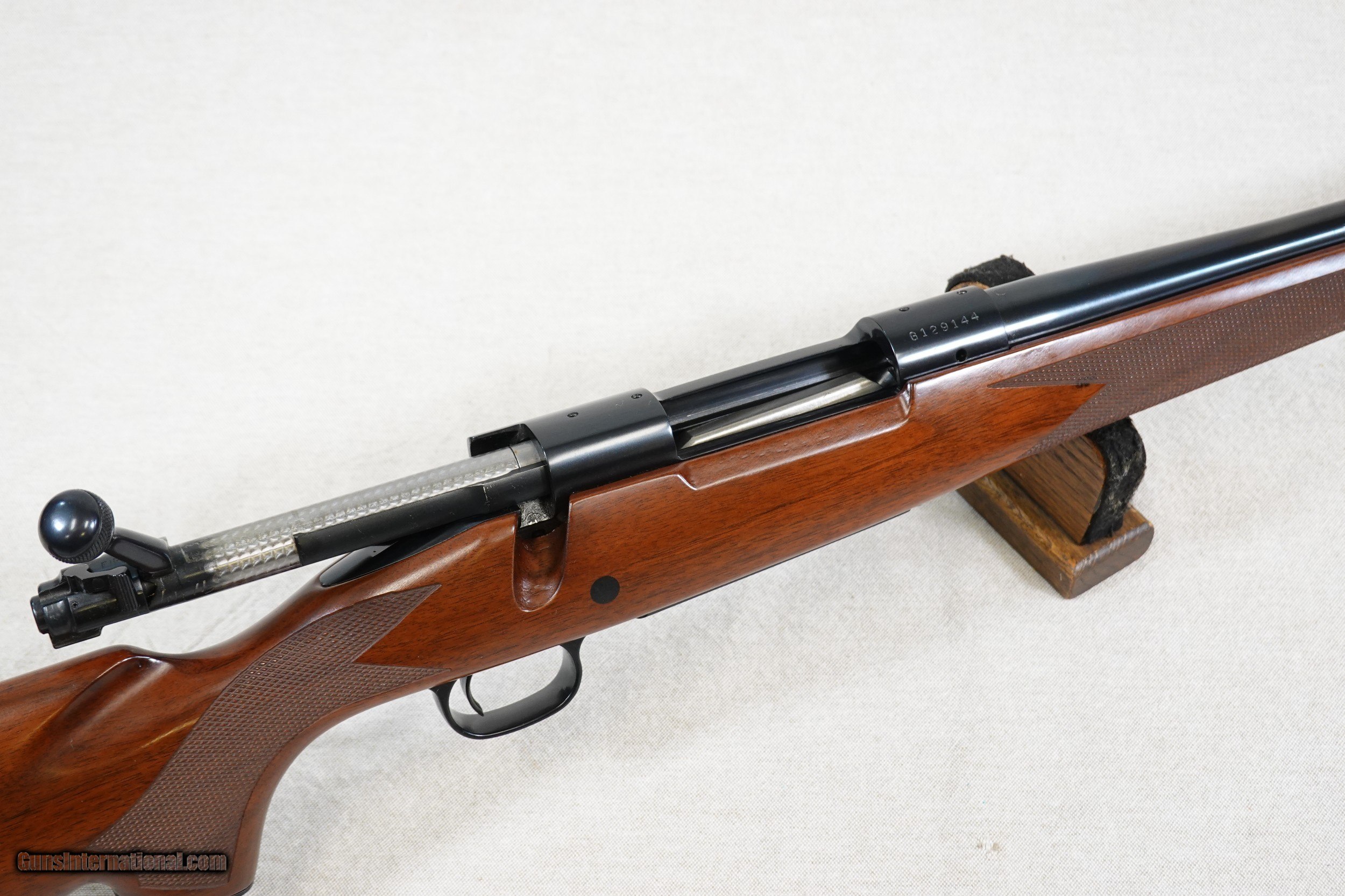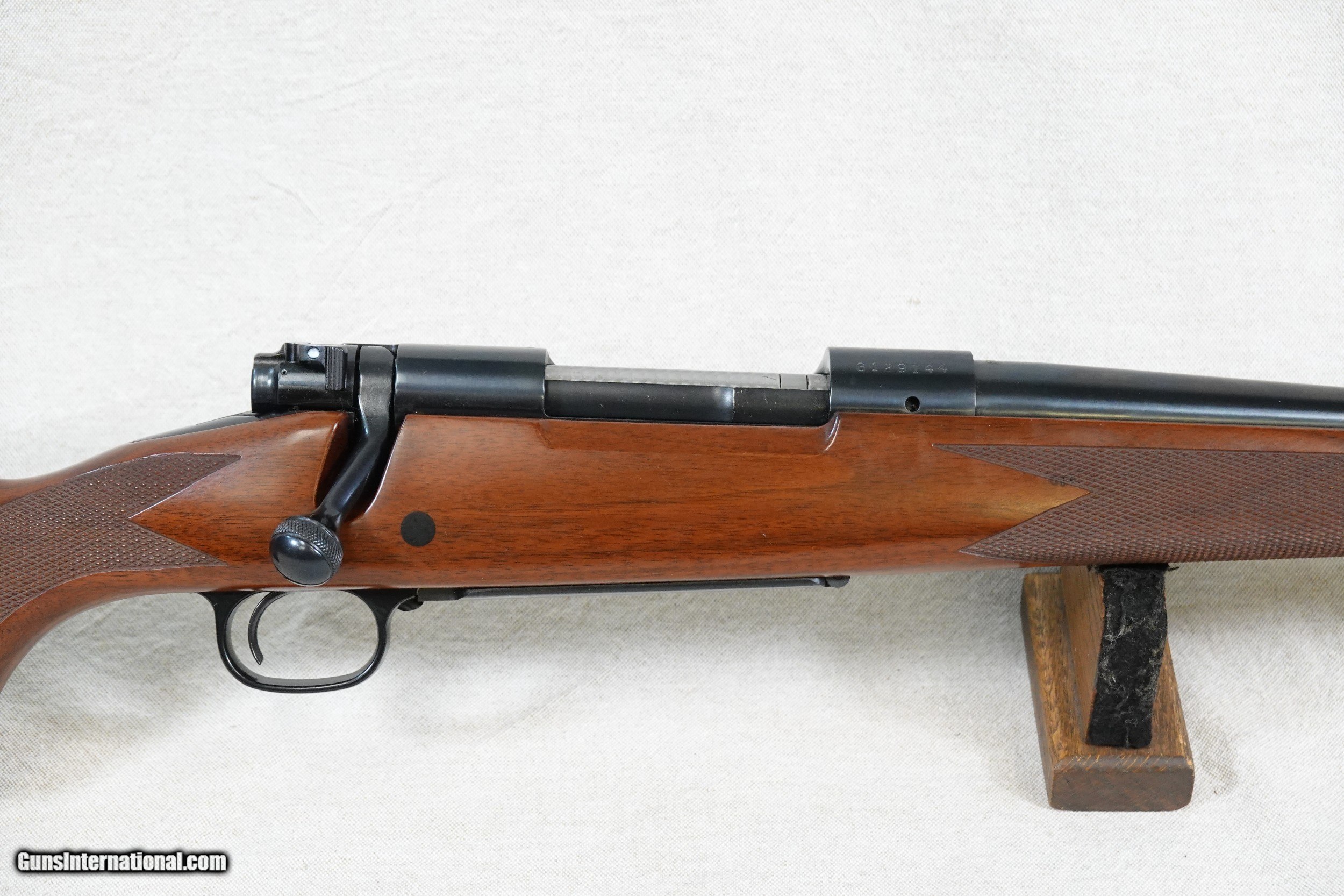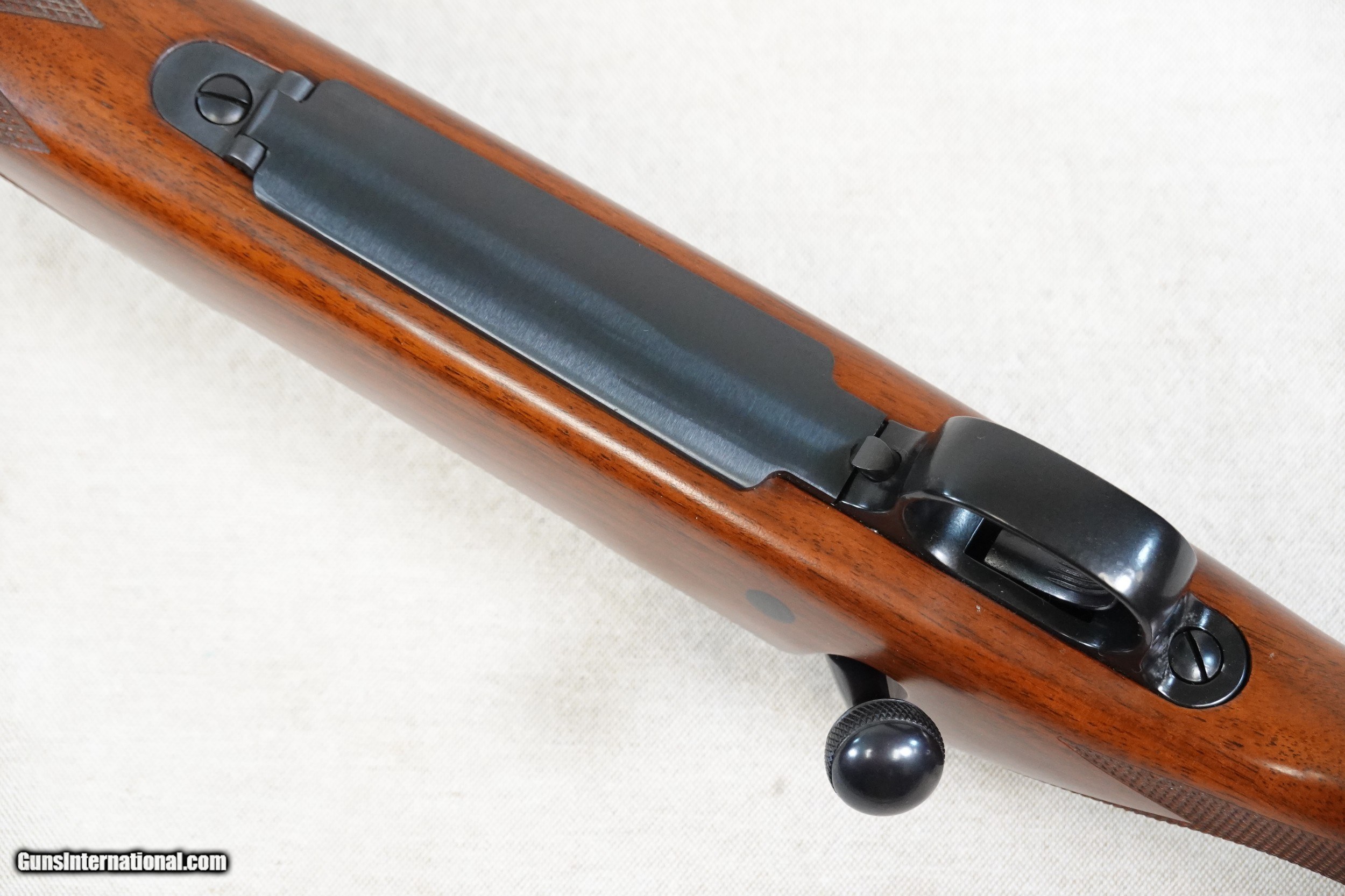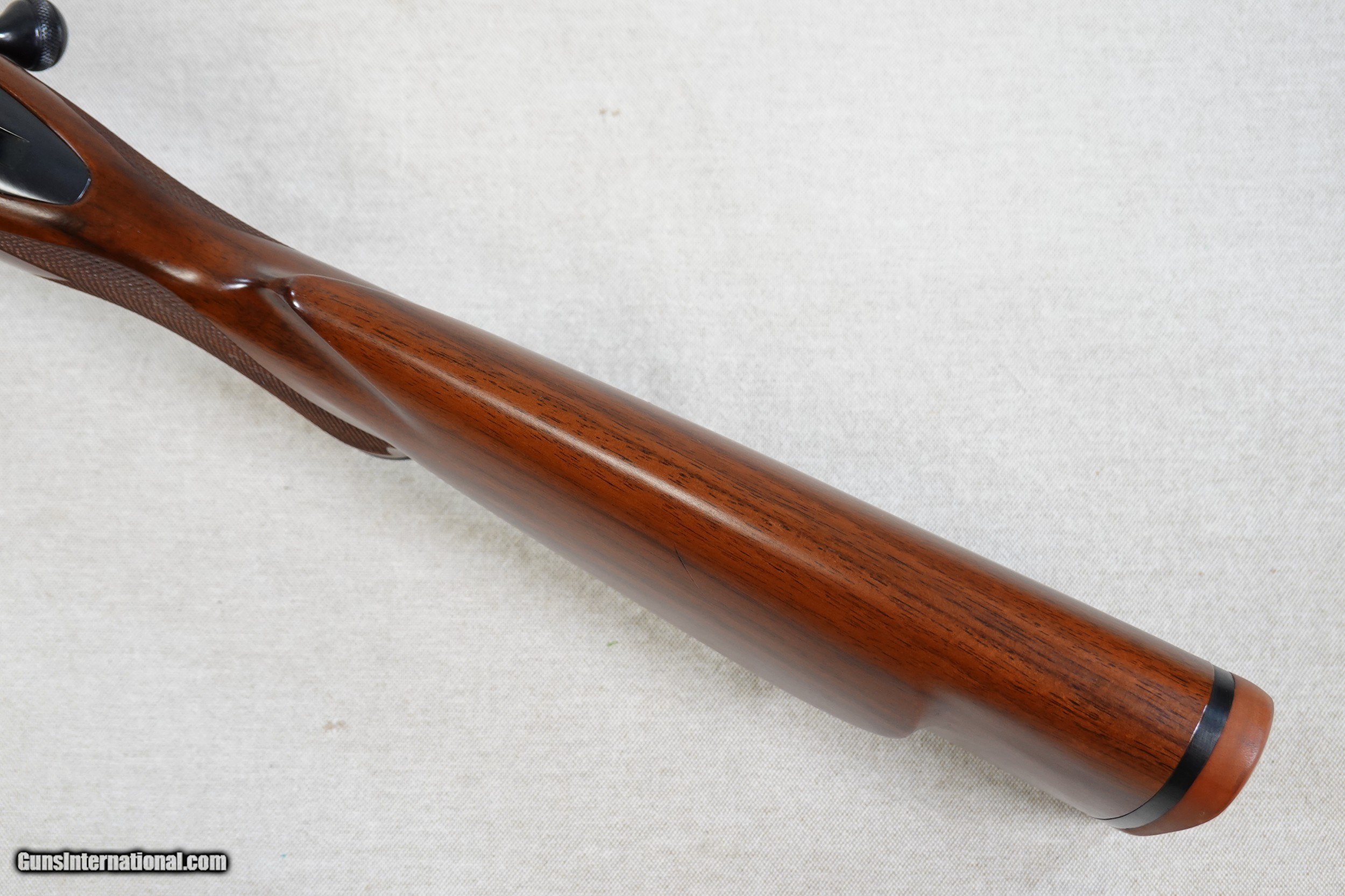 Description: This is a beautiful and rare factory test-fired only New Haven-made Winchester Model 70 Classic Sporter with a factory BOSS system chambered in rarest caliber for this model, the .270 Weatherby Magnum. This caliber was only offered for one year only in 1996, and very few were manufactured. Bought new by the original owner, this rifle was scoped and bore sighted and then put into a safe where it has remained ever since. It was never actually fired or carried afield, and it comes complete with it's original box complete with the serial-numbered factory end-label. This Winchester Model 70 Classic Sporter features a 26" inch barrel with the tunable factory-installed BOSS muzzle brake and the famous pre-64 style controlled round feed action with a Mauser-style extractor, well-known the world over for it's reliability and strength. The condition of the rifle is excellent. If not for a few tiny little safe dings/handling marks it would be pristine. The factory gloss blue finish rates 99%, and the bore is mirror-bright with like-new razor-sharp rifling. The satin-finished and checkered American Walnut stock is in excellent condition as well, free from any cracks, chips, repairs, or major dings/damage. The stock shows only a few tiny safe dings that are only visible under close inspection, and the factory stock hardware is in like-new condition. The buttstock was factory fit with a Winchester-branded recoil pad and the length of pull is 13.75" inches to the end of the pad, the factory original length. The action on this rifle is very slick and precise, and the bolt turns into battery with no grit or slop. All of the controls on this Winchester are in perfect working order, including the trigger which is excellent for a factory unit. If you have been looking for a American-made vintage Winchester Model 70 for your collection in a very rare caliber this is it! It would be all but impossible to upgrade from this beauty. Sorry no owner's manual, the box is empty other than a factory packing slip. SOLD Rifle Caliber: .270 Weatherby Magnum Manufacturer: Winchester (New Haven) Model: Model 70 Classic Sporter w/ Pre-64 Style Action & BOSS Serial Number: G129144 Barrel Length: 26" Inches Condition: Excellent Metal Condition: Excellent Wood Condition: Excellent Bore Condition: Mint Barrel Type: Standard Sporting Contour Action: Bolt Action Repeater Stock: Checkered Satin American Walnut Pistol Grip Stock Butt Pad: Factory Winchester Recoil Pad LOP: 13.75" Inches (Factory Length) Finish: Gloss Blue Sights: None Manufacture Date: 1996 Extras: w/ Original Box & Packing Slip |