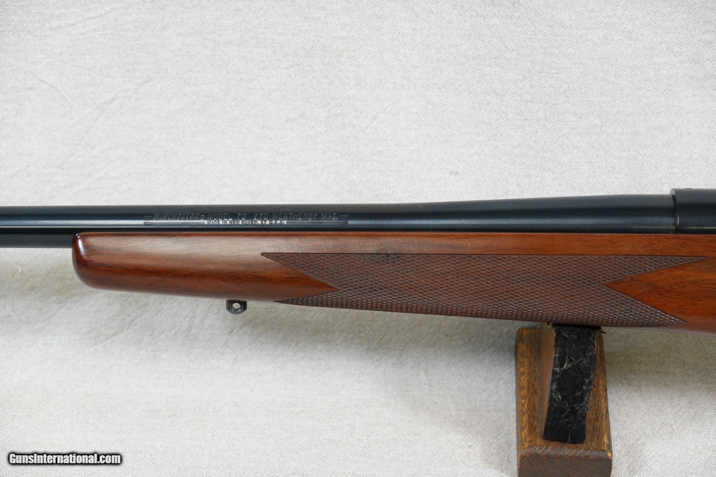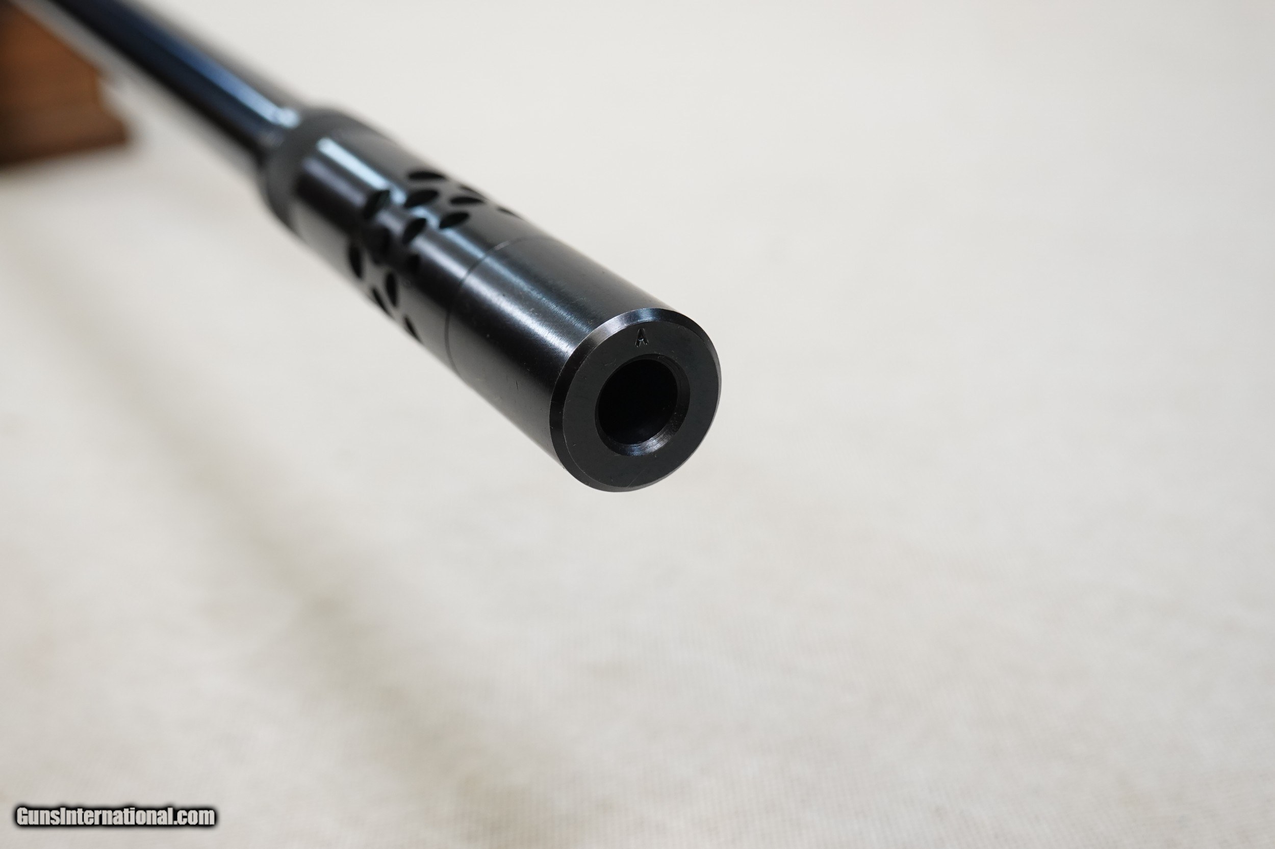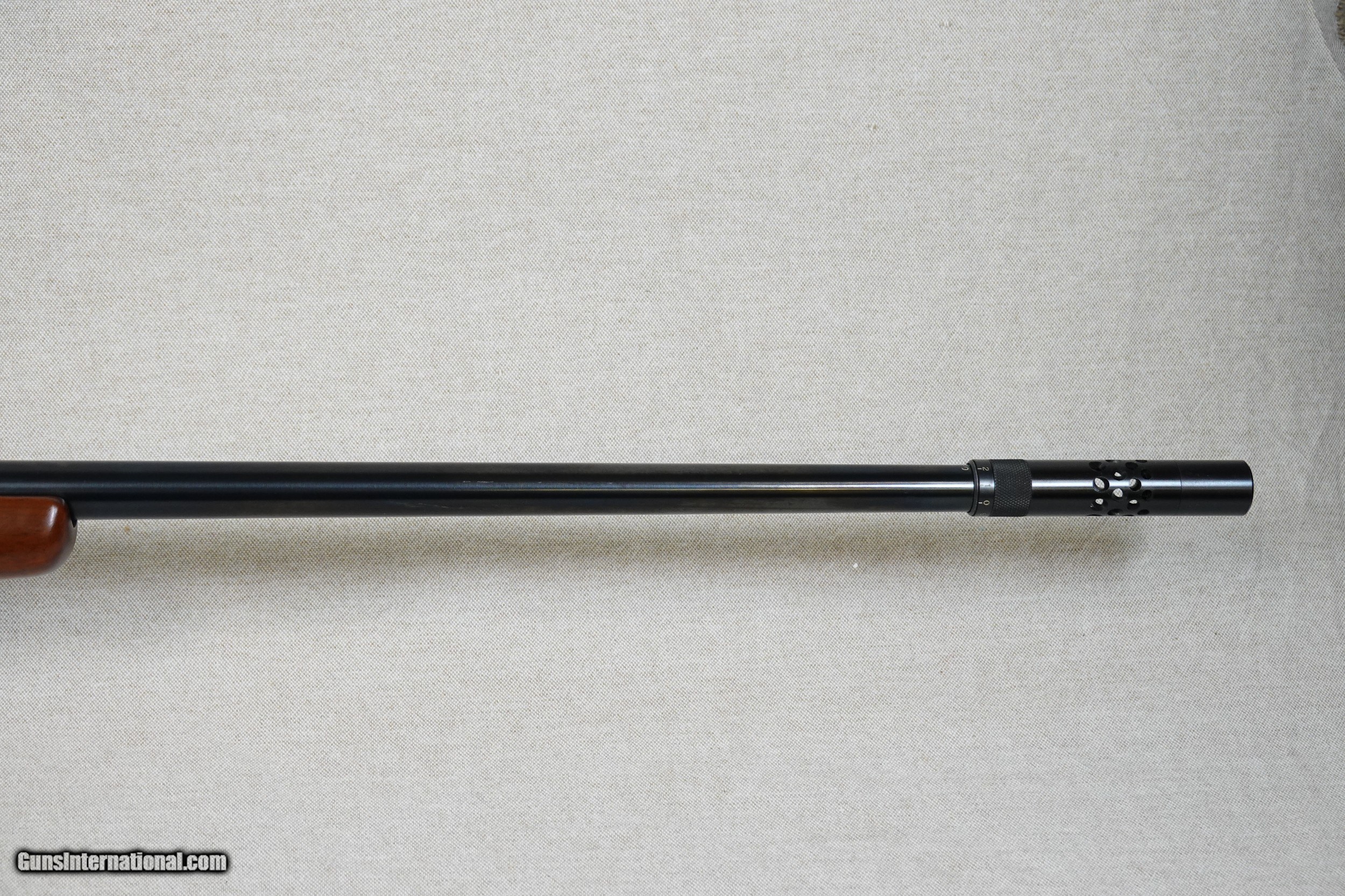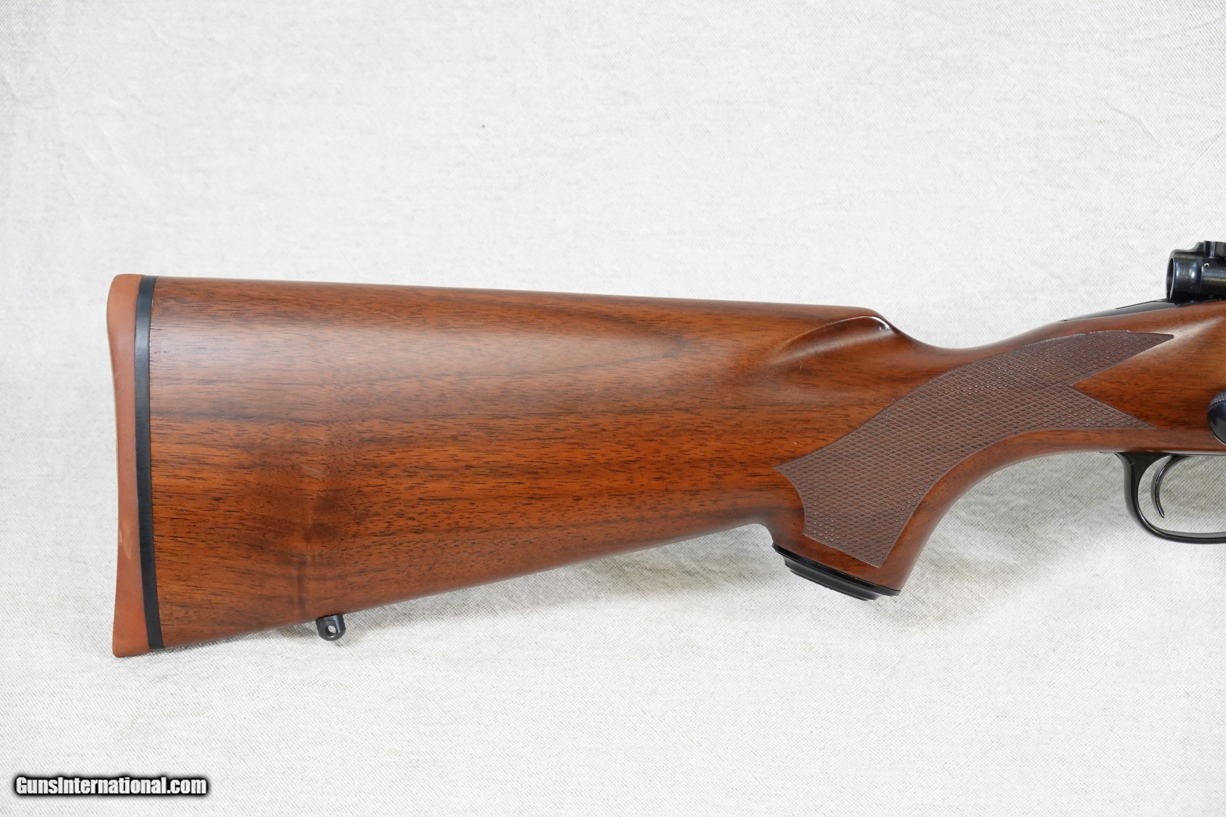Description: This is a beautiful and rare factory test-fired only New Haven-made Winchester Model 70 Classic Sporter with a factory BOSS system chambered in rarest caliber for this model, the .270 Weatherby Magnum. This caliber was only offered for one year only in 1996, and very few were manufactured. Bought new by the original owner, this rifle was scoped and bore sighted and then put into a safe where it has remained ever since. It was never actually fired or carried afield, and it comes complete with it's original box complete with the serial-numbered factory end-label. This Winchester Model 70 Classic Sporter features a 26" inch barrel with the tunable factory-installed BOSS muzzle brake and the famous pre-64 style controlled round feed action with a Mauser-style extractor, well-known the world over for it's reliability and strength. The condition of the rifle is excellent. If not for a few tiny little safe dings/handling marks it would be pristine. The factory gloss blue finish rates 99%, and the bore is mirror-bright with like-new razor-sharp rifling. The satin-finished and checkered American Walnut stock is in excellent condition as well, free from any cracks, chips, repairs, or major dings/damage. The stock shows only a few tiny safe dings that are only visible under close inspection, and the factory stock hardware is in like-new condition. The buttstock was factory fit with a Winchester-branded recoil pad and the length of pull is 13.75" inches to the end of the pad, the factory original length. The action on this rifle is very slick and precise, and the bolt turns into battery with no grit or slop. All of the controls on this Winchester are in perfect working order, including the trigger which is excellent for a factory unit. If you have been looking for a American-made vintage Winchester Model 70 for your collection in a very rare caliber this is it! It would be all but impossible to upgrade from this beauty. Sorry no owner's manual, the box is empty other than a factory packing slip. SOLD Rifle Caliber: .270 Weatherby Magnum Manufacturer: Winchester (New Haven) Model: Model 70 Classic Sporter w/ Pre-64 Style Action & BOSS Serial Number: G129144 Barrel Length: 26" Inches Condition: Excellent Metal Condition: Excellent Wood Condition: Excellent Bore Condition: Mint Barrel Type: Standard Sporting Contour Action: Bolt Action Repeater Stock: Checkered Satin American Walnut Pistol Grip Stock Butt Pad: Factory Winchester Recoil Pad LOP: 13.75" Inches (Factory Length) Finish: Gloss Blue Sights: None Manufacture Date: 1996 Extras: w/ Original Box & Packing Slip |