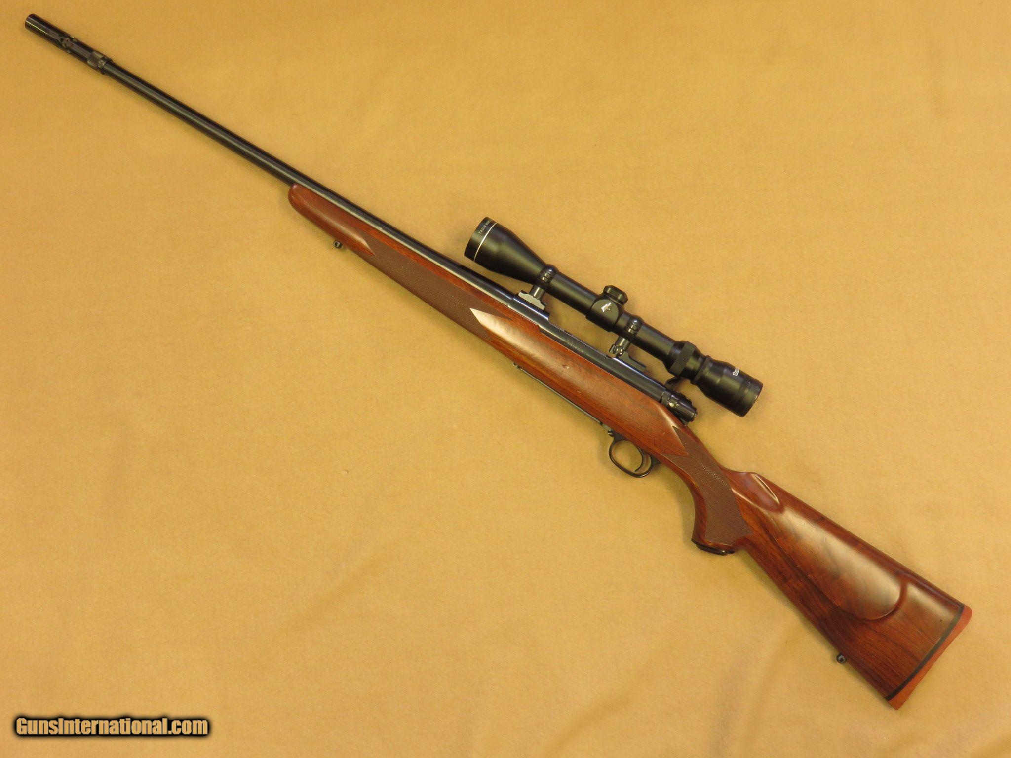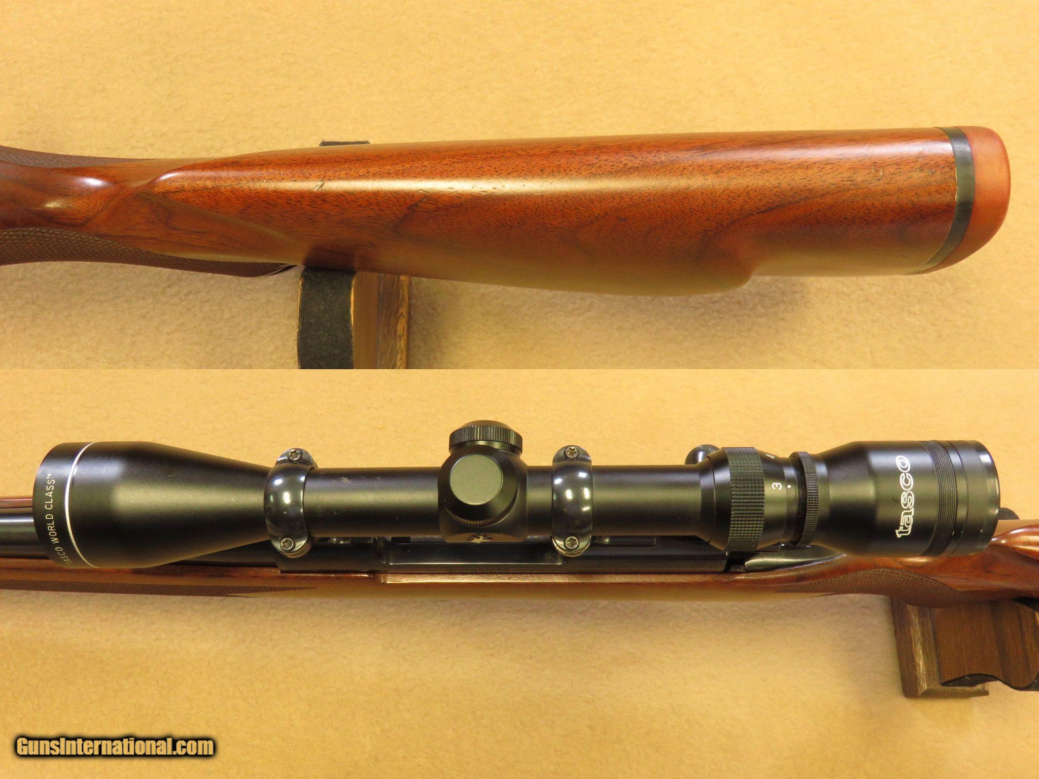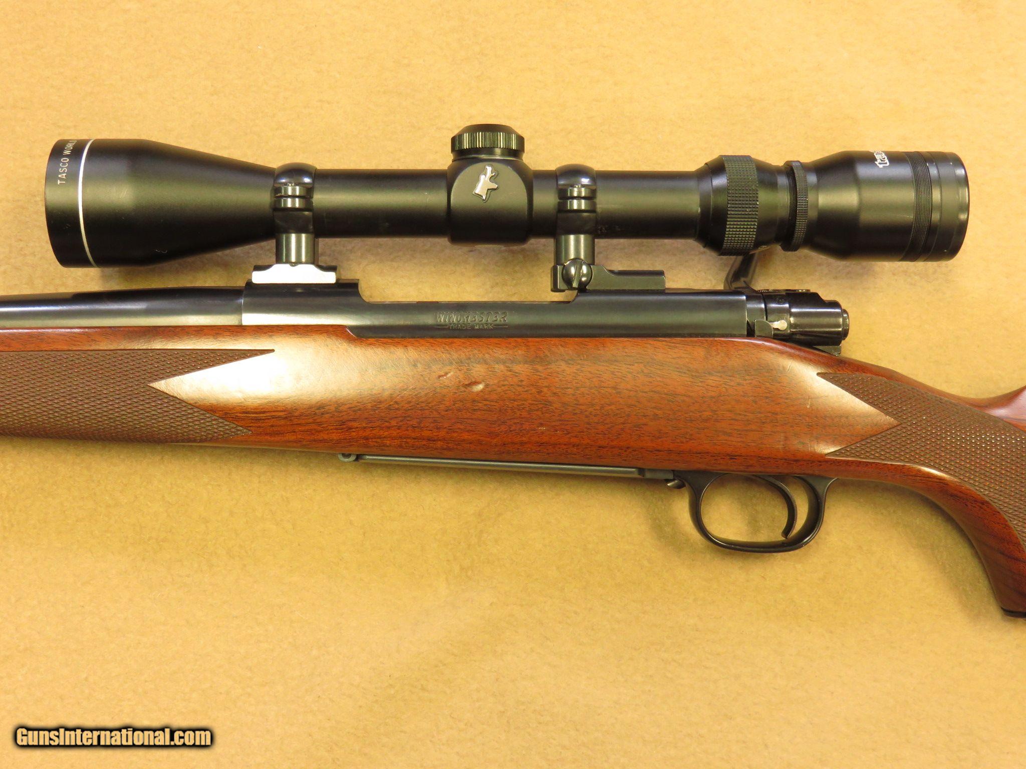 Description: Winchester Model 70 fitted with a 22 inch barrel with Browning's Ballistic Optimizing Shooting System (BOSS), features claw extractor and contolled round feeding, 5-round internal magazine with hinged floor-plate, sling swivel studs, checkered bolt handle, checkered walnt stock with Winchester recoil pad and steel grip cap, blue finished, and fitted with Leupold mounts/rings with Tasco 3-9X x 40 scope with duplex recticle. Gun has been used and has assorted handling marks and dings. The bore is bright, the action functions perfectly, and the Boss system operates as new. PRICE: $595 We are Antique & Modern Firearms in Lexington, KY, dealer of fine firearms since 1974. PH. 859-276-1419 We Buy, Sell and Trade Firearms & Knives. Have a Individual Firearm, Firearms Collection, or Firearms Estate to sell, let us know, we can buy or consignment sell it for you. (sales at am-firearms) SOLD |
