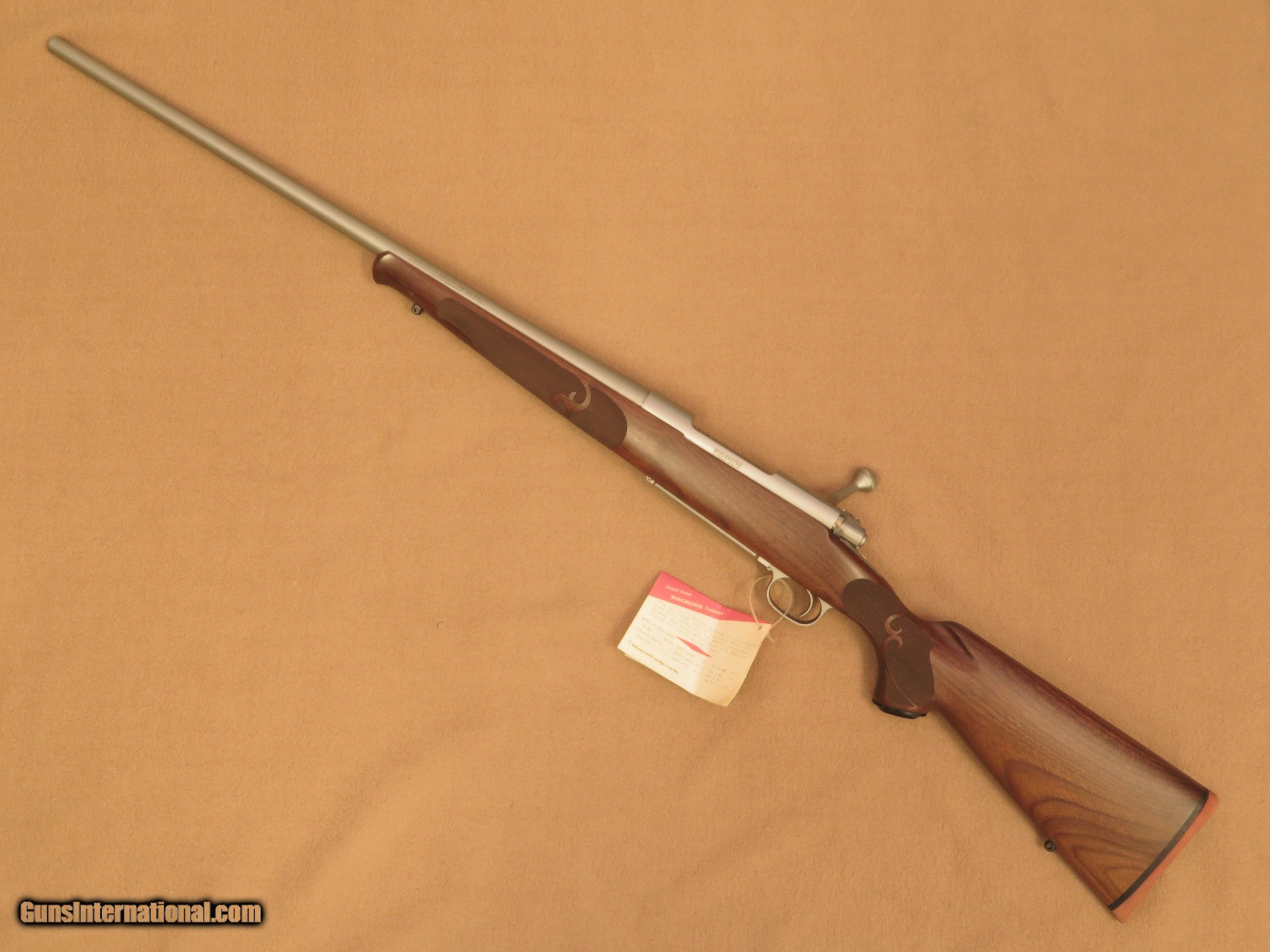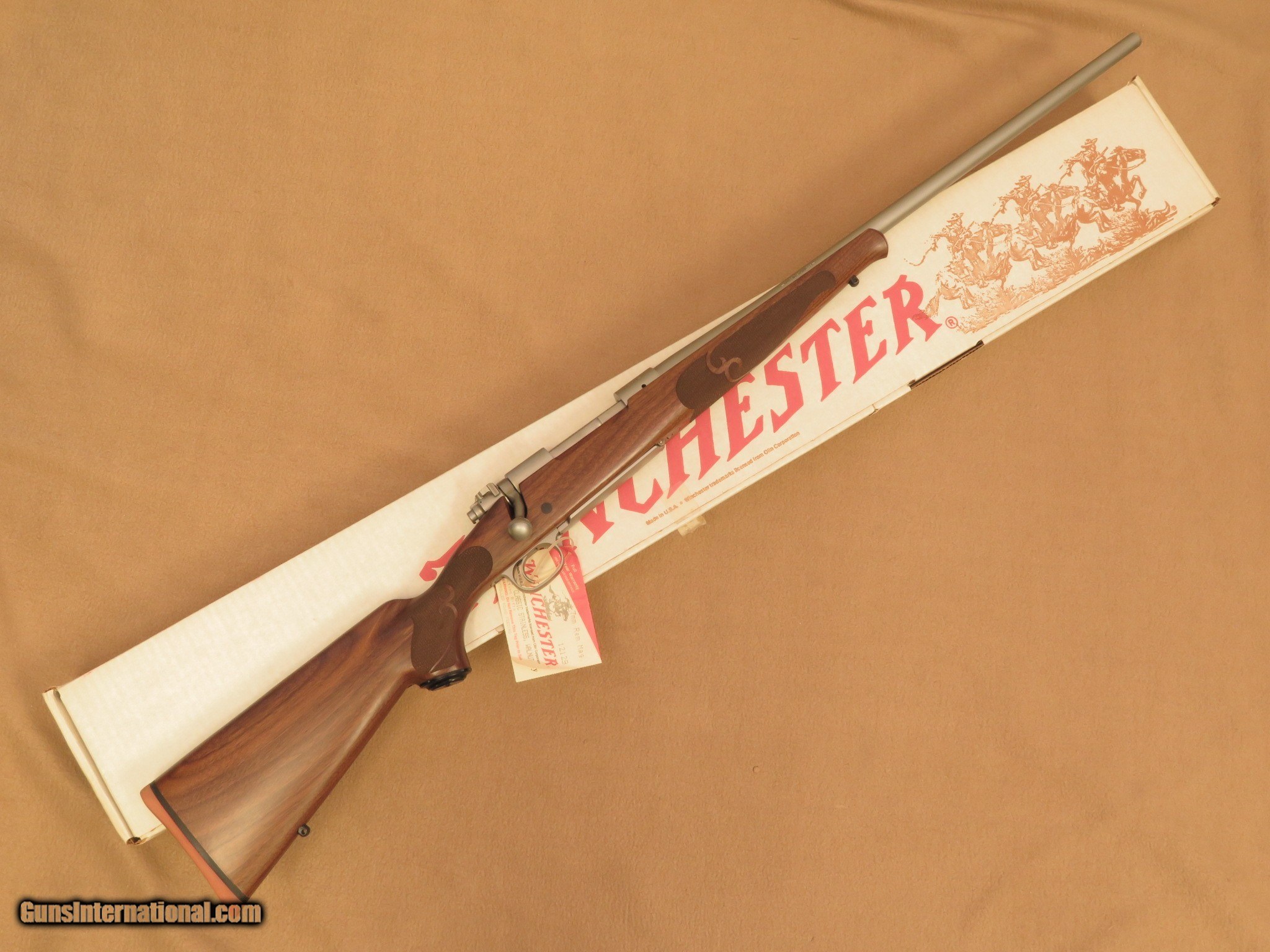 Description: This is Winchester item number 12129 and is brand new in its original box with all paper-work, including hang tag that is still attached to the trigger guard of the rifle. This classic stainless rifle has a 24 inch barrel and controlled round feeding. It is one of the most attractive and best made Model 70's that Winchester has ever produced. This rifle has been stored in a safe and is "as new". We also have an identical rifle that is consecutively numbered if you wish to have a pair. Single rifle is $895, or the pair for $1,750. PRICE: $895 We are Antique & Modern Firearms in Lexington, KY, dealer of fine firearms since 1974. PH. 859-276-1419 We Buy, Sell and Trade Firearms & Knives. Have a Individual Firearm, Firearms Collection, or Firearms Estate to sell, let us know, we can buy or consignment sell it for you. SOLD |