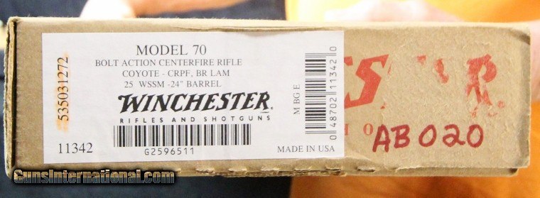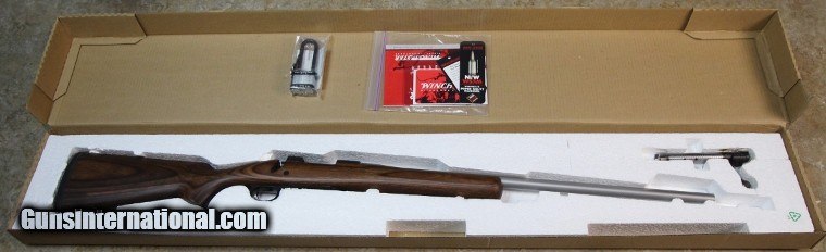 Description: .25wssm, 24 inch stainless steel barrel, brown laminate stock, no barrel sights. Condition: NIB, manufactured in New Haven before 1996 shut down. SOLD  |