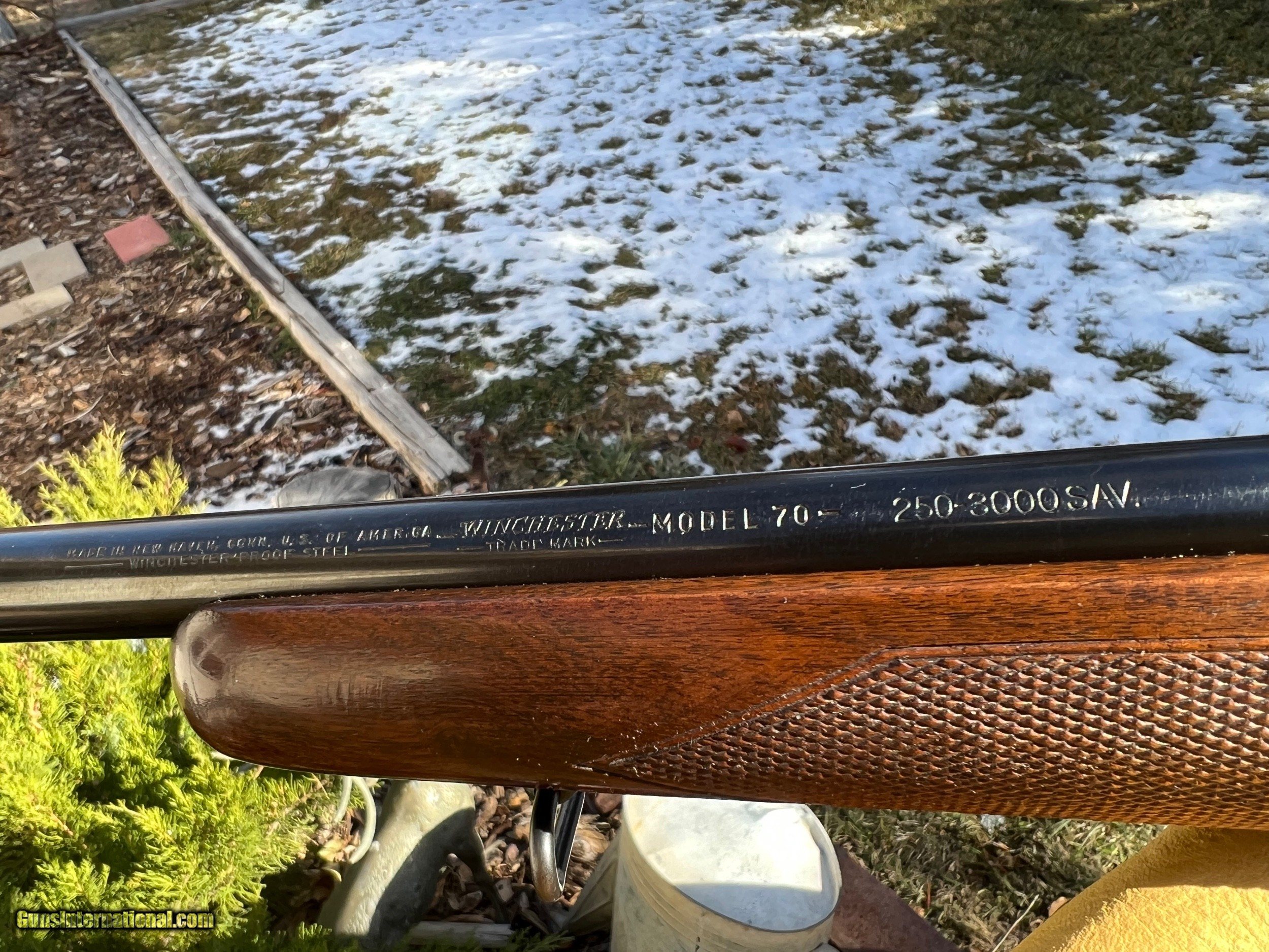 Description: Sold. WINCHESTER. MODEL 70. Pre 64. 250. Savage. The rifle was made. In. 1949. has a 24 inch barrel. And. Steel. Butt. Front sight and. Rear. Sight. Metal. Is. 98 %. Wood. 95 %. Some marks. On the wood. Great. Shape. For. 73 years. Old. Great hunting. Rifle. USPS money order. or. Cashier. Check. Add 3.5 %. Call. Mark. 307-797-9734. SHIPPING 50.00 NO SALES TO. CA. OR. WHERE. PROHIBITED. Thanks. Edward SOLD |