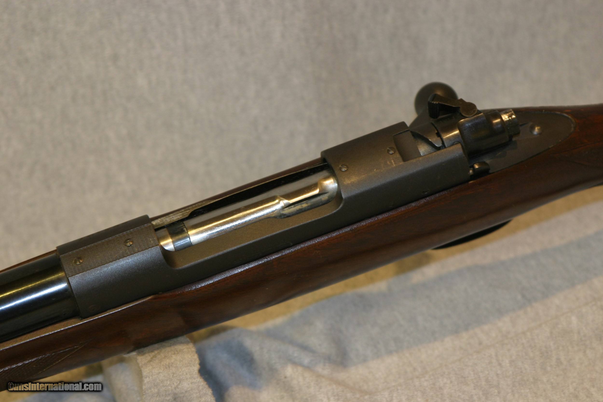Description: WINCHESTER M70 ,BUILT IN 1960, AS THE ALASKAN MODEL, FEATURES A 25" BARREL WITH IRON SIGHTS, INCLUDING HOOD. VERY GOOD CONDITION RIFLE,CLEAN, BRIGHT BORE,GREAT BLUE,SMALL HANDLING MARKS IN WOOD. OVERALL SHOWS LITTLE USE, A RIFLE YOU CAN DEPEND ON! SOLD Curio/Relic: Yes |