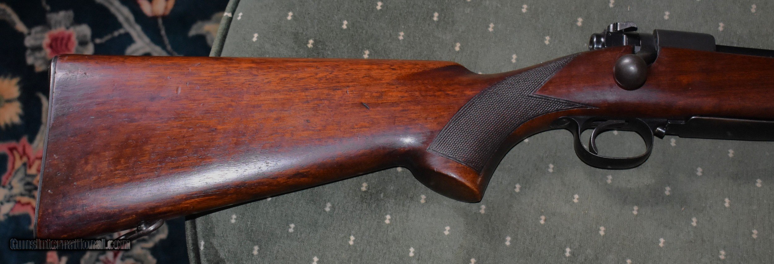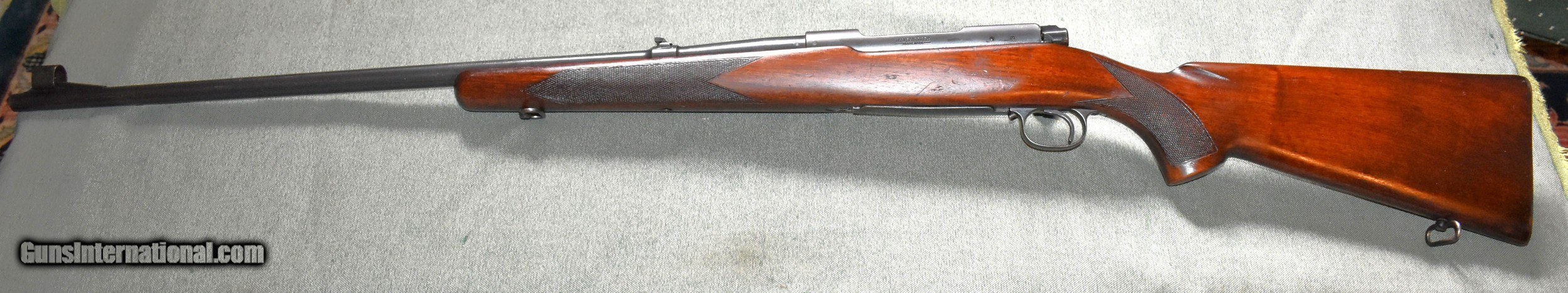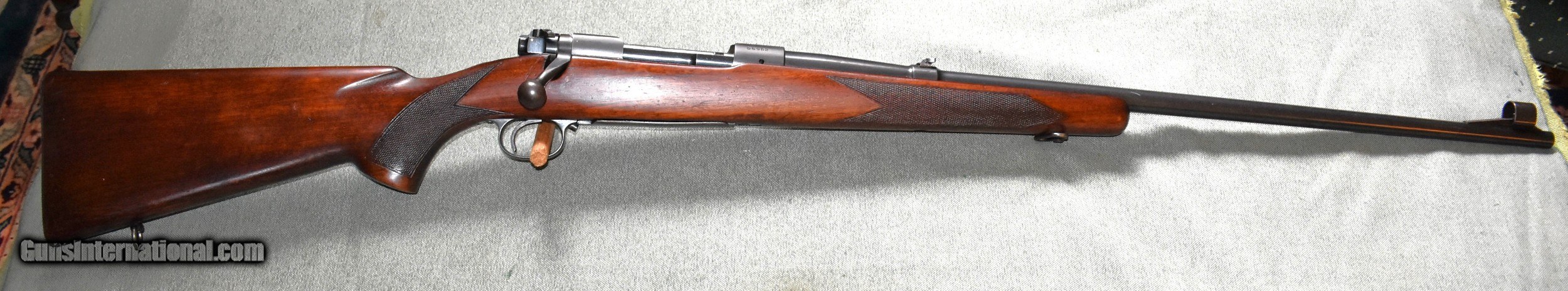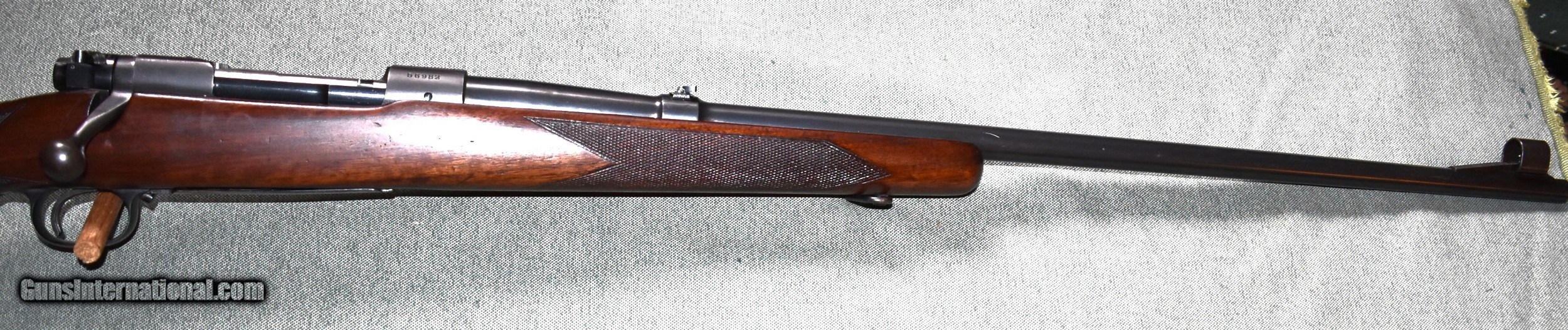 Description: SALE PENDING Winchester pre 64 model 70 in 300 Holland and Holland. Started in 1943 and finished in 1946 after WWII,this rifle is in all original condition. It retains 95% of the original blue and wood finish. The 26" barrel has a mint bore. The stock has a small chip behind the tang but is otherwise sound and functional. This rifle would be the ultimate all around big game rifle. C&R eligible. SOLD Curio/Relic: Yes Rifle Caliber: .300 H&H Magnum Manufacturer: Winchester Model: 70 Serial Number: 58982 Barrel Length: 26 Condition: excellent Metal Condition: excellent Wood Condition: excellent Bore Condition: mint Barrel Type: Winchester Proof Steel Action: Bolt Butt Pad: factory steel butt Manufacture Date: 1943-1946 |