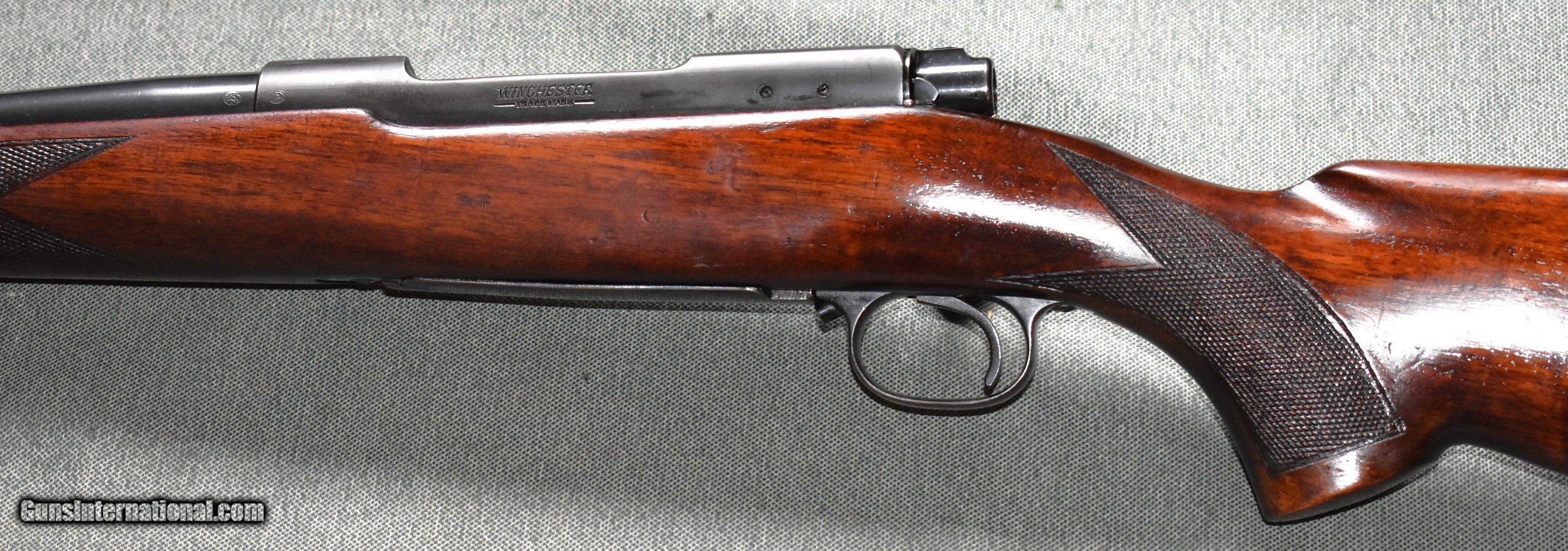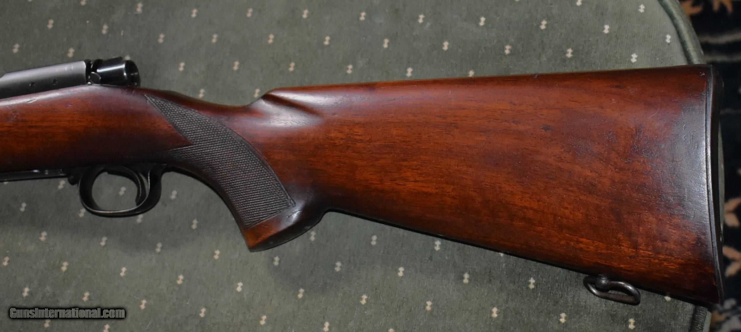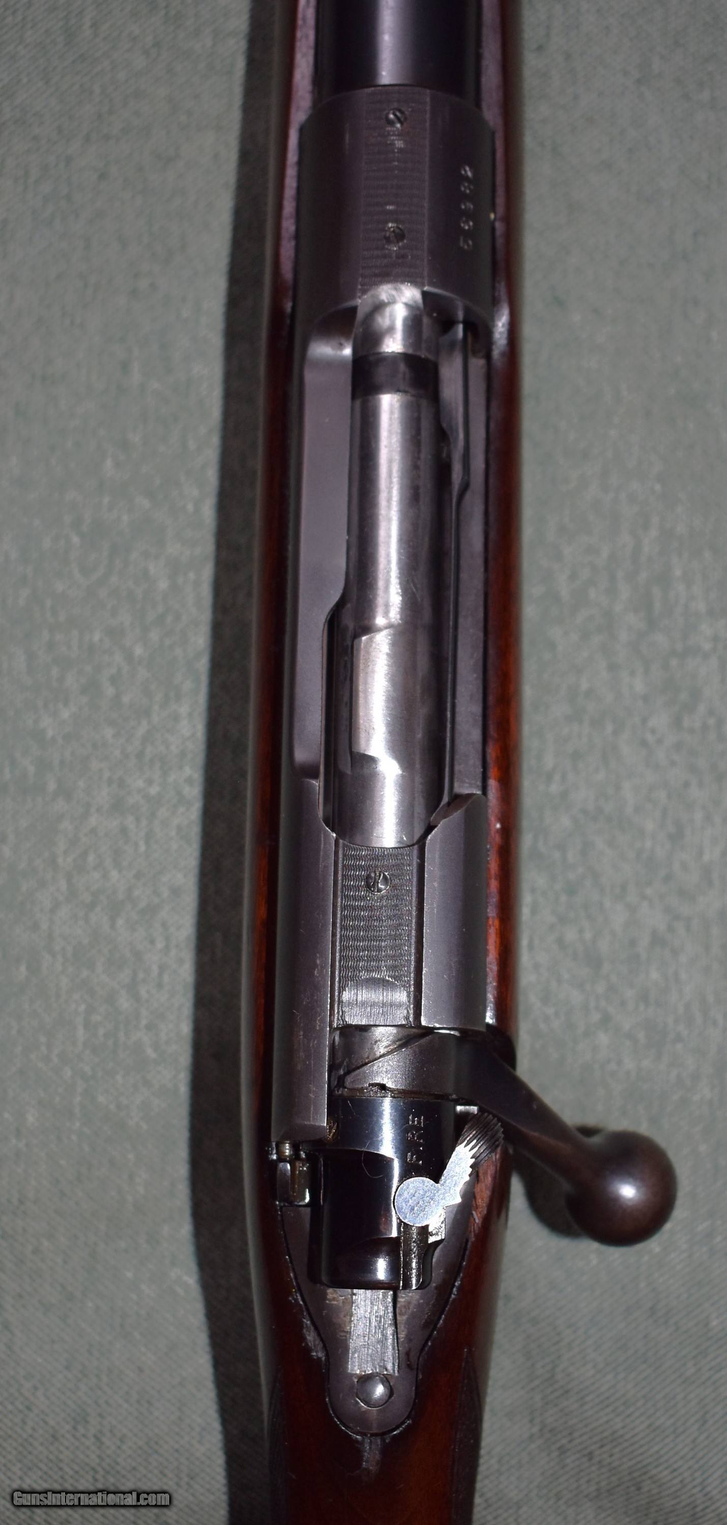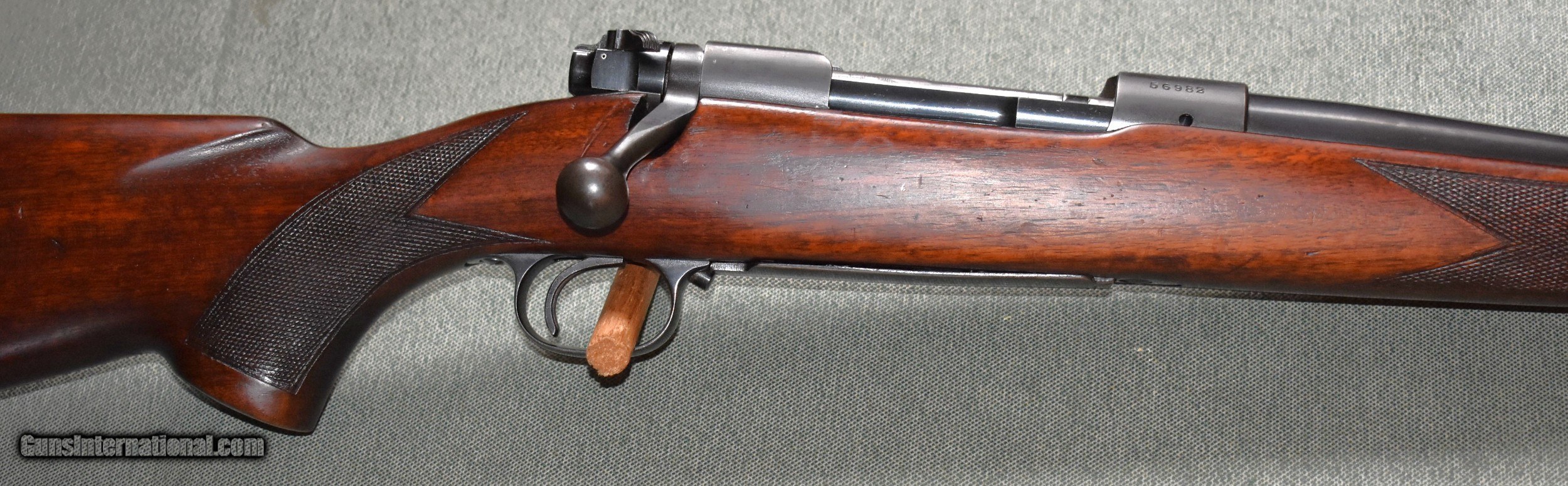 Description: SALE PENDING Winchester pre 64 model 70 in 300 Holland and Holland. Started in 1943 and finished in 1946 after WWII,this rifle is in all original condition. It retains 95% of the original blue and wood finish. The 26" barrel has a mint bore. The stock has a small chip behind the tang but is otherwise sound and functional. This rifle would be the ultimate all around big game rifle. C&R eligible. SOLD Curio/Relic: Yes Rifle Caliber: .300 H&H Magnum Manufacturer: Winchester Model: 70 Serial Number: 58982 Barrel Length: 26 Condition: excellent Metal Condition: excellent Wood Condition: excellent Bore Condition: mint Barrel Type: Winchester Proof Steel Action: Bolt Butt Pad: factory steel butt Manufacture Date: 1943-1946 |