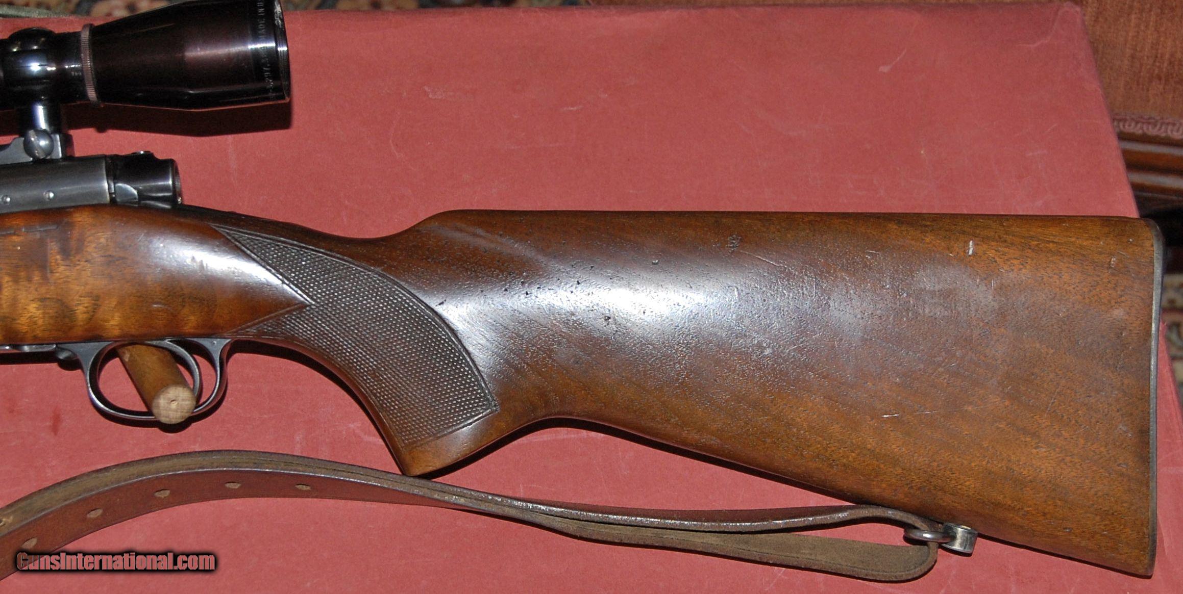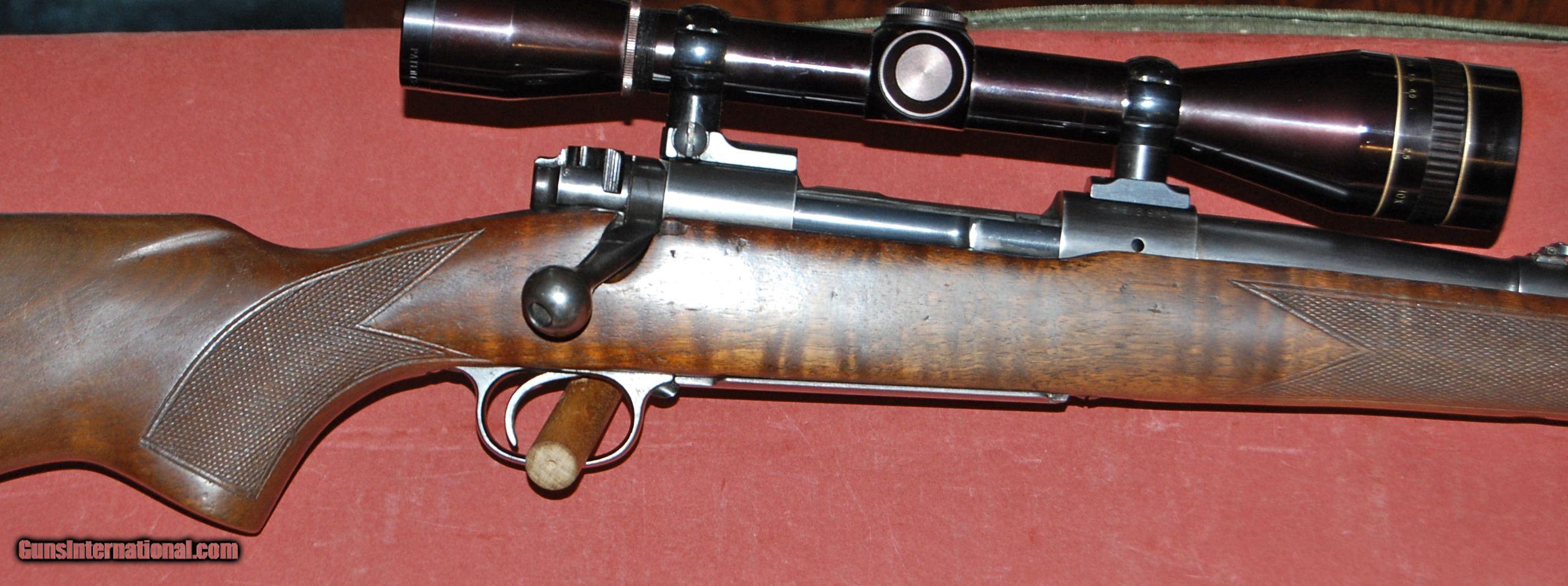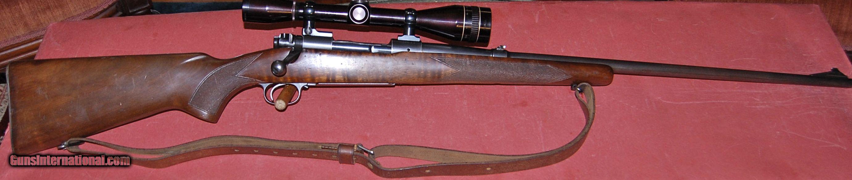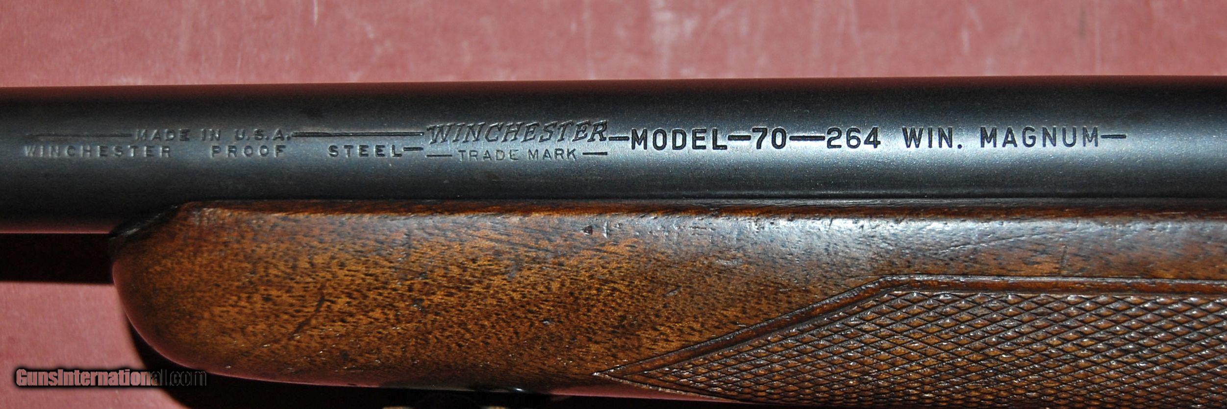 Description: Winchester pre 64 model 70 standard rifle in 264 Winchester magnum.Built in 1960,this rifle has a 26" barrel with a mint bore.There is no throat eroision and the rifling is sharp.The rifle retains 95% of the original blue and wood finish.The stock is sound with no cracks or damage.The rifle comes with a Leupold 10X AO scope installed.A great long range outfit ready for the field. SOLD Manufacturer: Winchester Model: 70 standard rifle Serial Number: 469890 Caliber Info: 264 Win Mag Metal Condition: excellent Wood Condition: excellent Bore Condition: mint Barrel Type: Winchester proof steel Action: bolt Manufacture Date: 1960 |