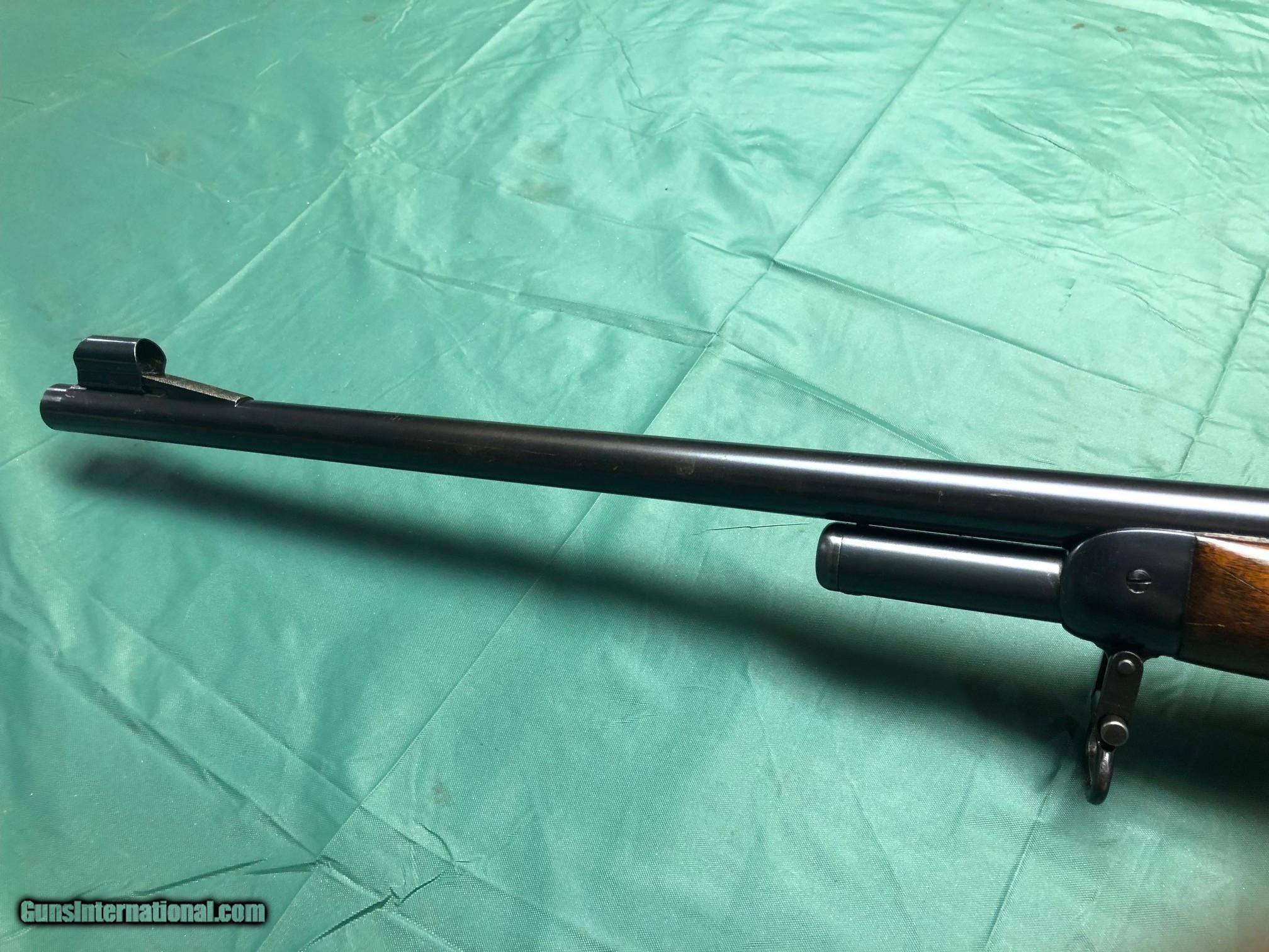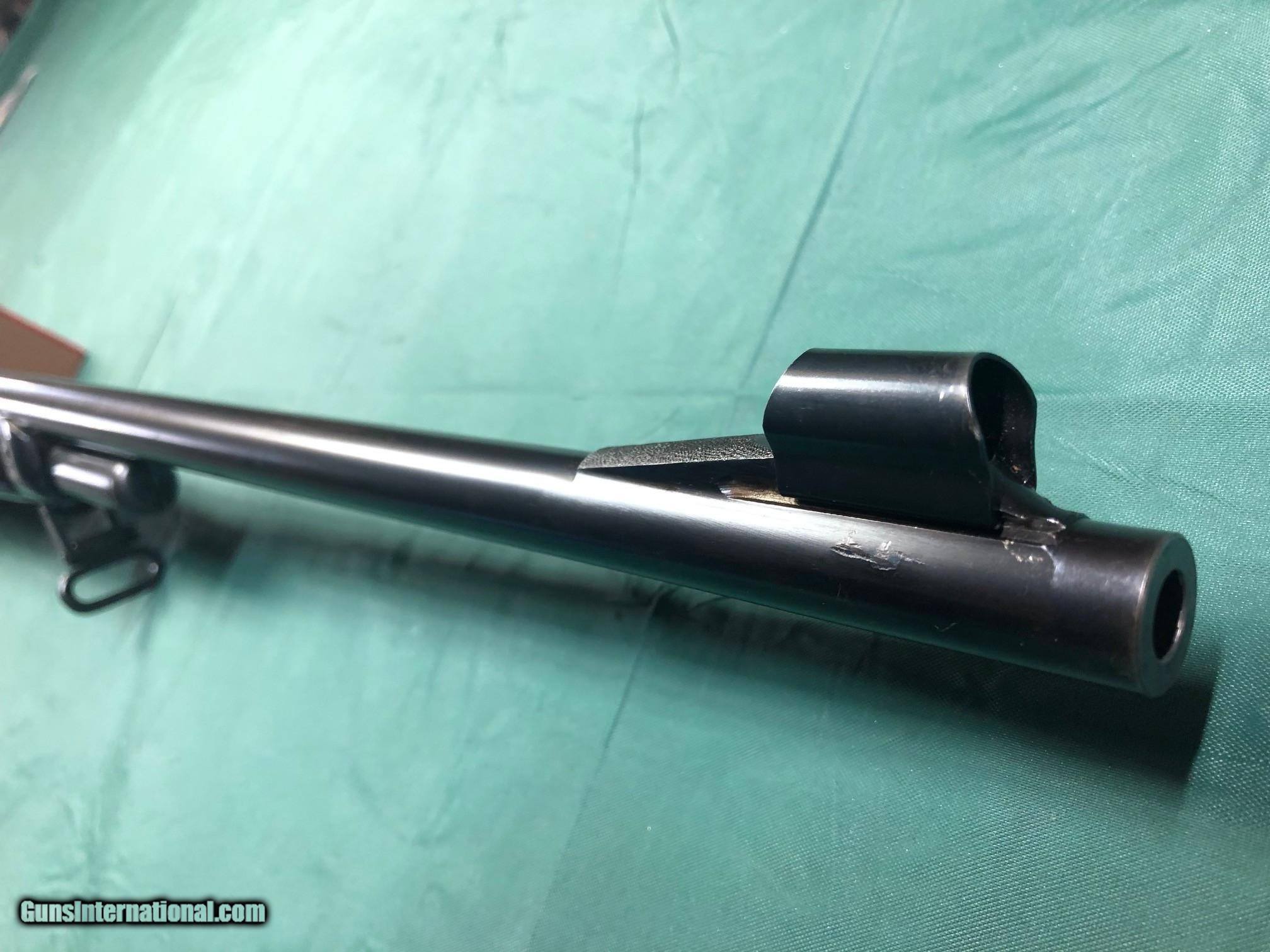 Description: SOLD. A fine 71 - MFG 1940 with bright and excellent bore. The barrel and receiver retains 95% original blue. The checkered capped pistol grip, buttstock and forearm on this deluxe rifle remains in very fine condition, retaining all it's original varnish with some light impressions. The orignal sights include a Lyman bolt peep, a blanked rear and hooded front. The rifle comes with super grade swivels. This is a very fine MOD 71 "collector quality" Price includes shipping. SOLD Curio/Relic: Yes Serial Number: 17188 |