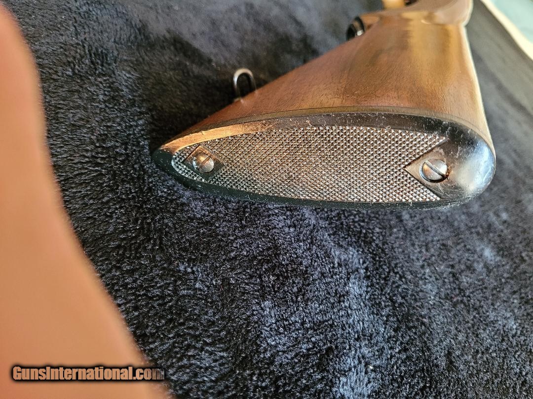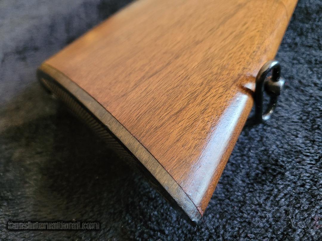 Description: This Winchester model 88 is chambered for the potent .358 caliber. Not only is it a rare .358, but built Pre 1964 with the cut checkering. With S/N 892XX it was manufactured in 1958, and remains in excellent original condition. The beautiful walnut stock is nearly free of imperfections, showing a few light handling marks, but no cracks or repairs. The original butt plate fits perfect, and is in great shape as well. All the metal surfaces carry the deep blue that it left the factory with. There is a very tiny ding on the top of the receiver (by the forward scope mount screw of the rear pair). The bore of the 22" barrel is in mint condition, and all the script, proof marks, amd S/N are crisp and clear. This rare .358 rifle is in high collector quality condition. $4500.00 by Certified Funds. Ships UPS insured and tracked, to the lower 48 states, from my FFL to an FFL on your end. Please add $100 shipping charge. Dan at (608) 751-7194 SOLD Curio/Relic: Yes Manufacturer: Winchester Model: 88 Serial Number: 892XX Barrel Length: 22 Bore: rifled Chambers: .358 Condition: near mint Metal Condition: excellent Wood Condition: exc. Bore Condition: mint Barrel Type: round Action: lever Triggers: single Stock: factory walnut Butt Pad: factory composite Finish: blue Sights: factory original Manufacture Date: 1958 |