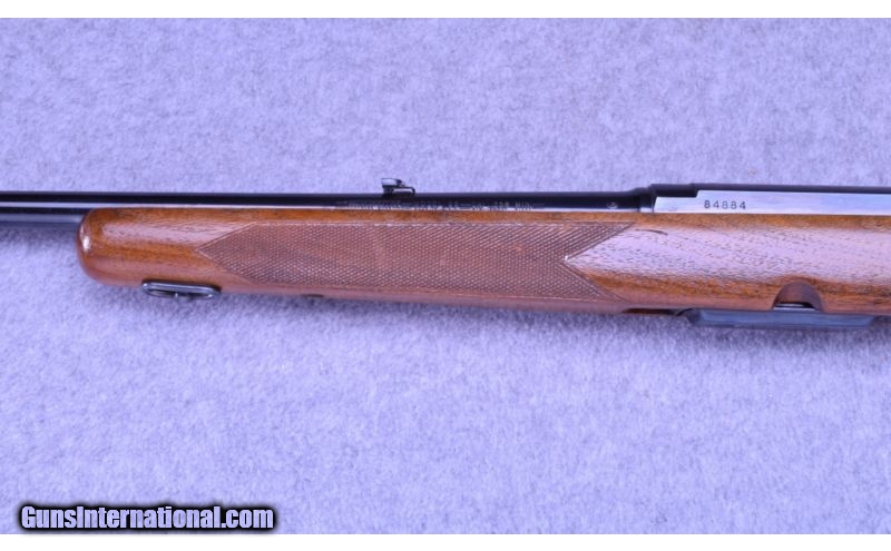 Description: Breechbolt has been jeweled and wood has had a coat of oil added at some point. Blue shows a few light use scuffs and bore remains excellent. Mechanical function also excellent.No box. SOLD Manufacturer: S/N - 84XXX Caliber Info: .358 Win. Metal Condition: Very Good Wood Condition: Very Good Bore Condition: Excellent Barrels: 22 in. Triggers: Original Stock: Checkered Walnut P.G. w/Steel Cap Stock Dimensions: 14 in. LOP Fore End: Checkered Walnut Butt Pad: Checkered Black Composite Weight: 7 lbs. Sights: Hooded Bead Front / Folding Notch Rear Item Location: Wheeling, WV |