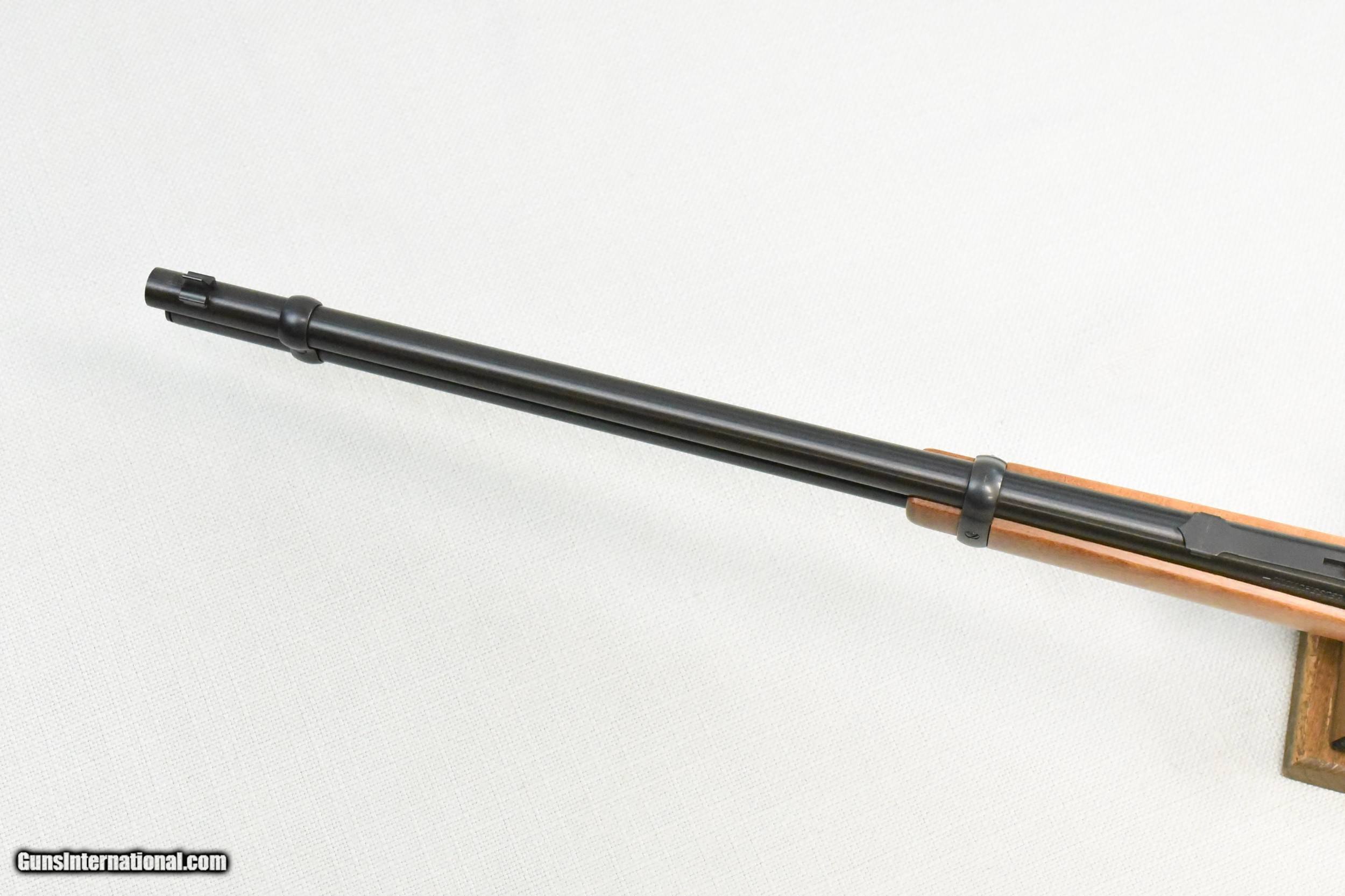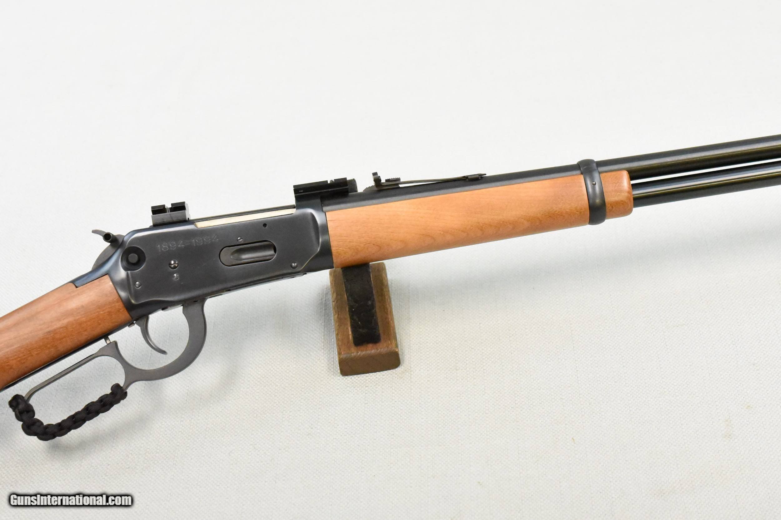Description: 1994 Manufactured, 100 year anniversary, post-64 Winchester Model 94 Ranger Carbine fitted a 20 inch barrel, full tube magazine, walnut stock and forearm, and chambered in classic .30-30 Winchester. This Model 94 is 95% like new original condition with the only blemish a small bit of rust on the left side corner of the receiver. The stock and forearm are unblemished. The bore is perfect and the action functions perfectly. The receiver has been fitted with scope mounts. If you have been looking for an great condition Winchester Model 94 this would be an excellent choice. SOLD Rifle Caliber: .30-30 Winchester Manufacturer: Winchester Model: 1894 Serial Number: 6152114 Barrel Length: 20 Inch Condition: Excellent Metal Condition: Excellent Wood Condition: Excellent Bore Condition: Bright with Sharp Rifling Action: Lever Manufacture Date: 1994 |
